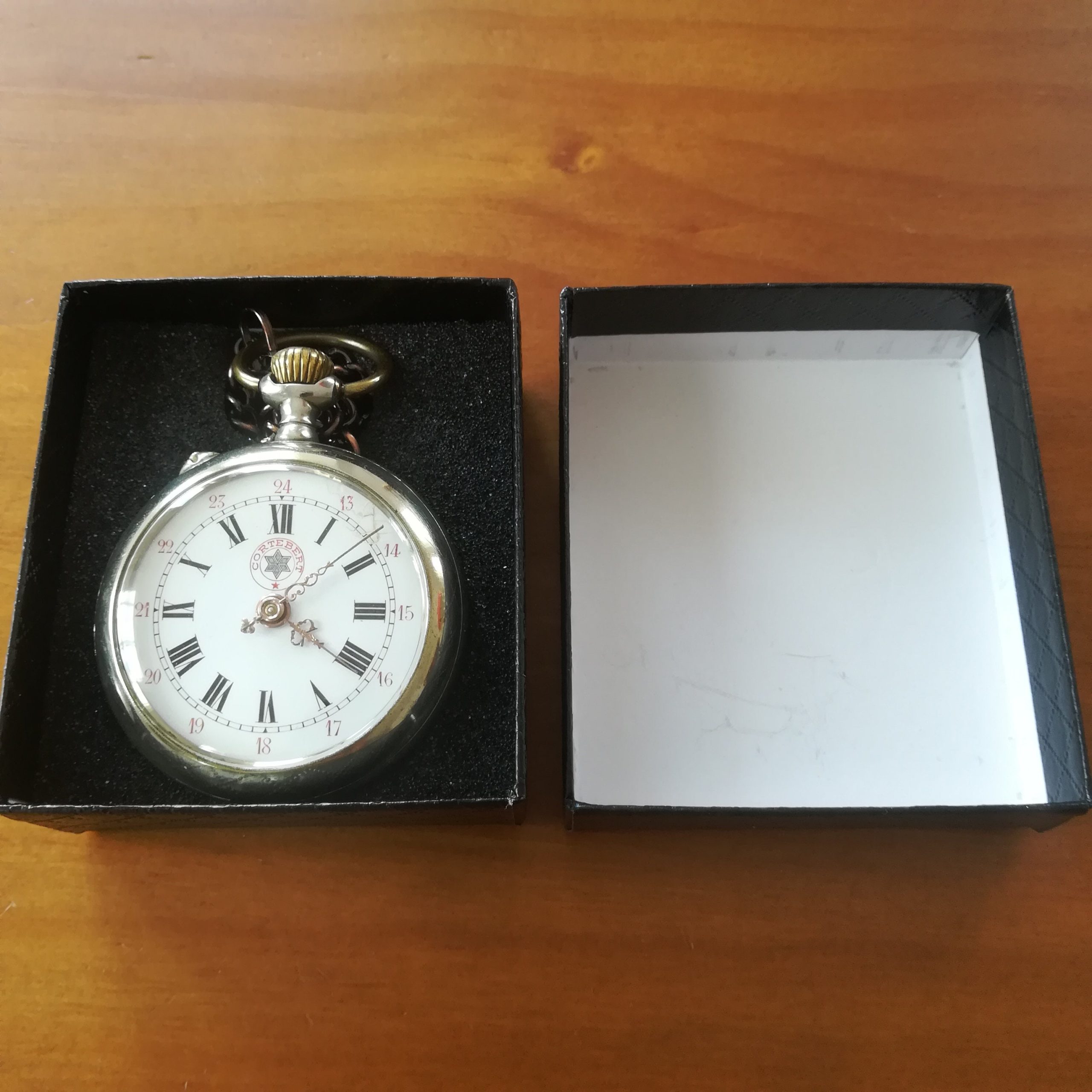 The case is metal, with some scratches as can be seen in the photos. The enamel dial has a repair between 1 and 2 – please refer to the photos. The watch also features a new metallic chain. Water resistance has not been tested, therefore it must be treated as NON-waterproof.