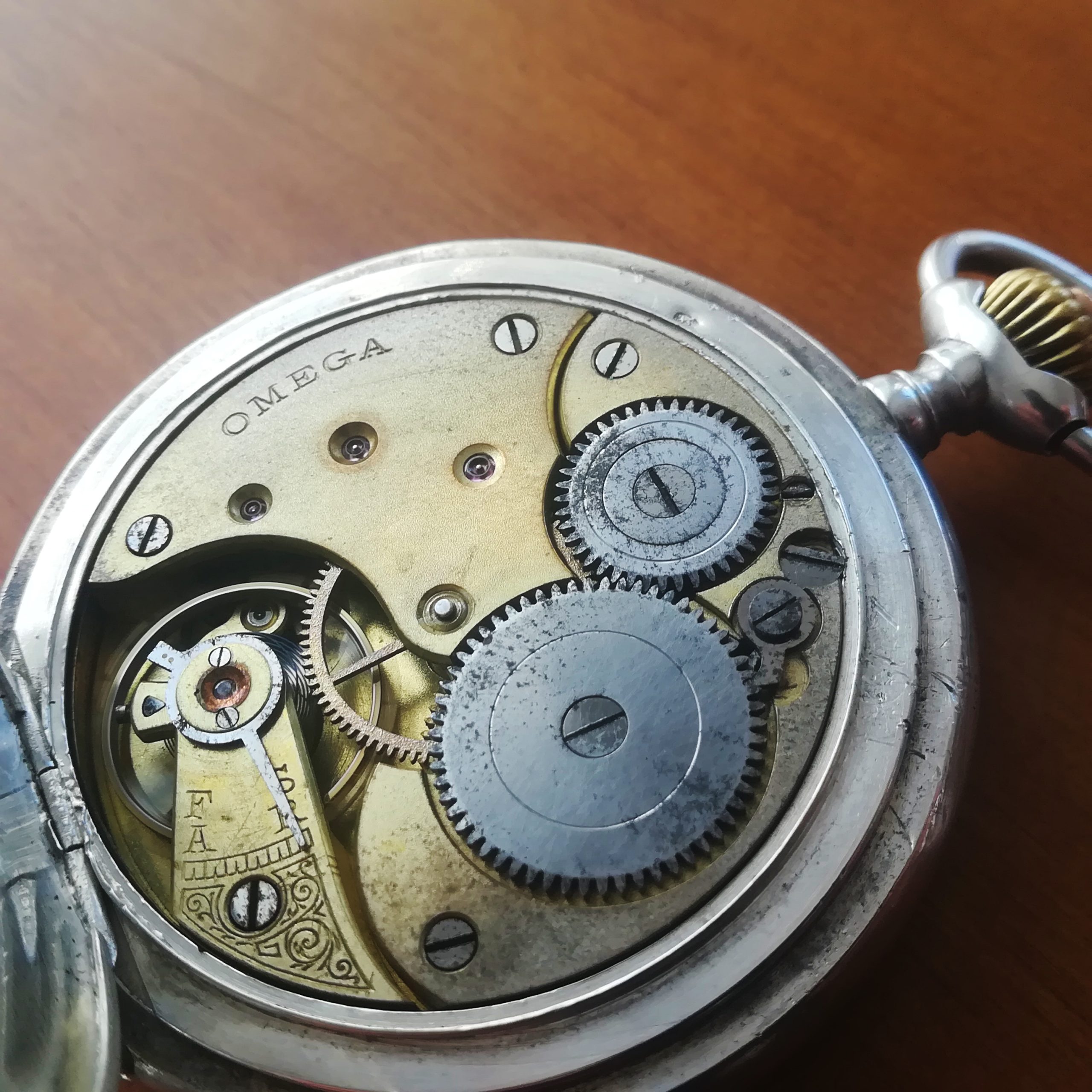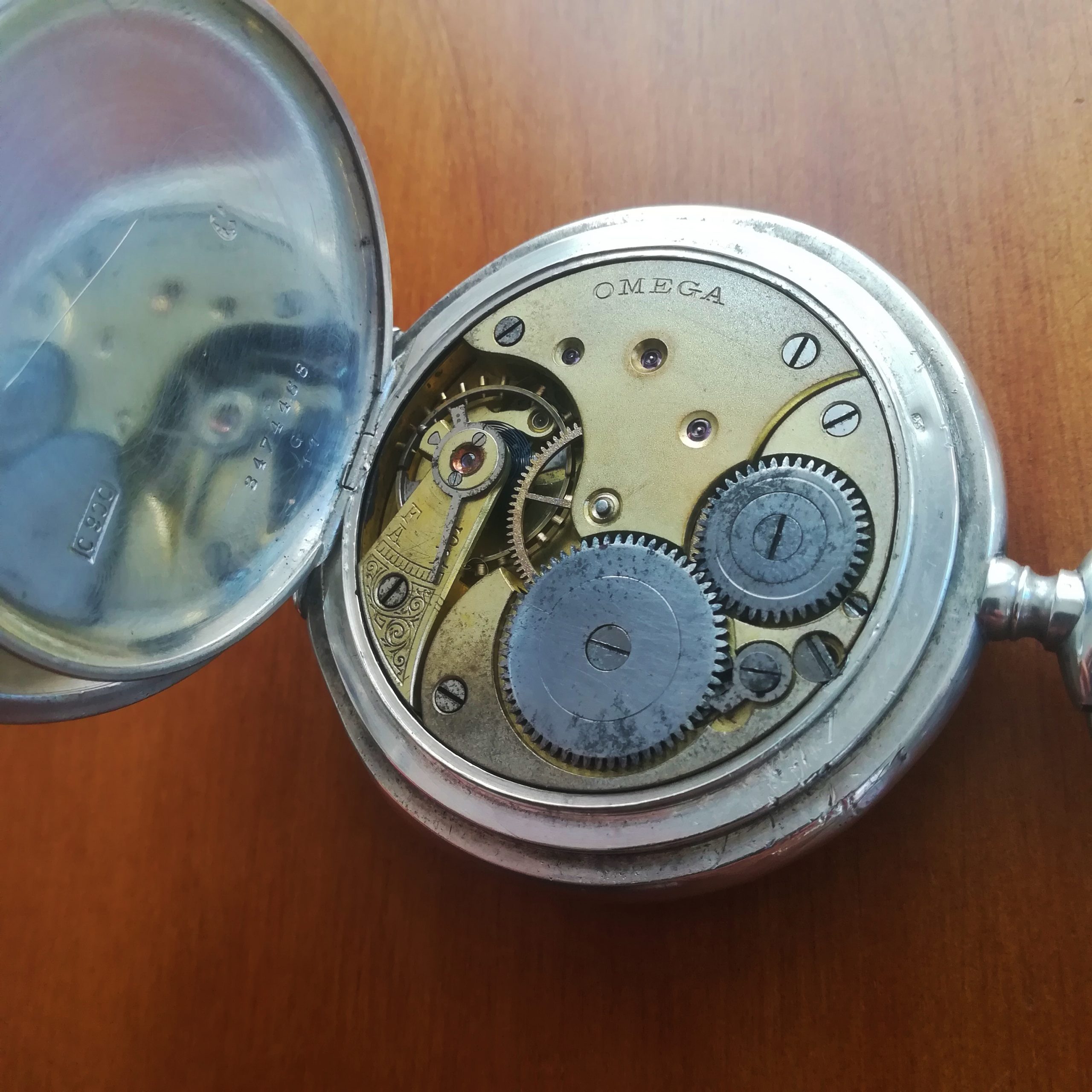 OMEGA vintage pocket watch, with Omega 19”’ manual wind movement, Swiss made in 1905 (according to its serial number), case of 50.5 mm, hand-wound (mechanical, no battery!), working fine and serviced.