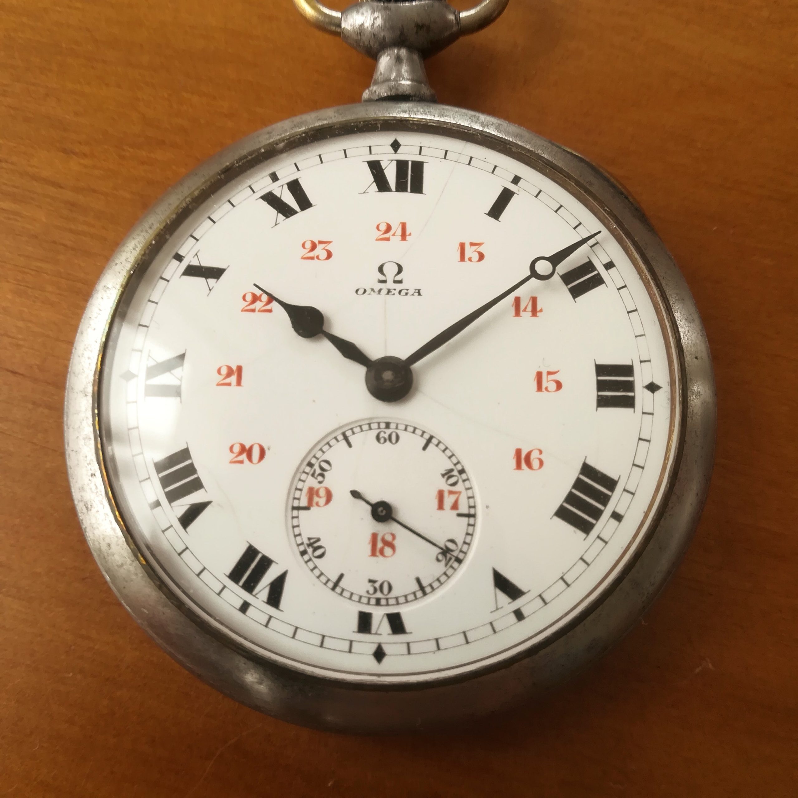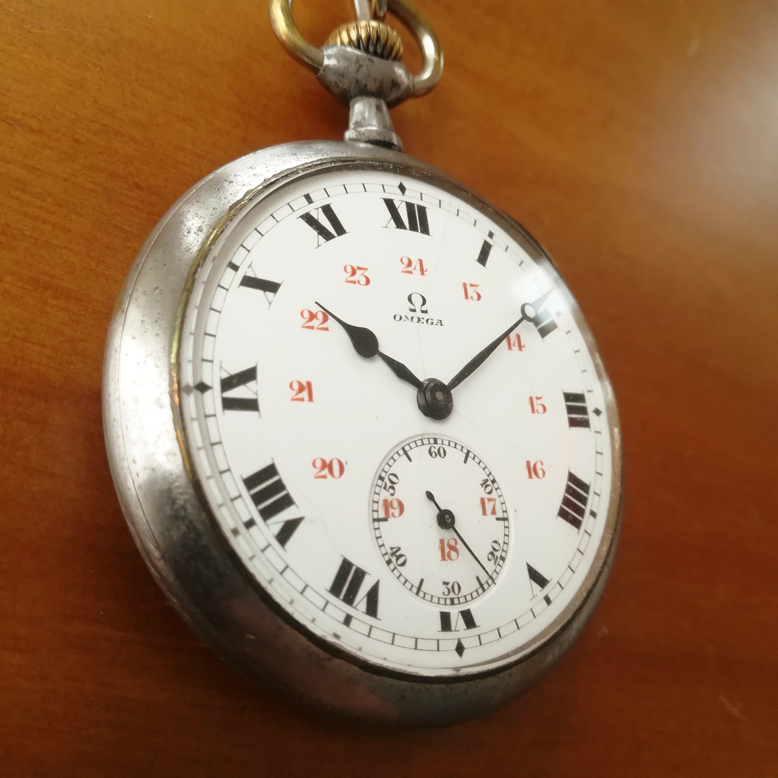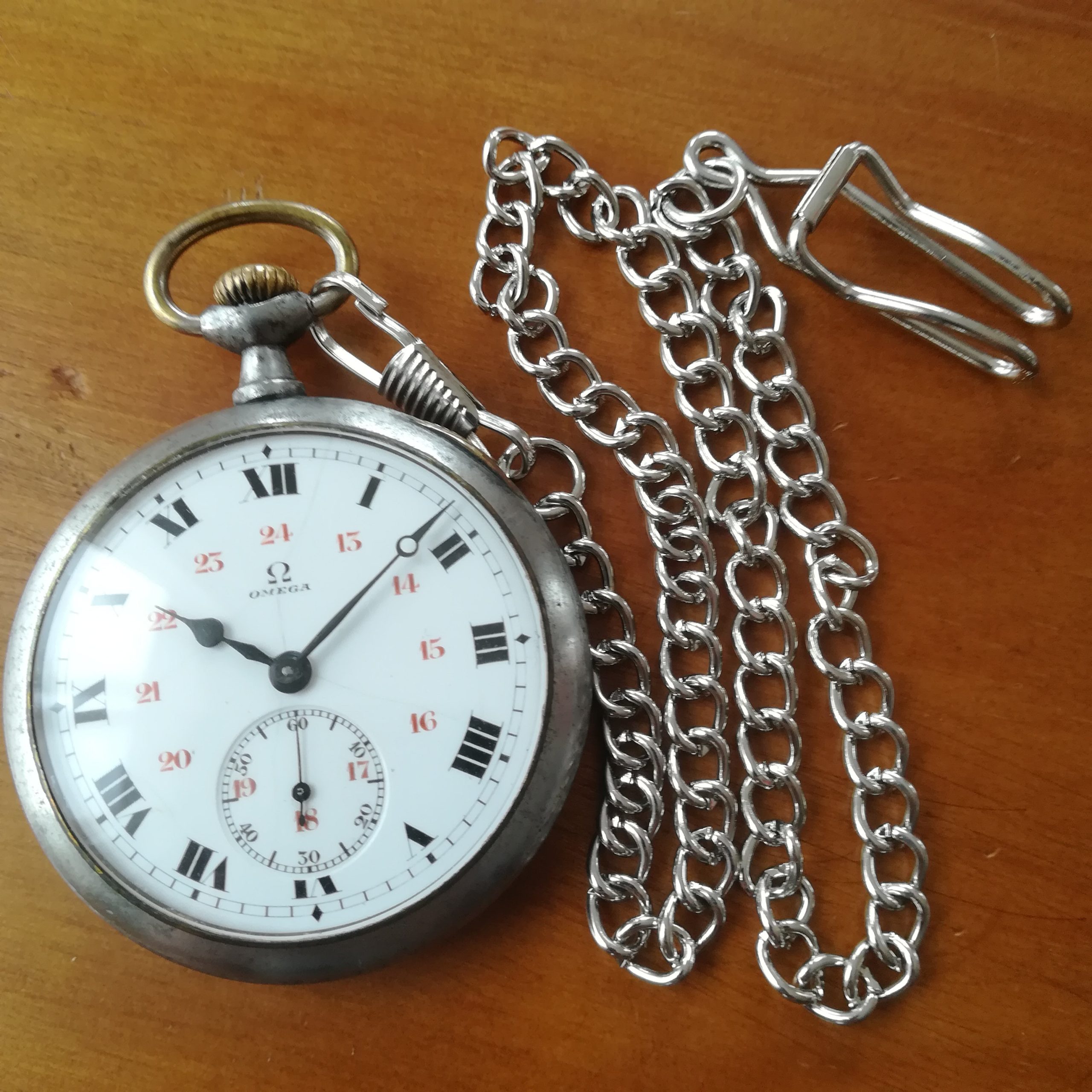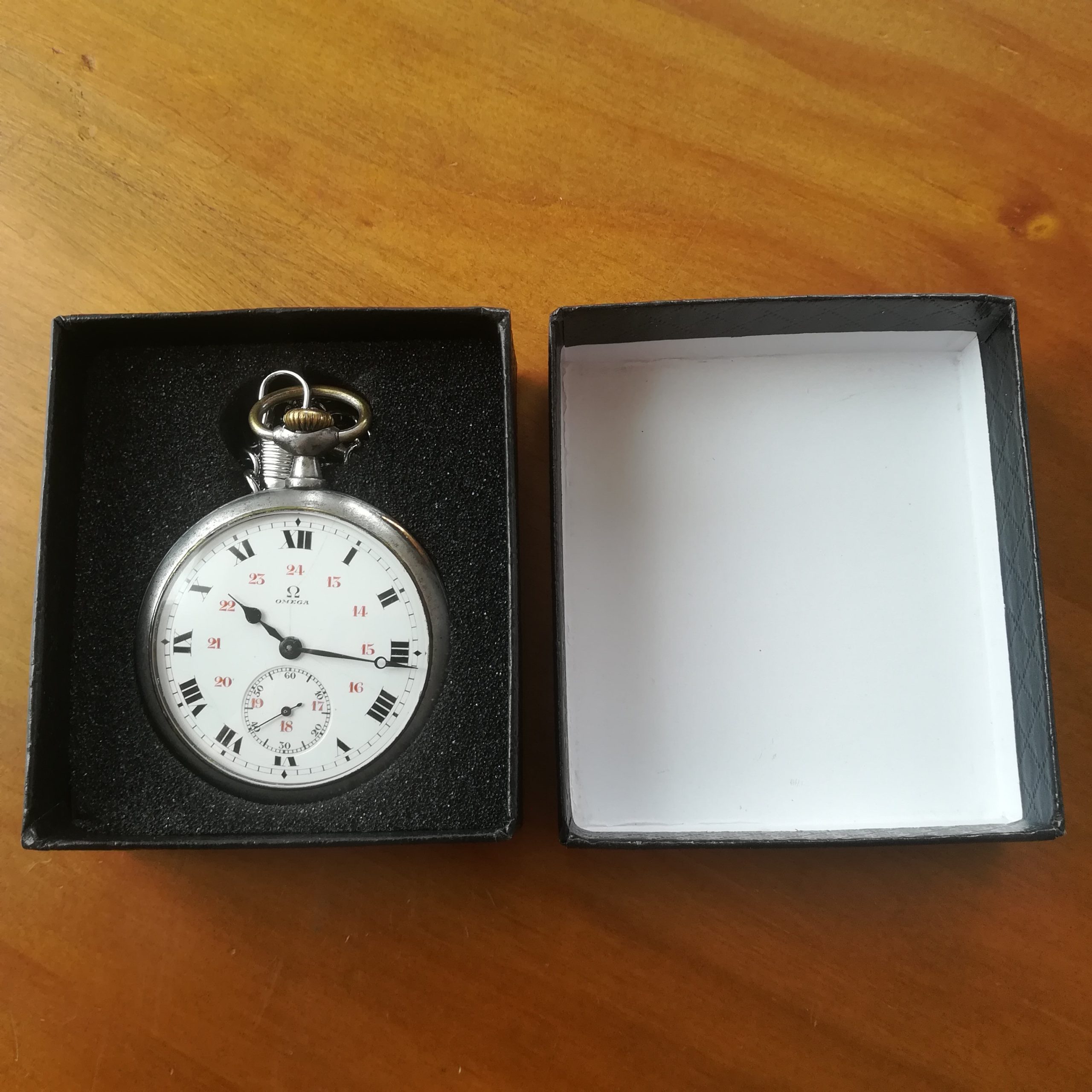 OMEGA vintage pocket watch, with Omega manual wind movement, Swiss made in 1912 (according to its serial number), case of 48.5 mm, hand-wound (mechanical, no battery!), working fine and serviced.