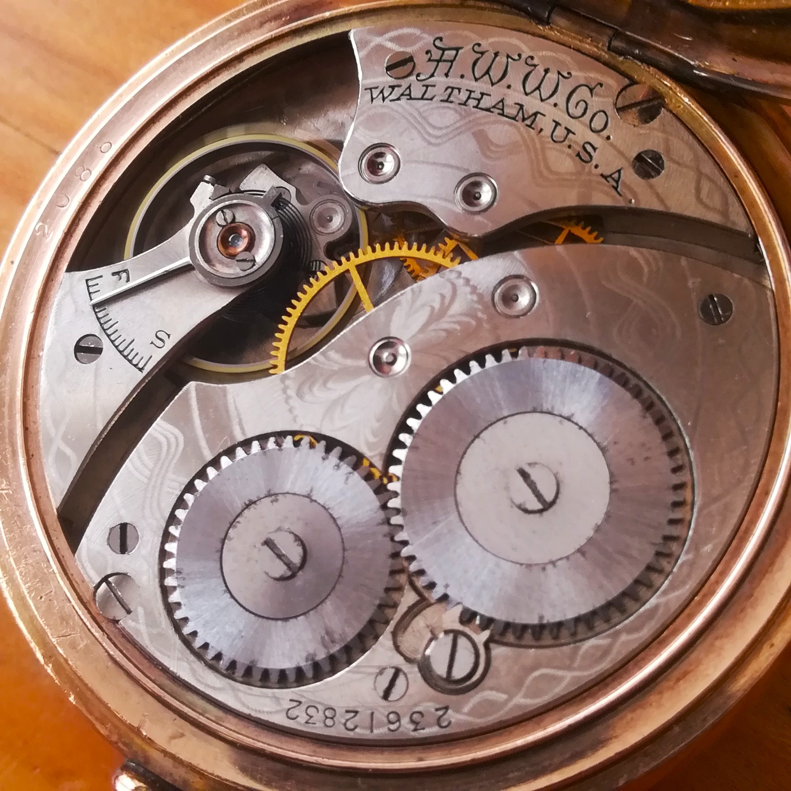 WALTHAM vintage pocket watch, with Grade 210 movement, Made in the USA in 1920 (according to its serial number), case of 46.5 mm, hand-wound (mechanical, no battery!), working fine and serviced.