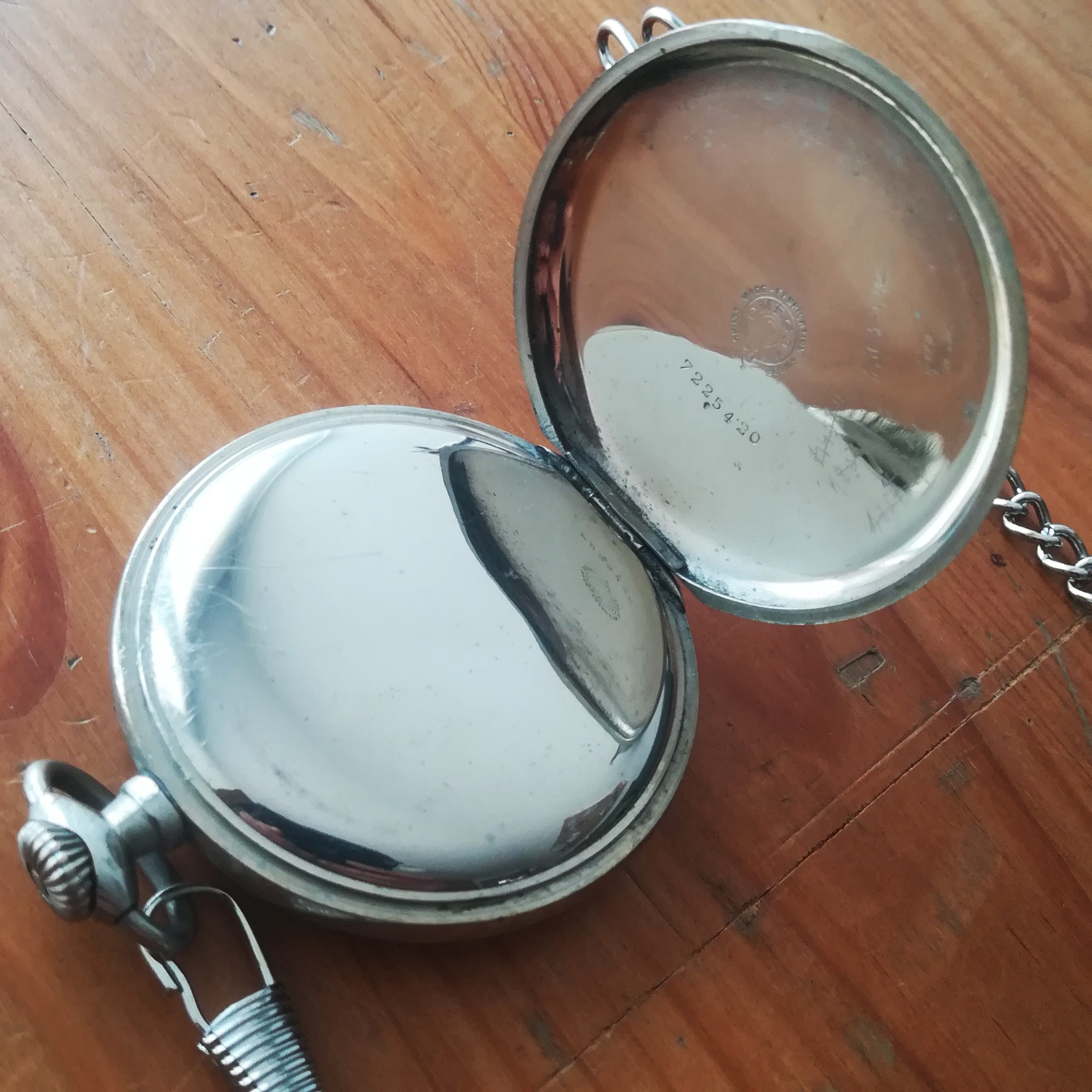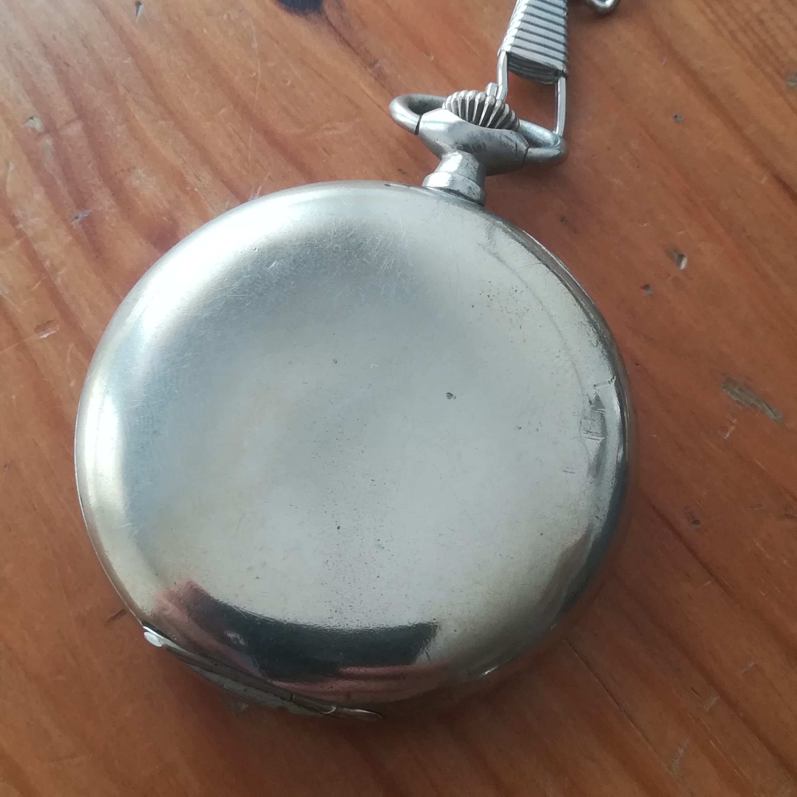 This piece features a metal case, with some scratches as can be seen in the photos. The enamel dial has some repairs at 4, 8 and 11 – please refer to the pictures. The watch also features a new metallic chain. Water resistance has not been tested, therefore it must be treated as NON-waterproof.