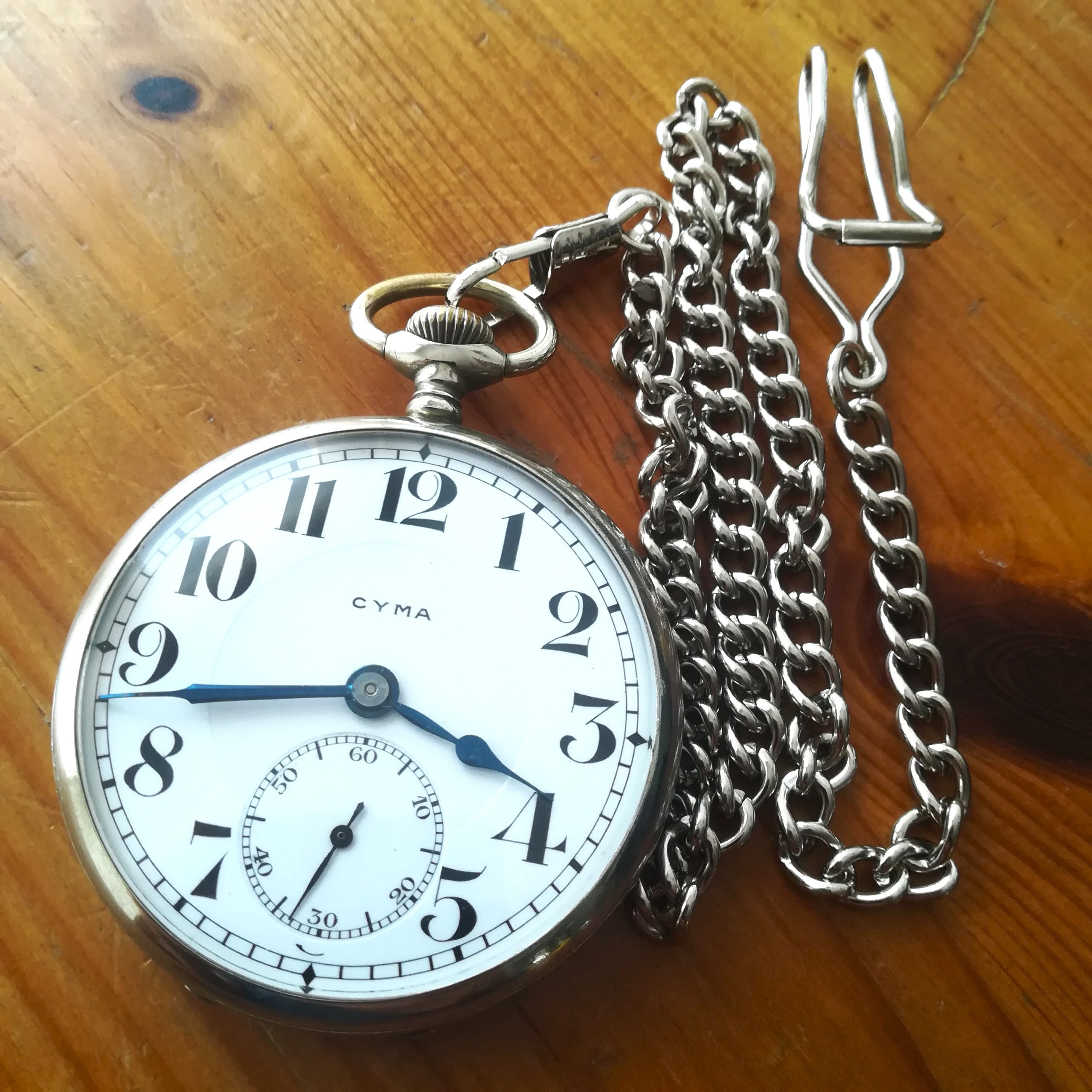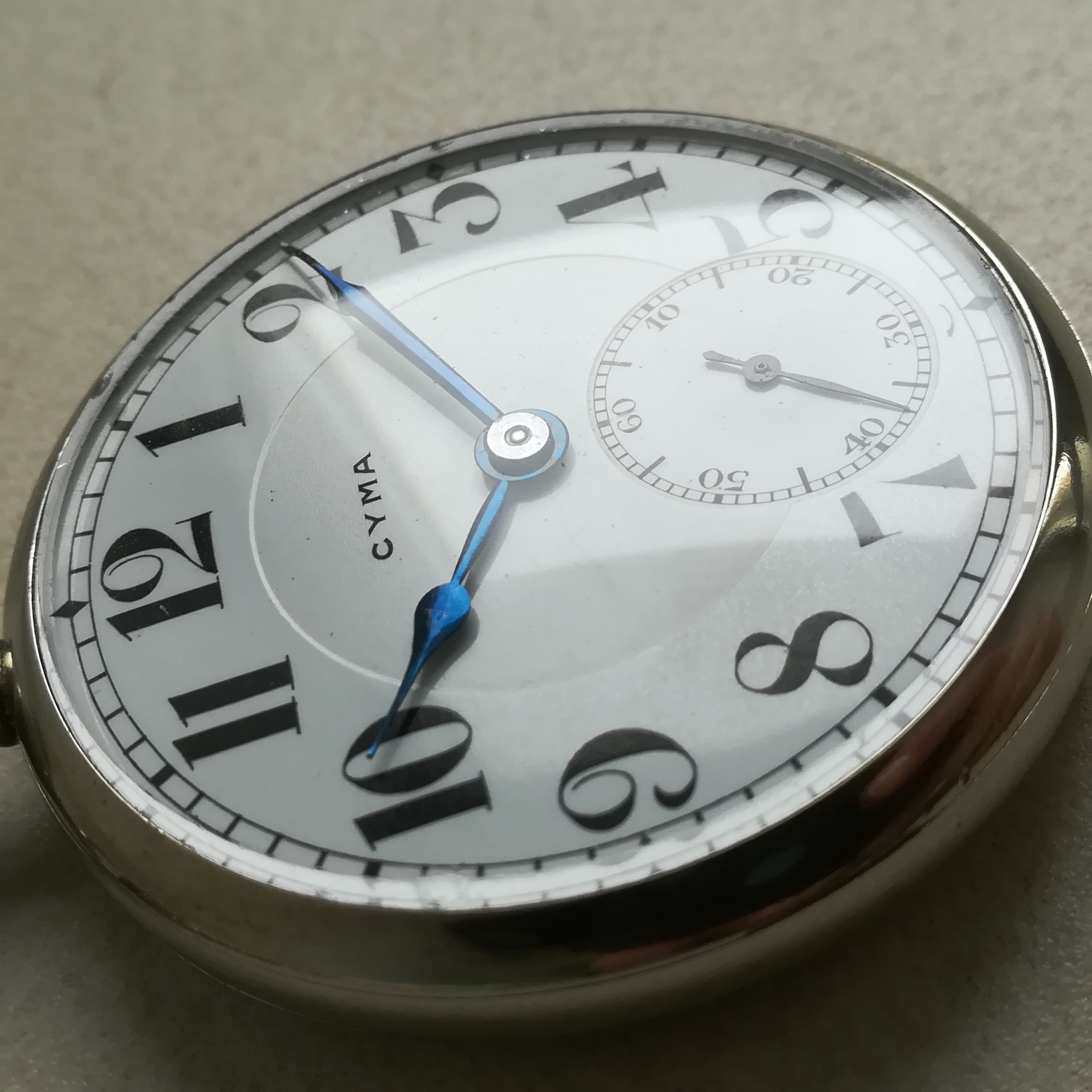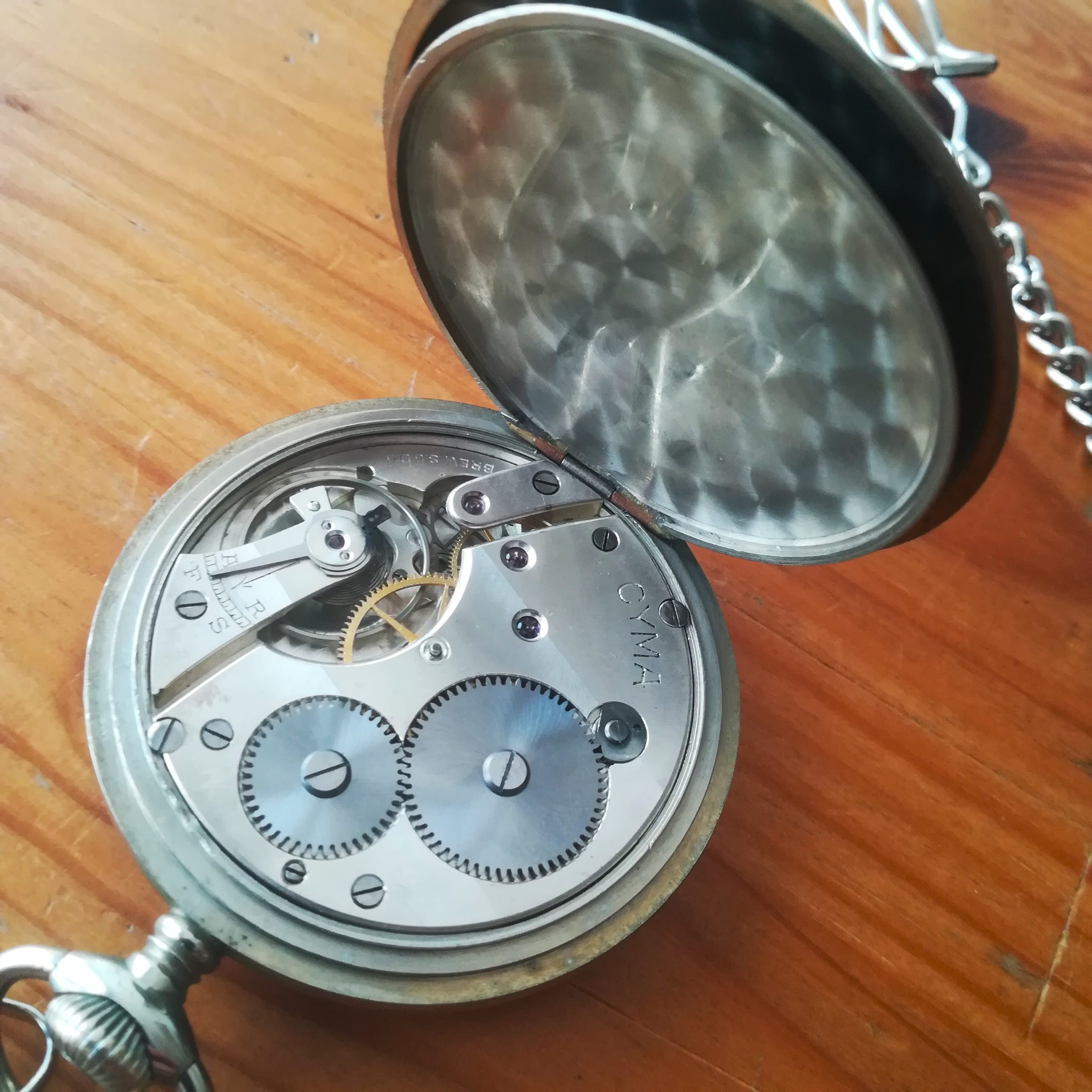 CYMA vintage pocket watch, with Cyma 971 movement, Swiss made in 1931 according to its serial number, case of 49 mm, hand-wound (mechanical, no battery!), working fine and serviced.