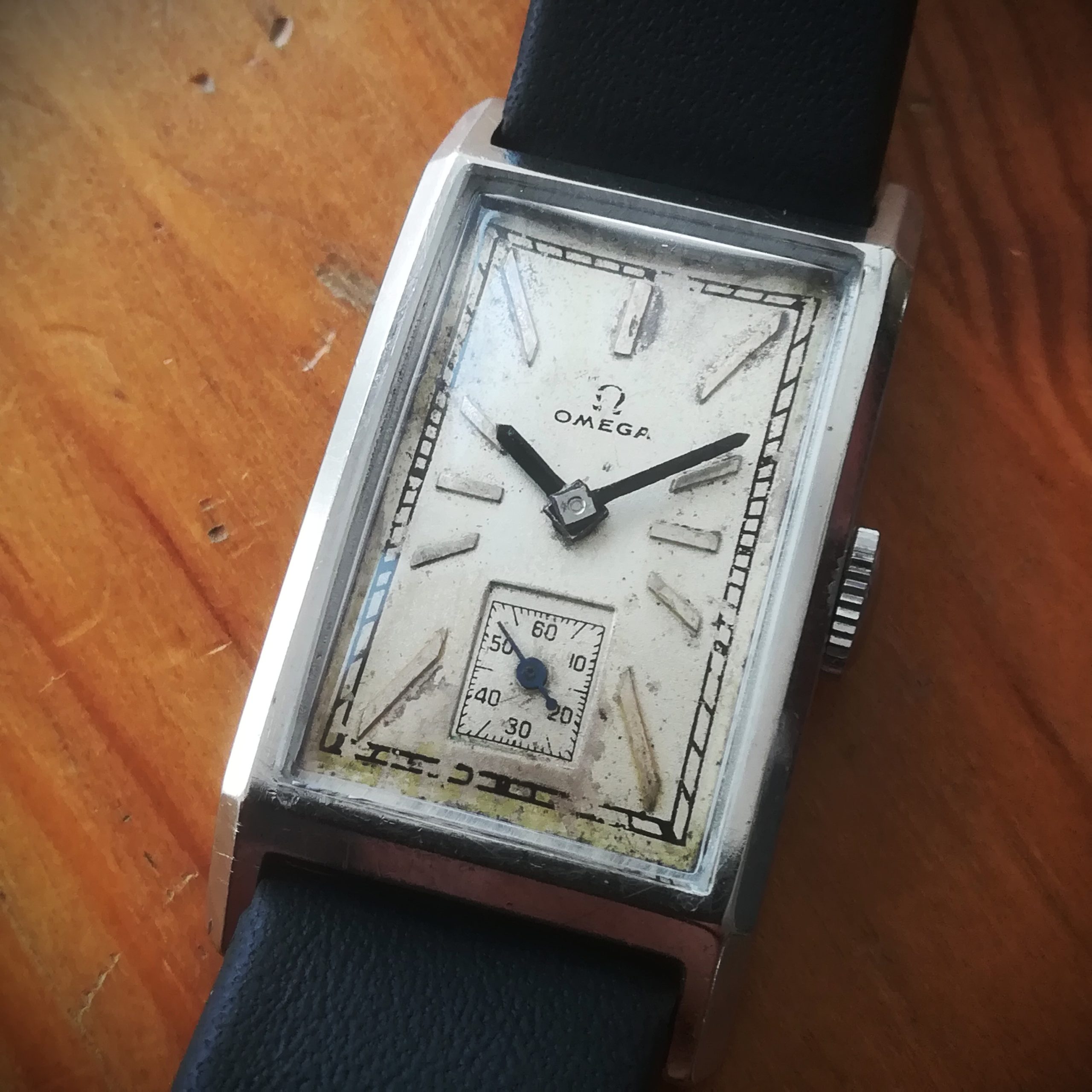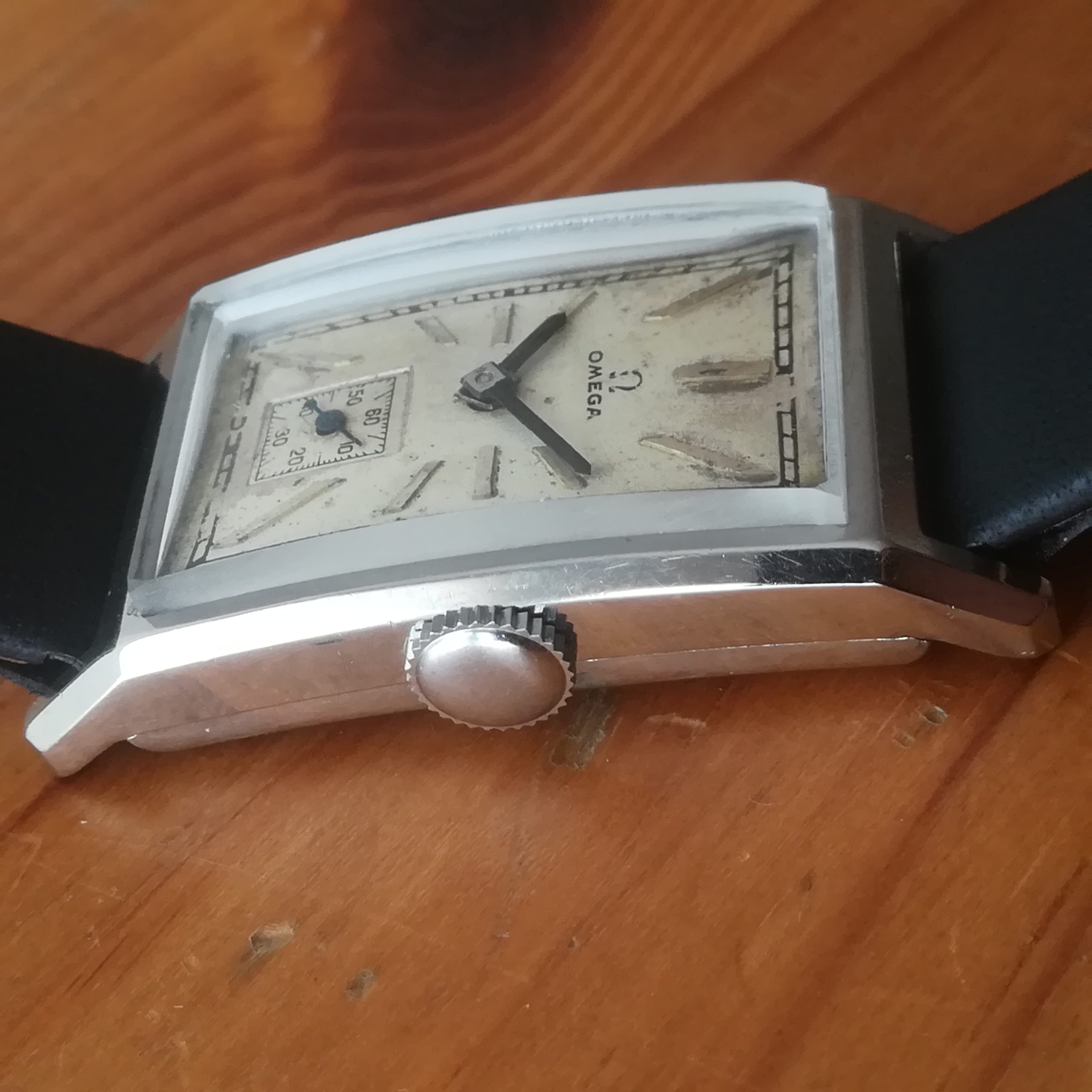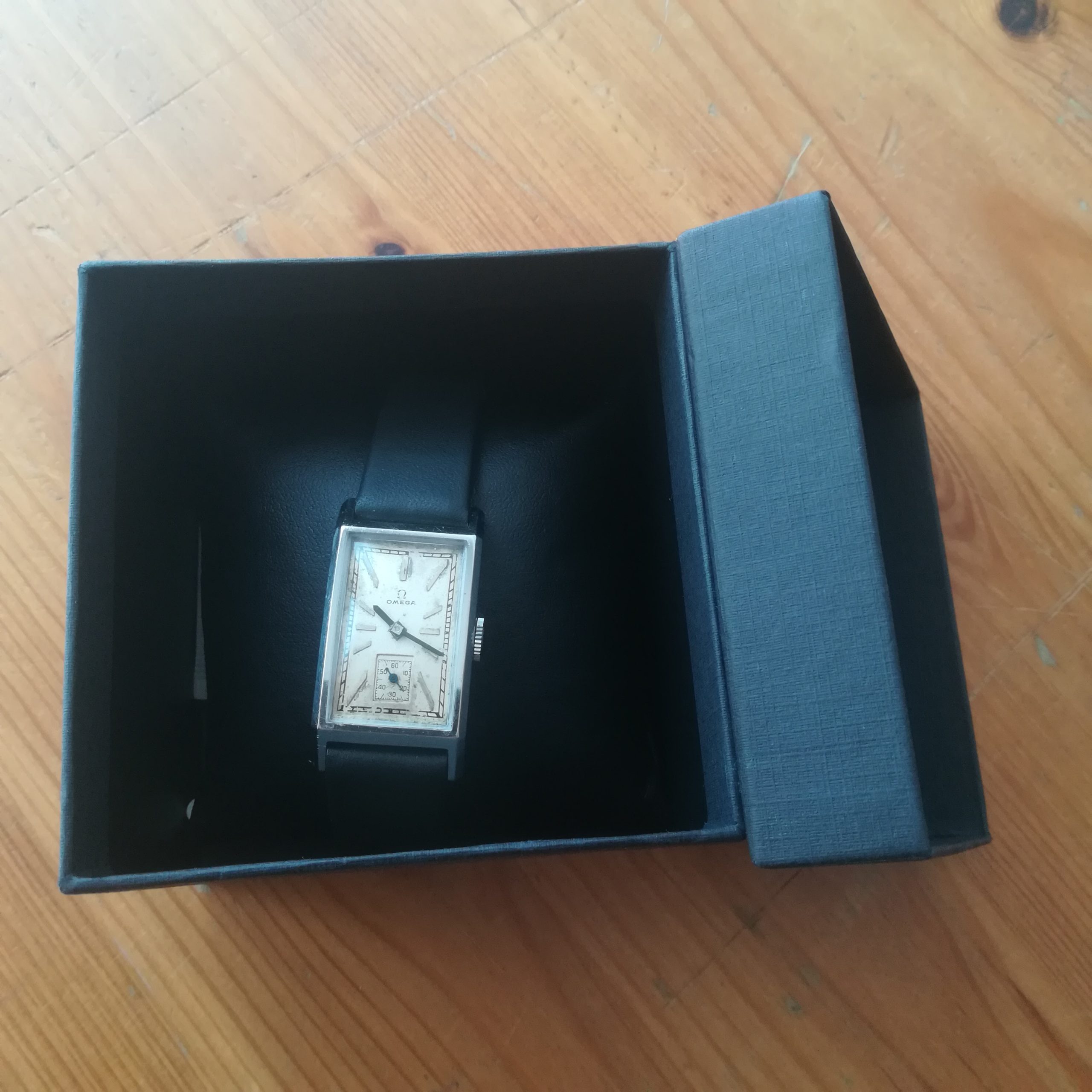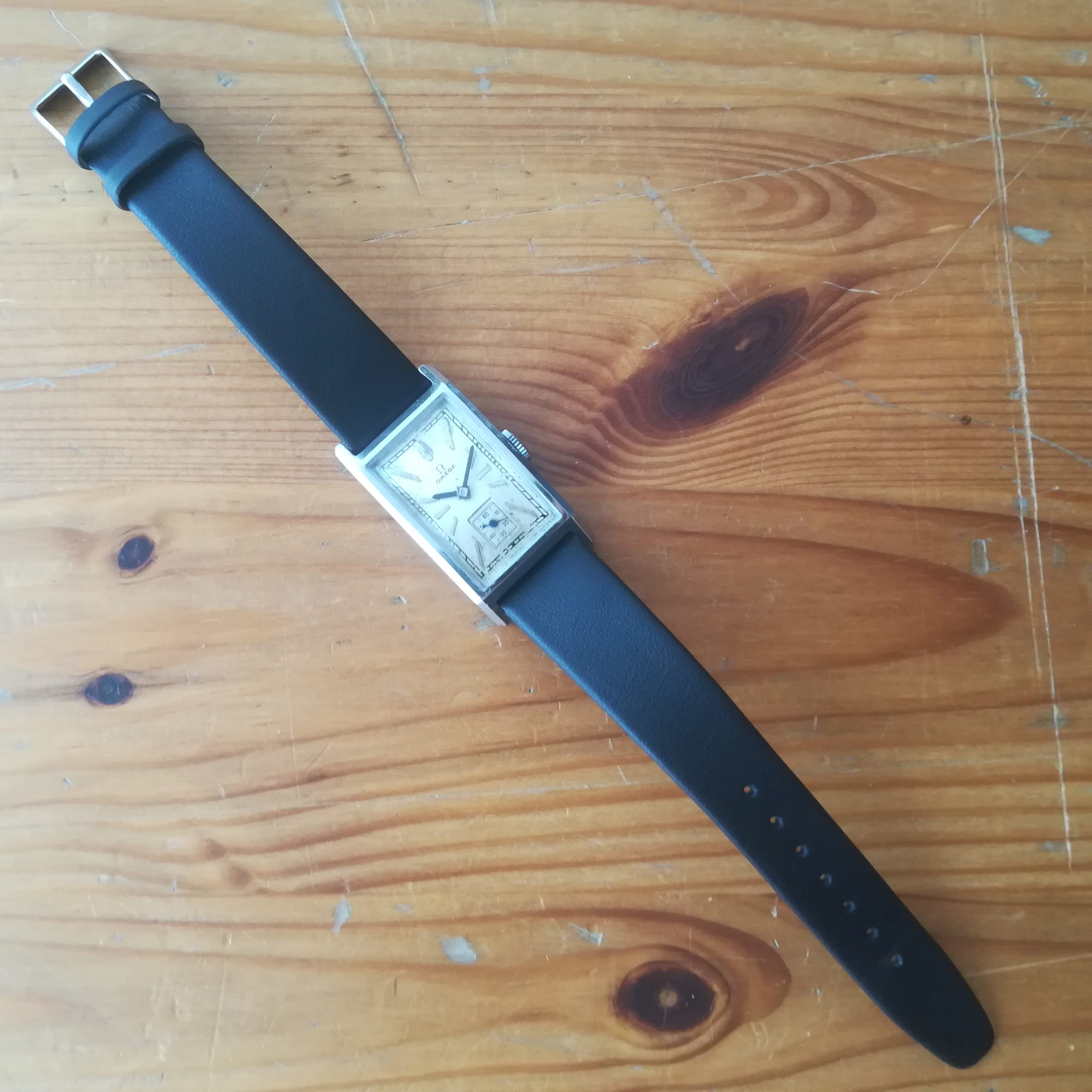 OMEGA art deco vintage watch, Swiss Made with in-house 20F movement, tank case of 22×41.5 mm, hand-wound (mechanical, no battery!), working fine and serviced. Its serial number dates it to 1934: a true collector’s piece!