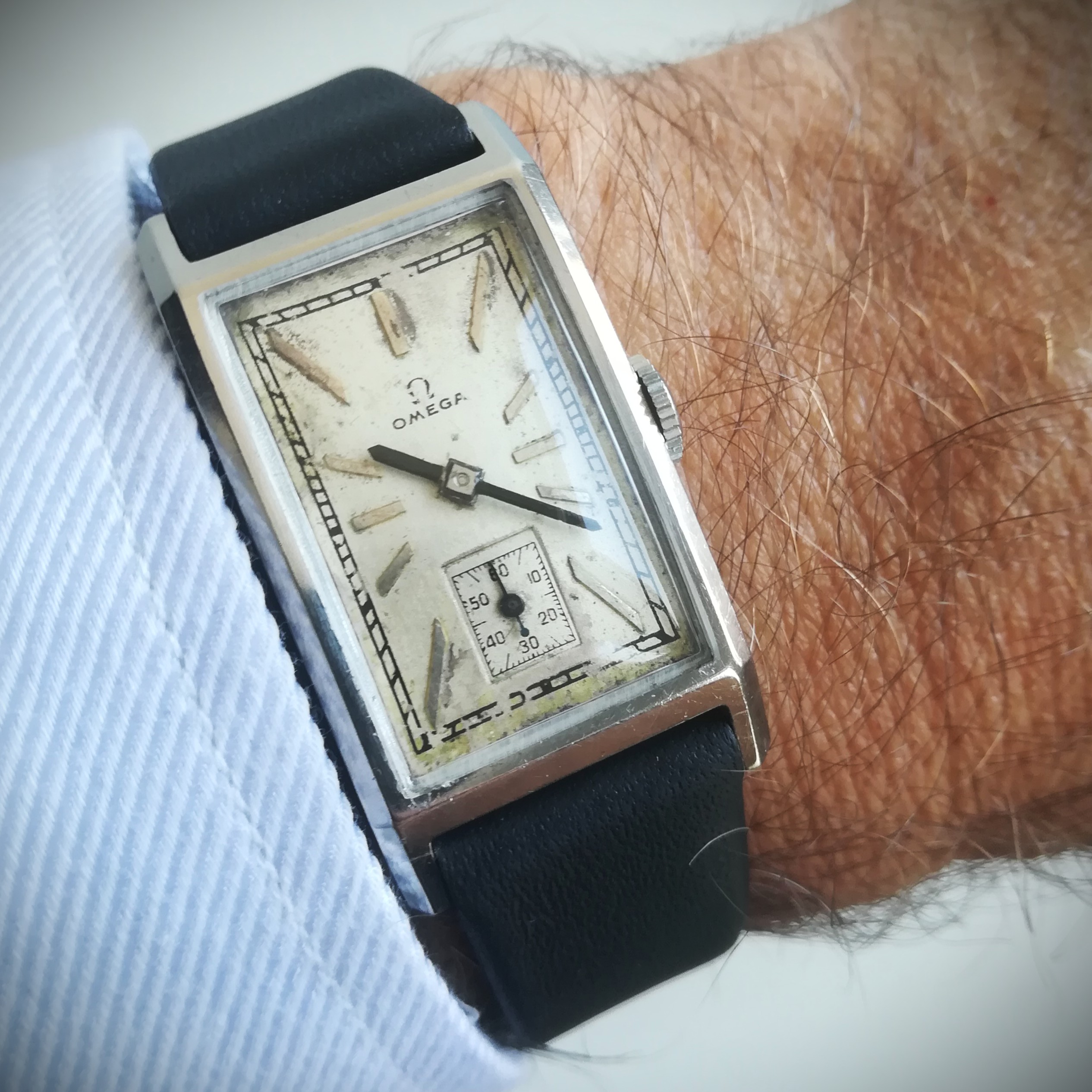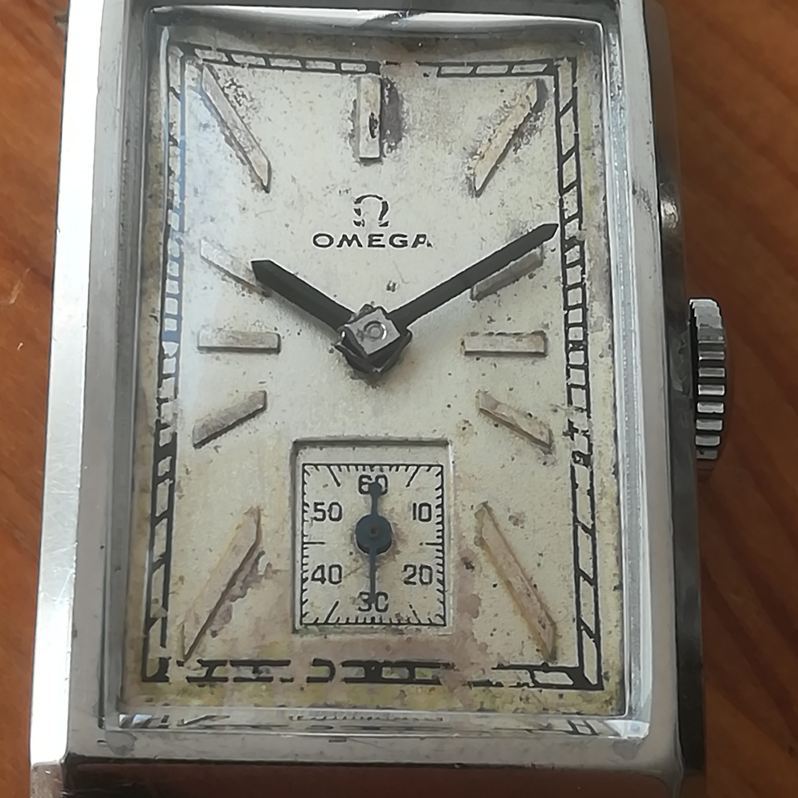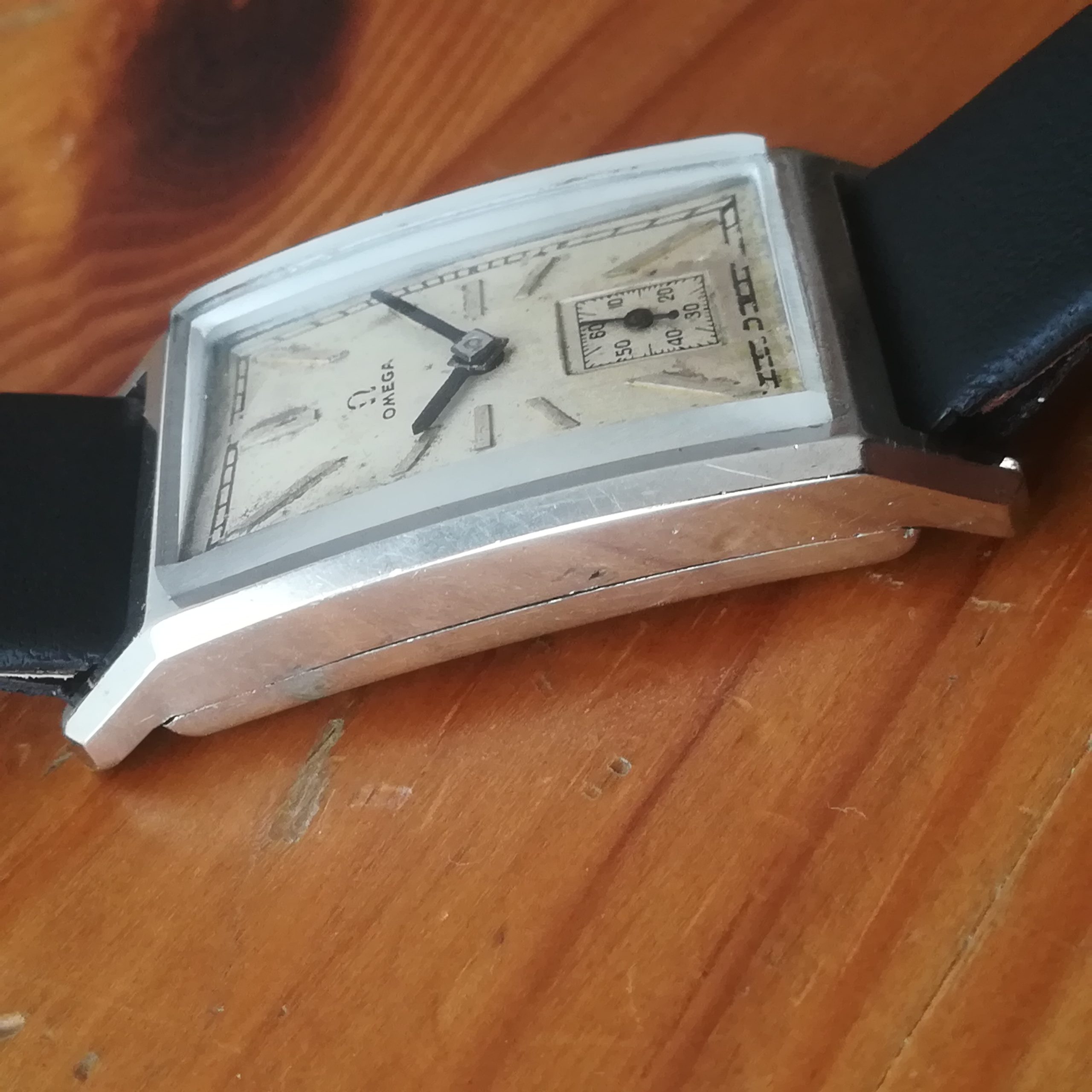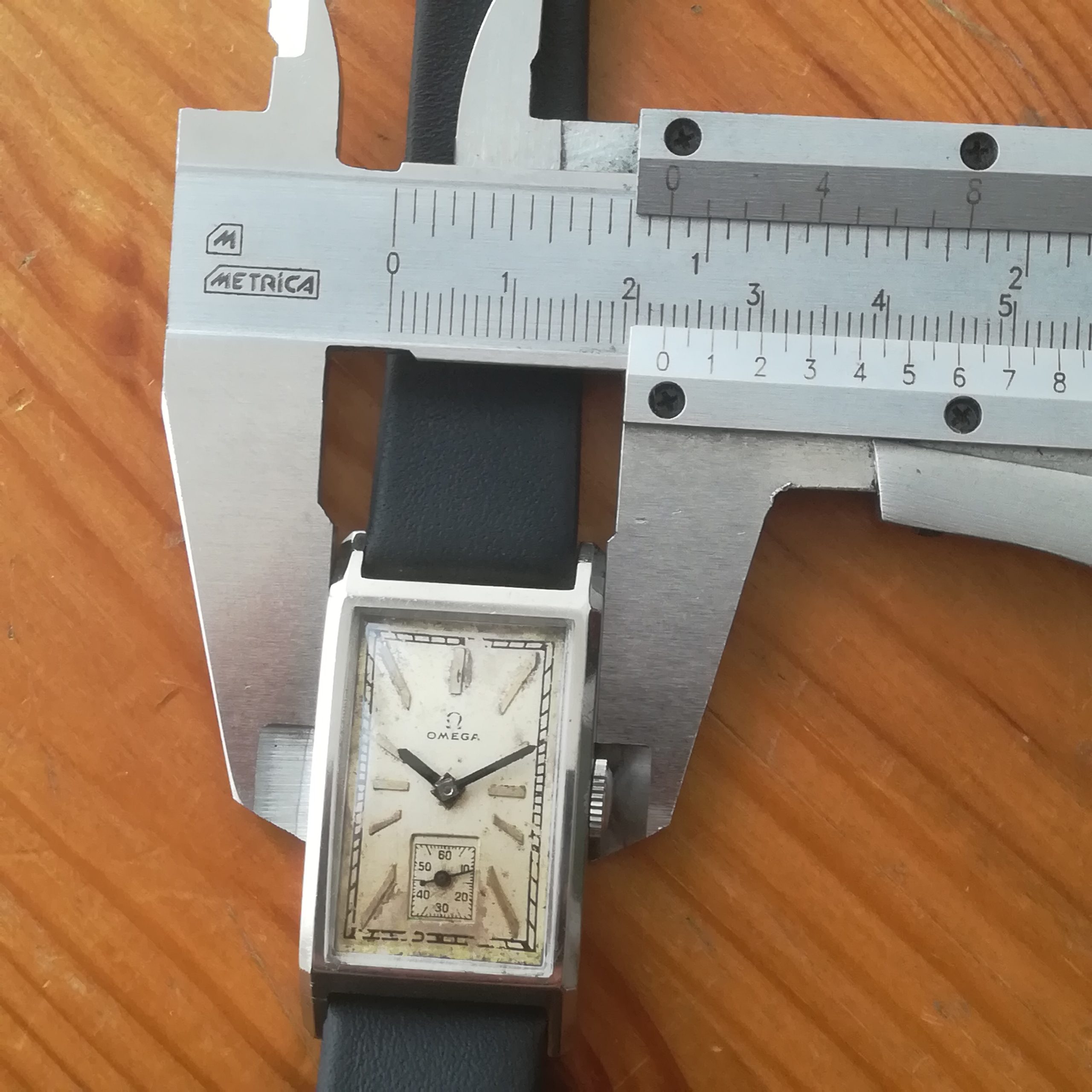OMEGA art deco vintage watch, Swiss Made with in-house 20F movement, tank case of 22×41.5 mm, hand-wound (mechanical, no battery!), working fine and serviced. Its serial number dates it to 1934: a true collector’s piece!