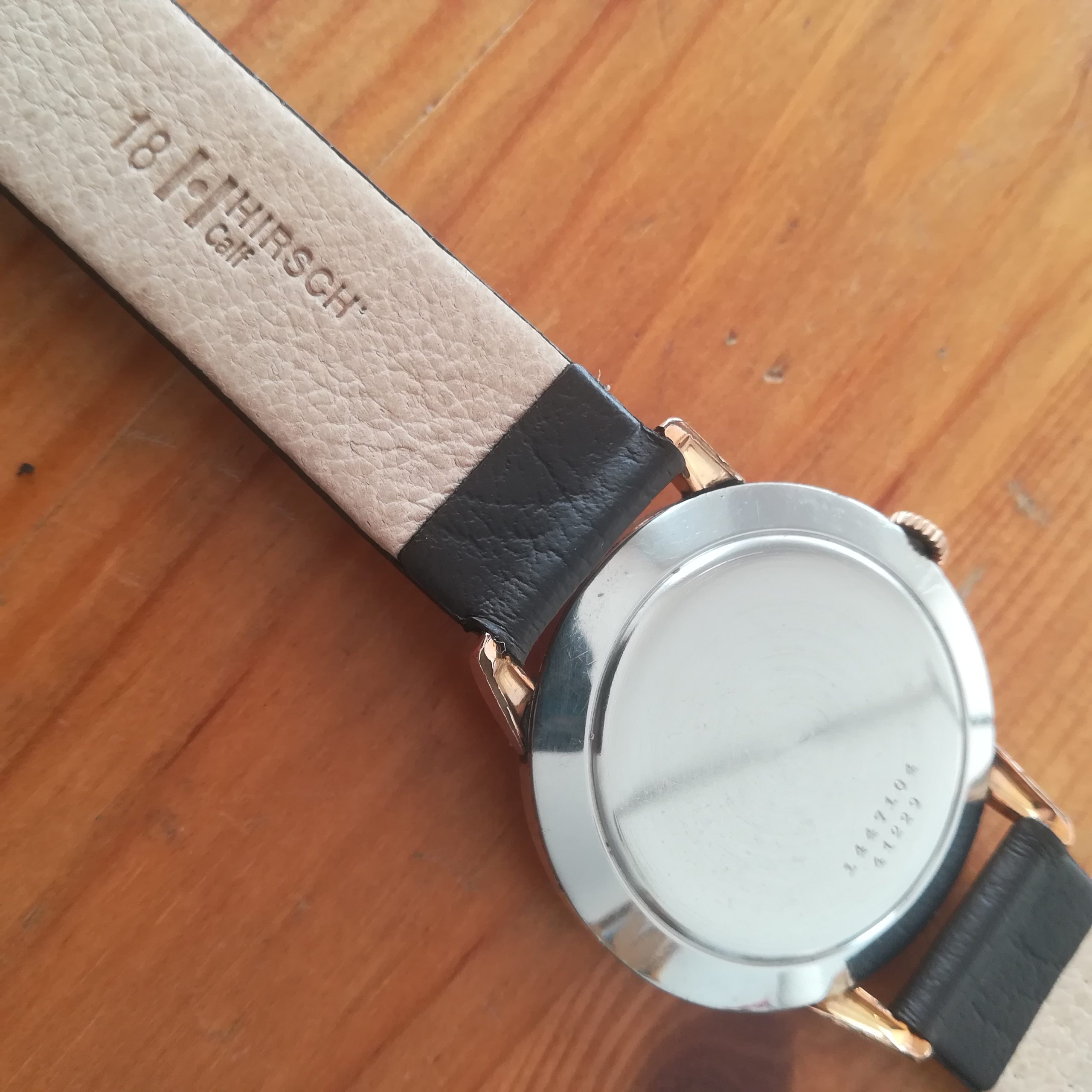 The case gold plating is worn in some areas – please check the photos. The watch features a new Hirsch brown leather strap. It will fit wrists of up to 21 cm.