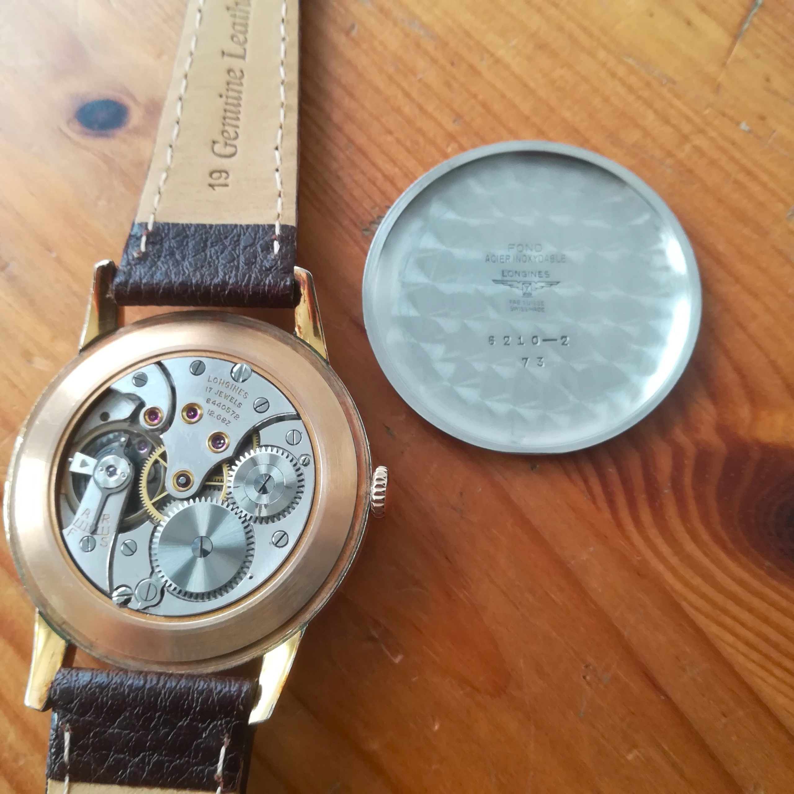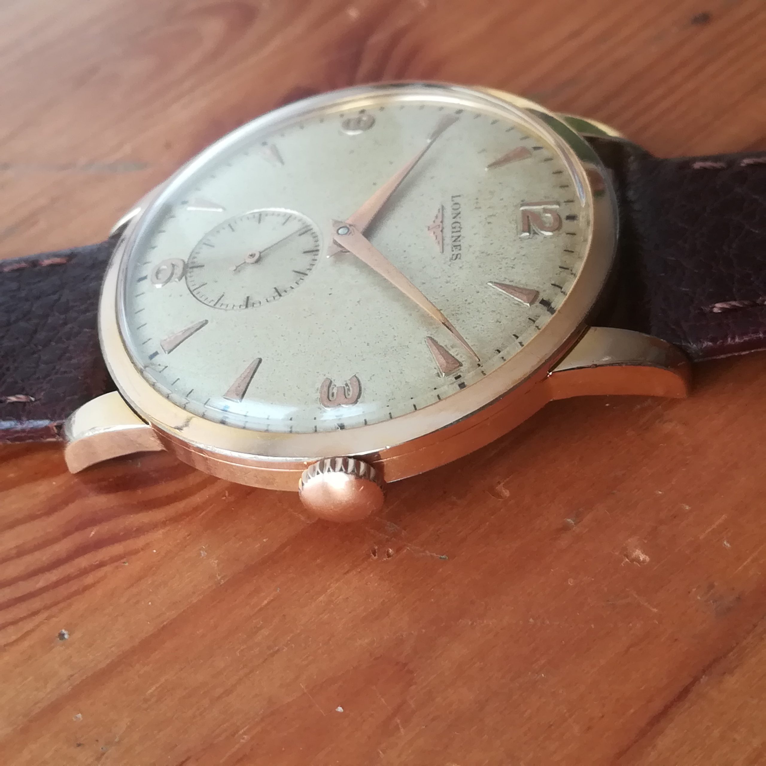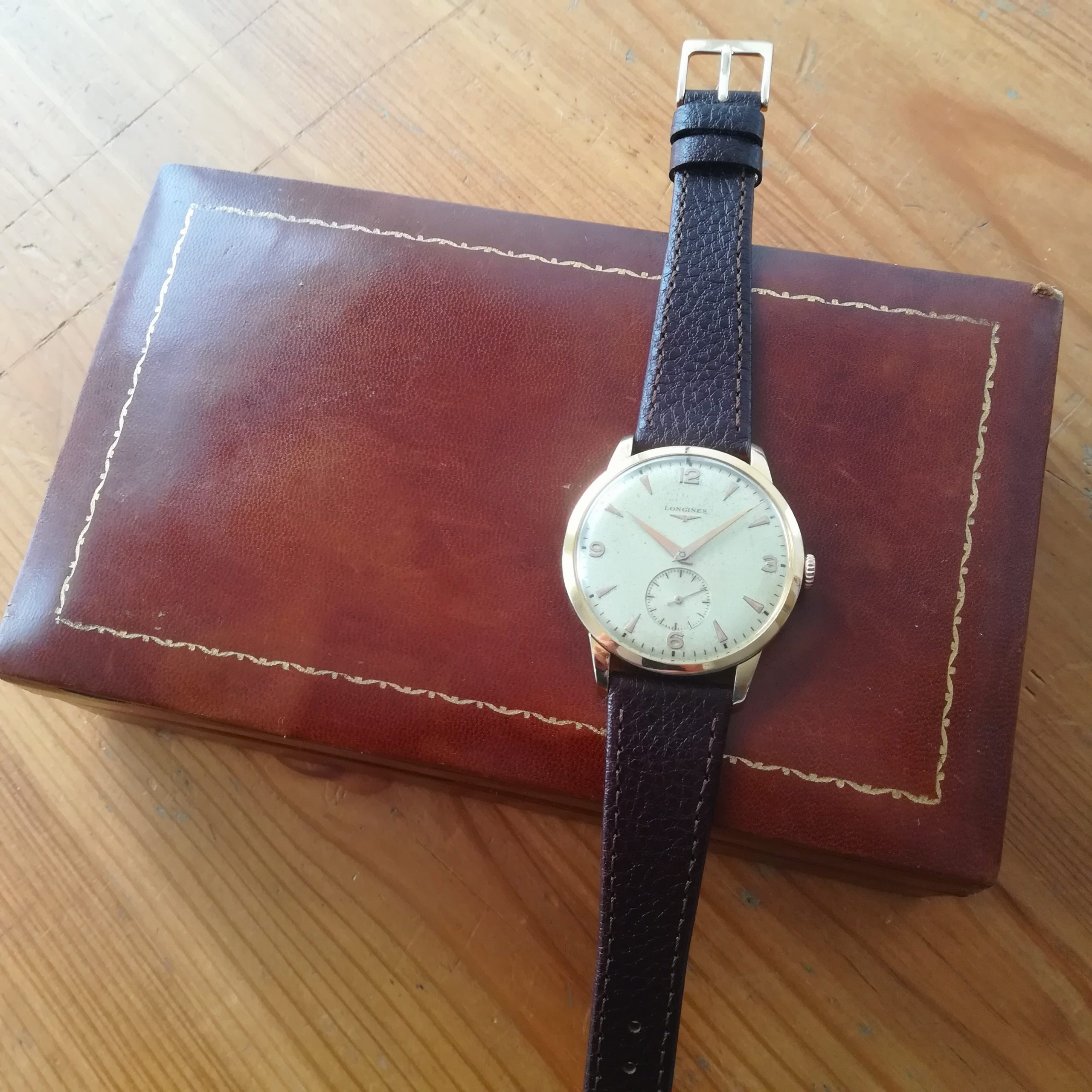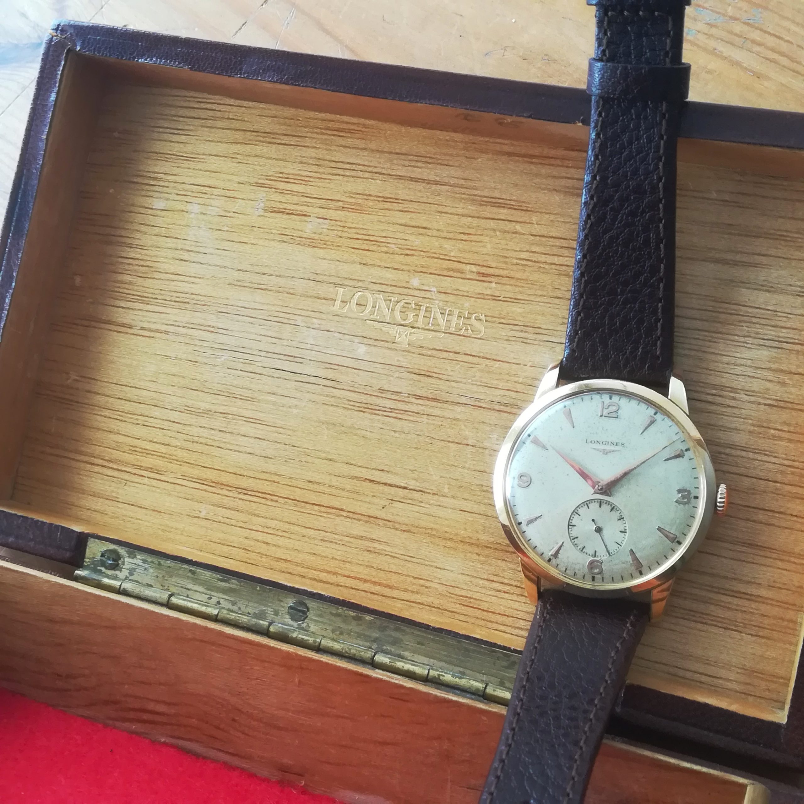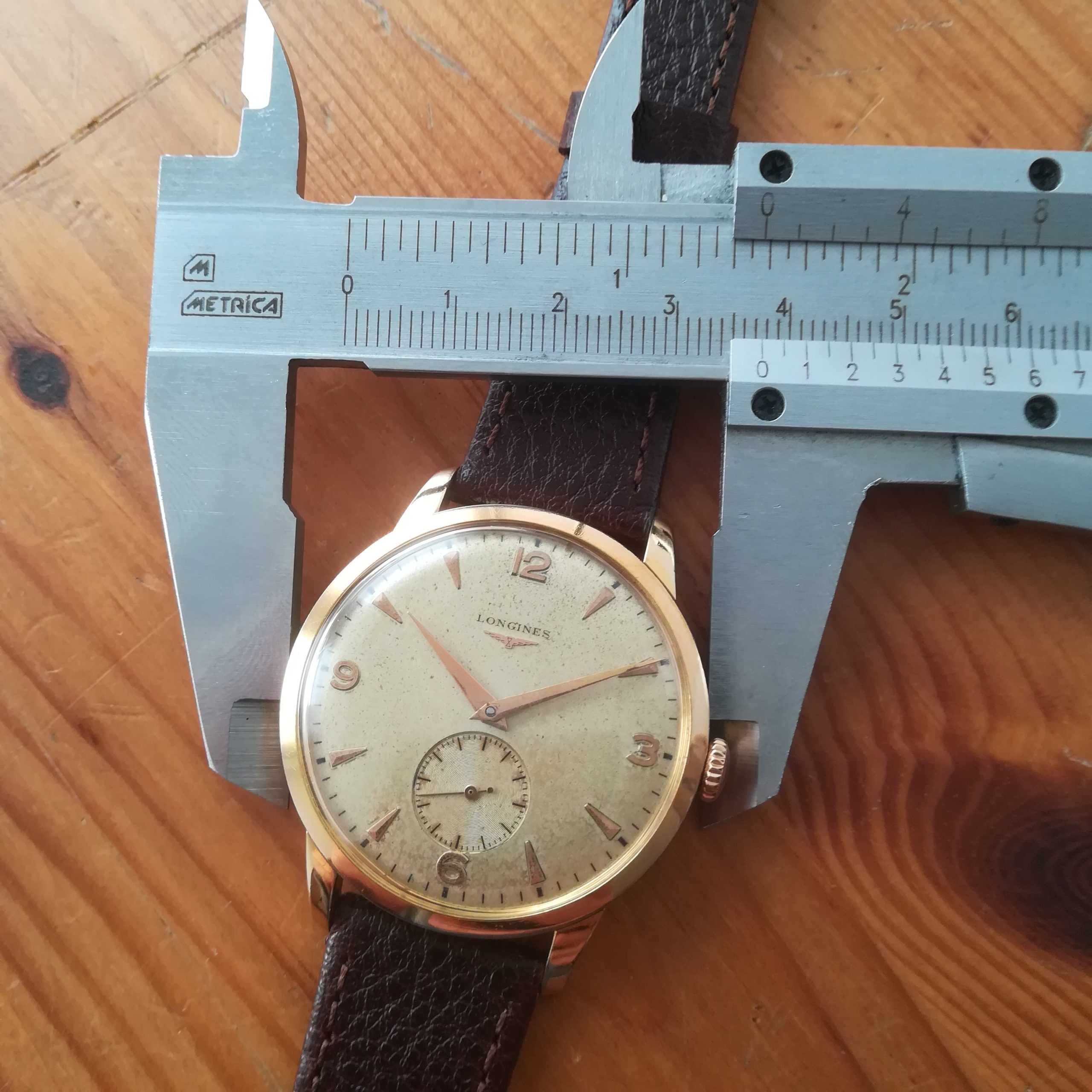 LONGINES vintage watch, with in-house 12.68z movement, Swiss made in 1952 (according to its serial number and the Longines registers), case of 37.5 mm across excluding the crown (Jumbo size), hand-wound (mechanical, no battery!), working fine and serviced. Ref. 6210-2 / 73.