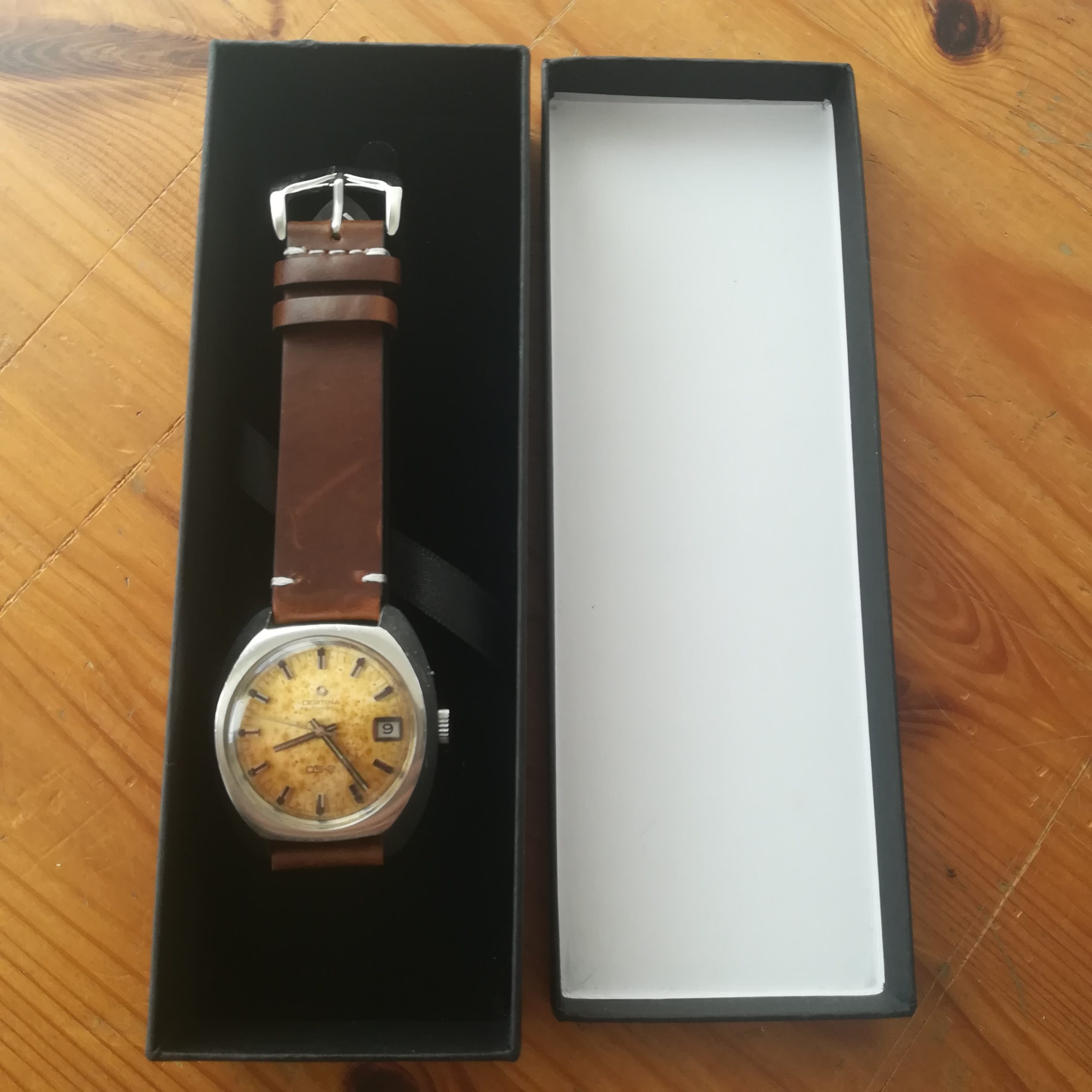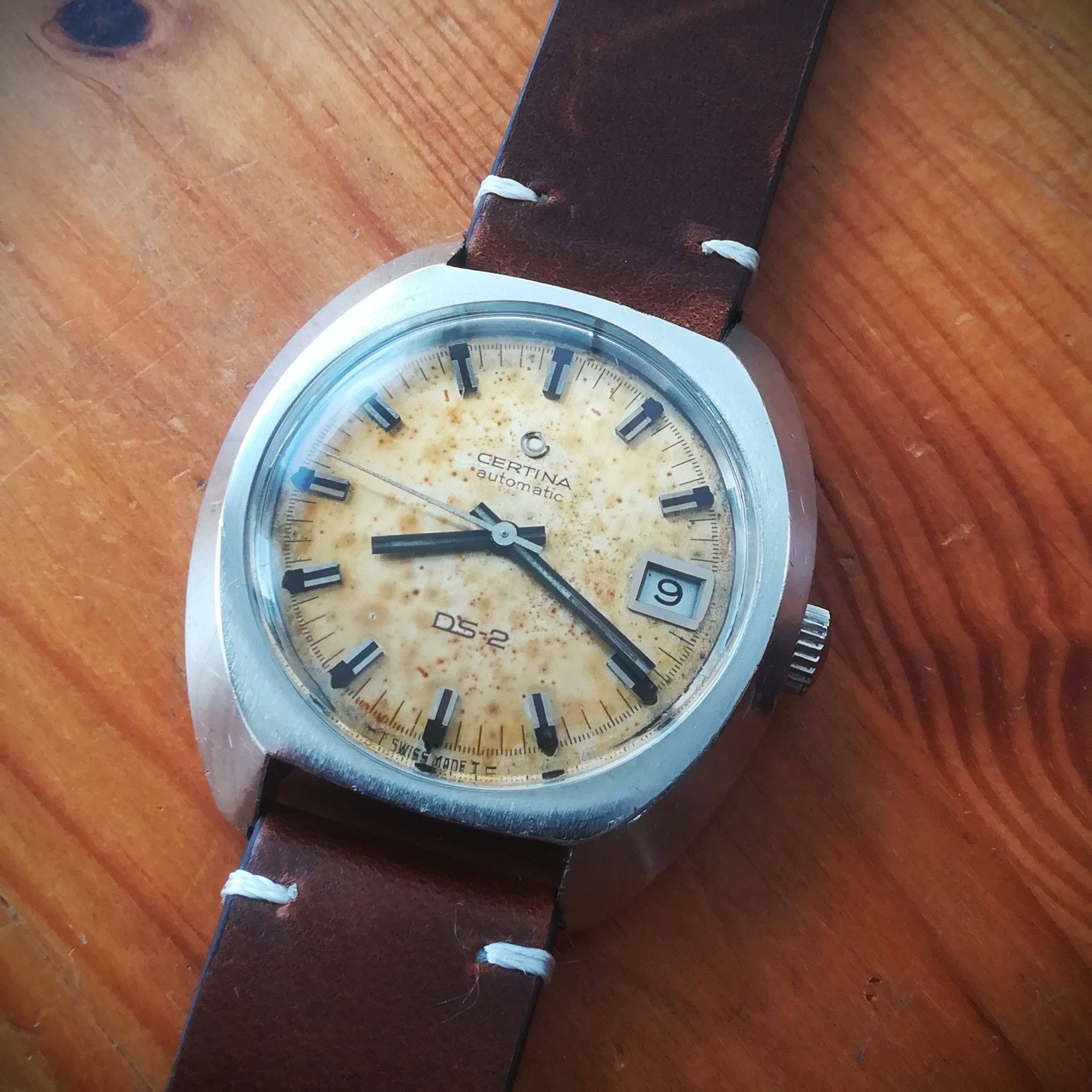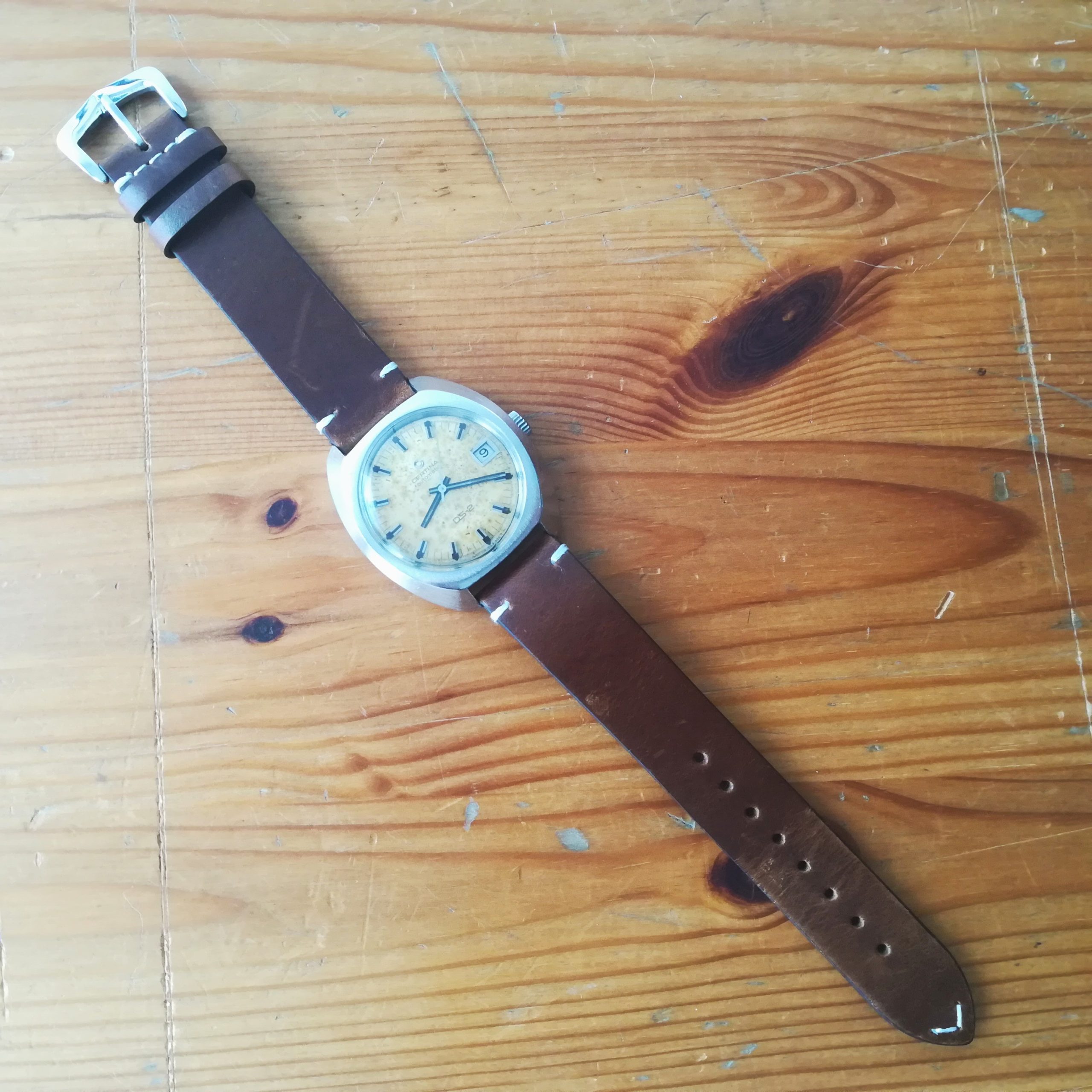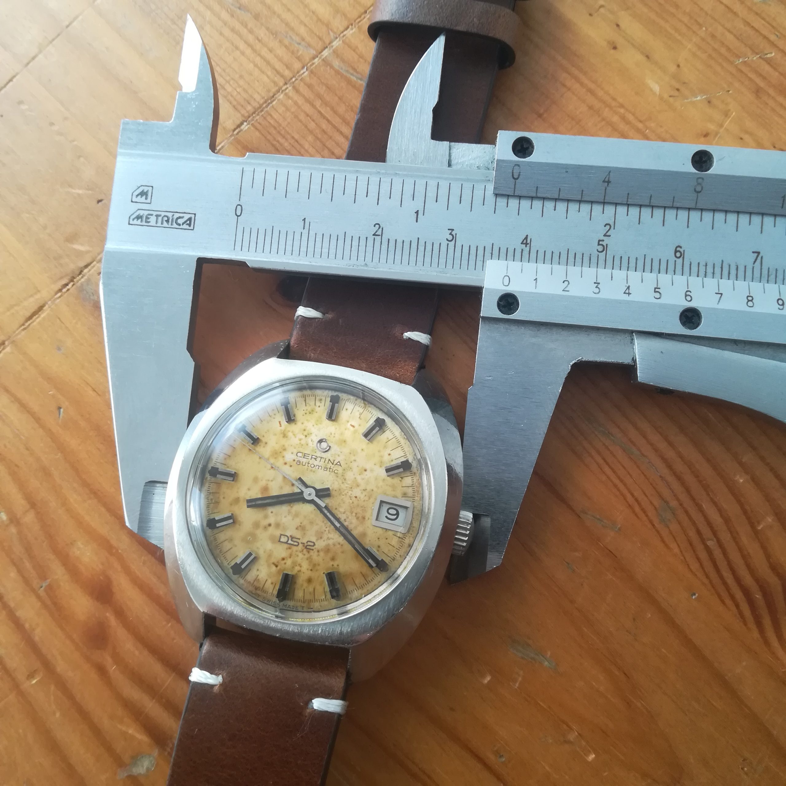 CERTINA DS-2 vintage automatic watch, with in-house 25-651 movement, Swiss made in 1968, case of 38 mm excluding the crown, automatic (self-winding with the user’s movements) and hand-wound (mechanical, no battery!) with date indication, working fine and serviced.