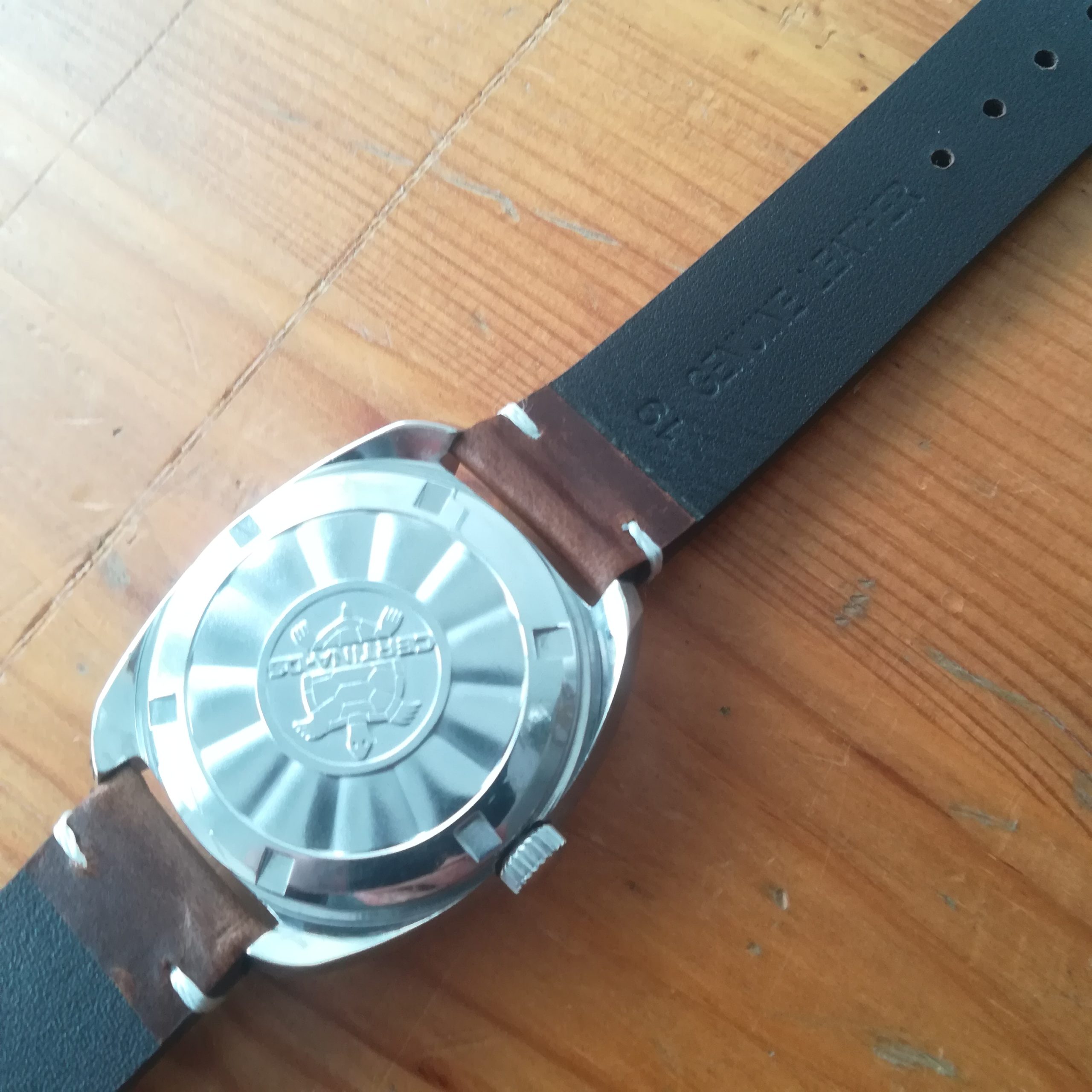 Date quickset by changing 23-24h. As with any other vintage mechanical watch, exact accuracy cannot be guaranteed, as it depends on many factors, including your kind of use. It has been regulated in different positions to minimize the average time gain/loss. The watch has been fully serviced in November 2025.