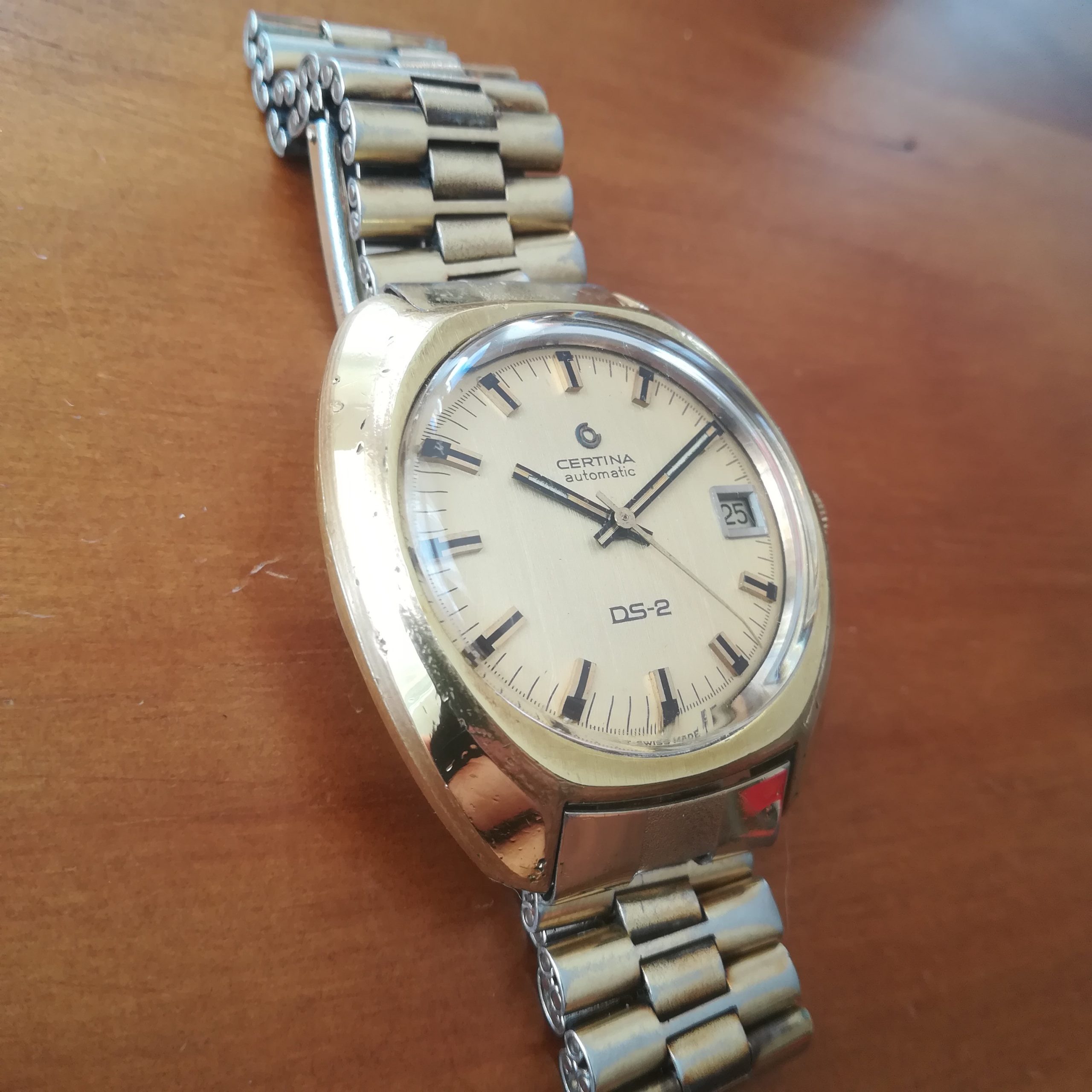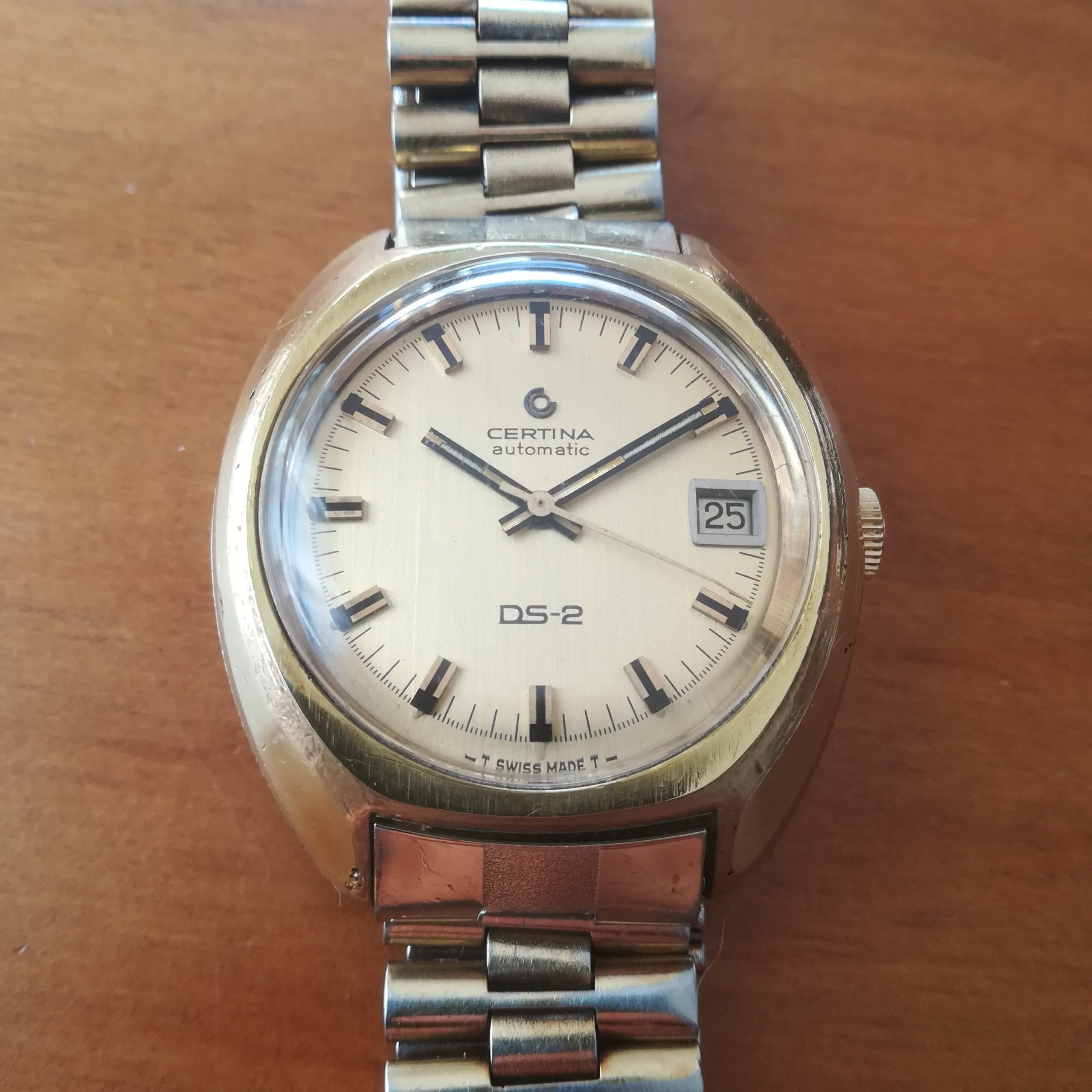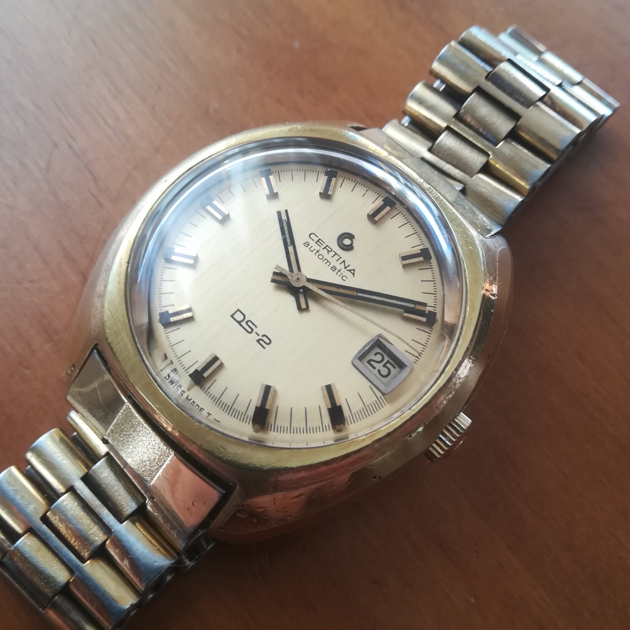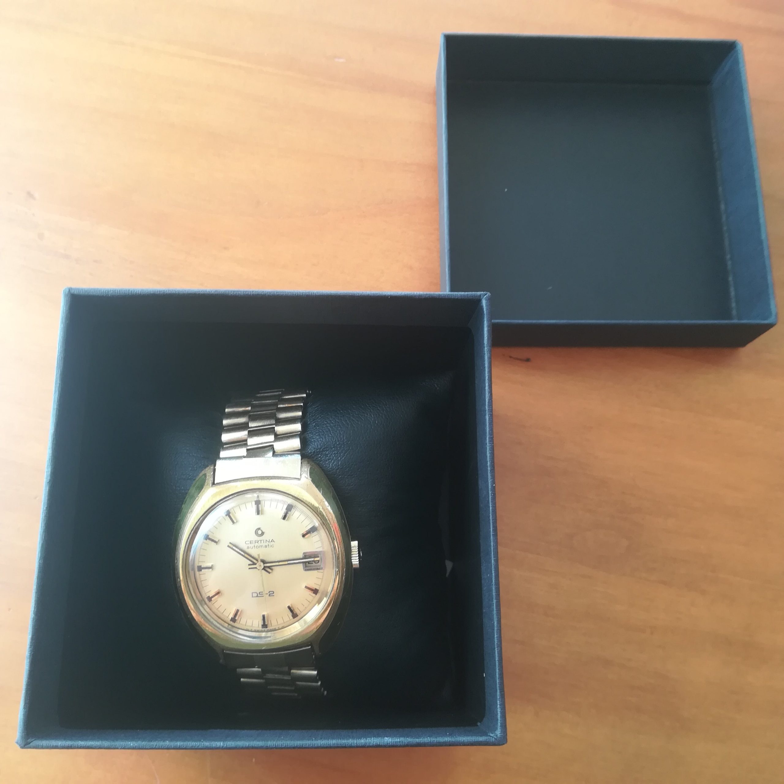 CERTINA DS-2 vintage automatic watch, with in-house 25-651 movement, Swiss made in 1970, case of 38.5 mm excluding the crown, automatic (self-winding with the user’s movements) and hand-wound (mechanical, no battery!) with date indication, working fine and serviced.