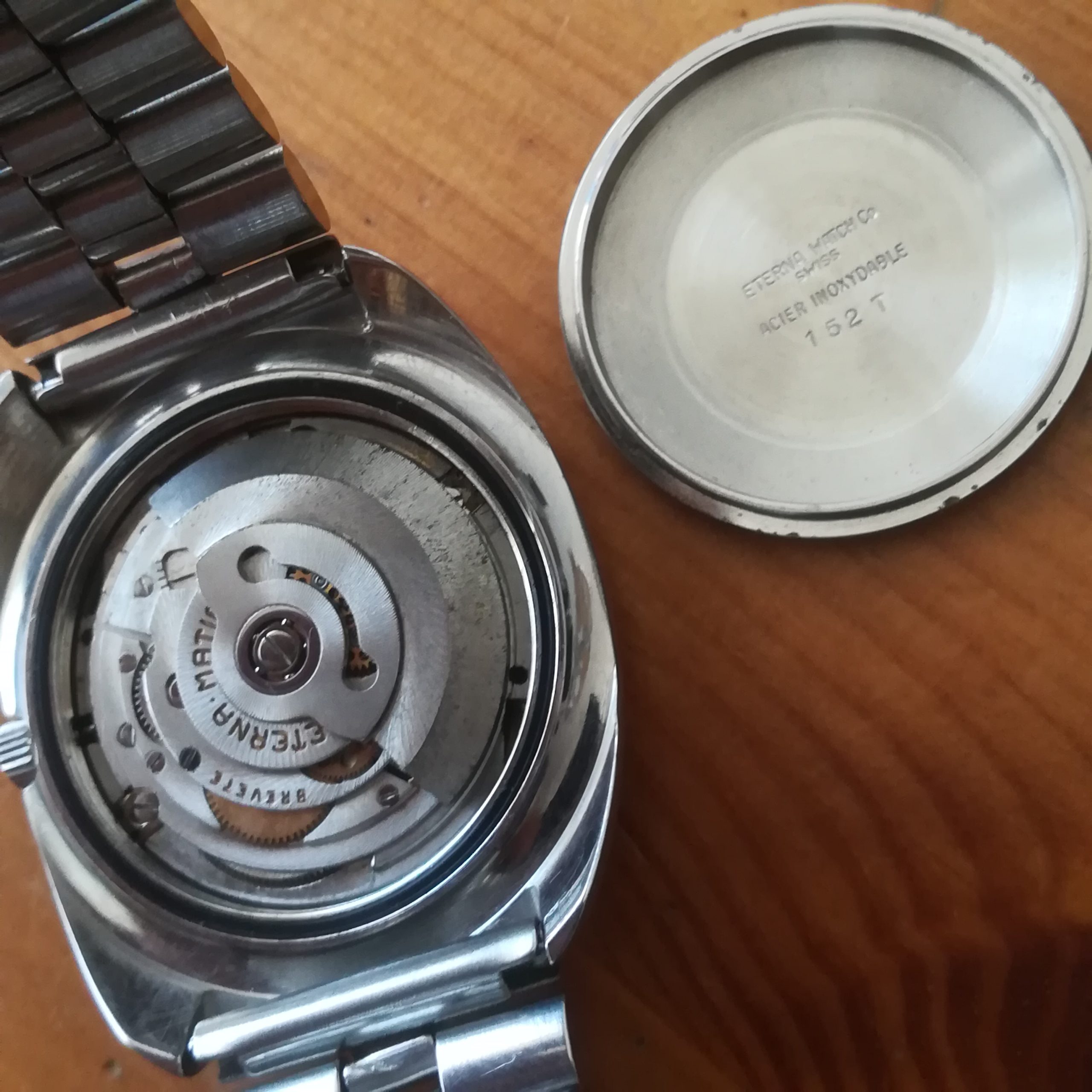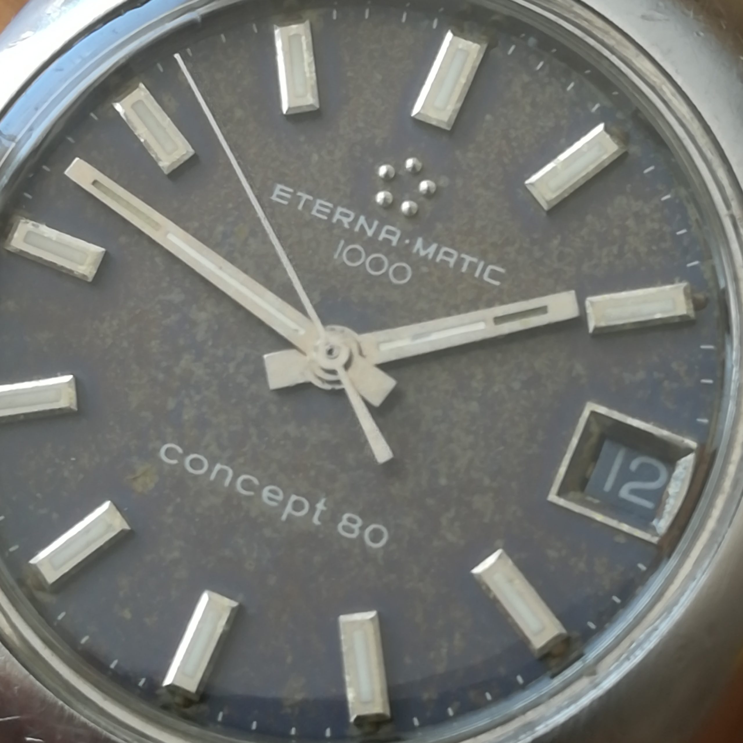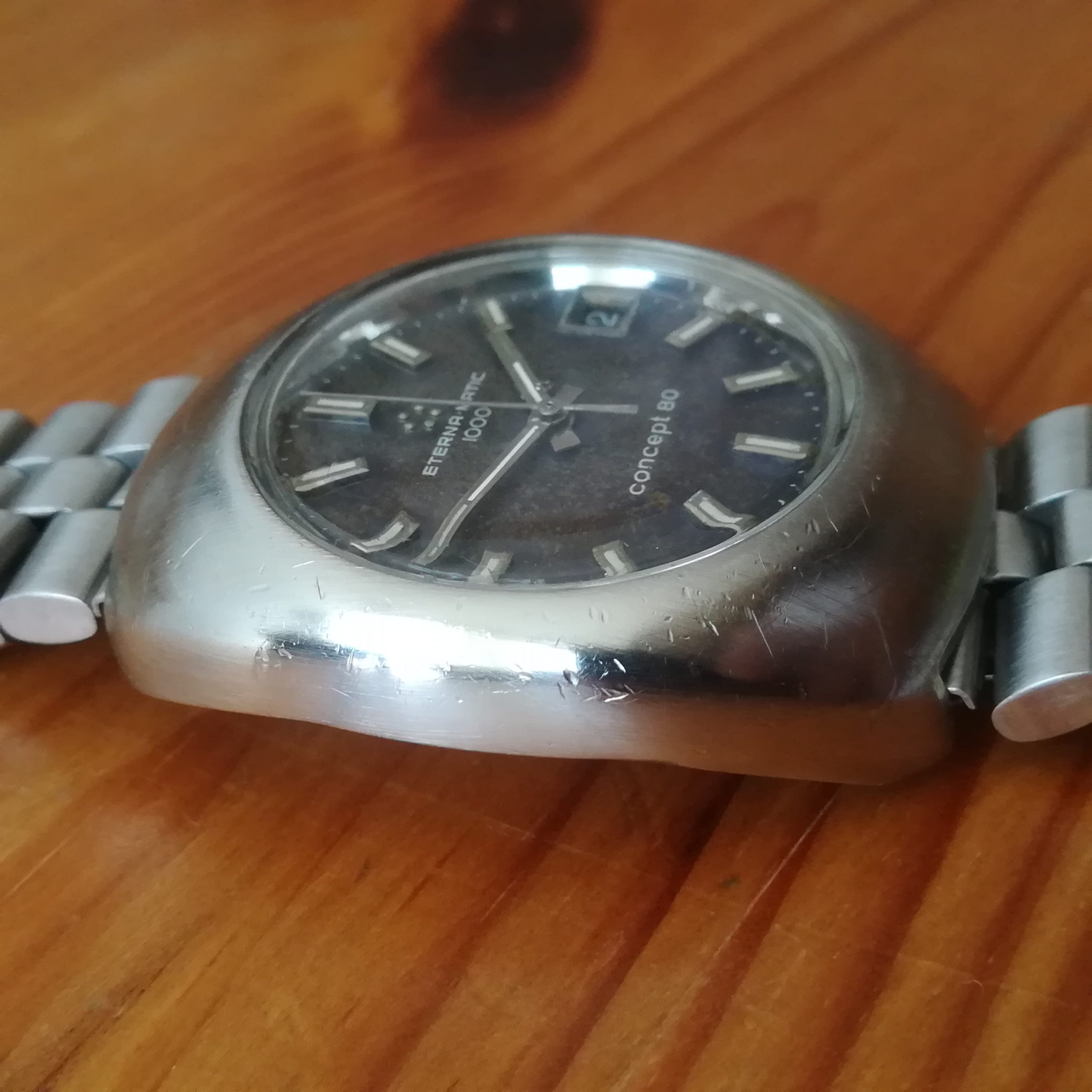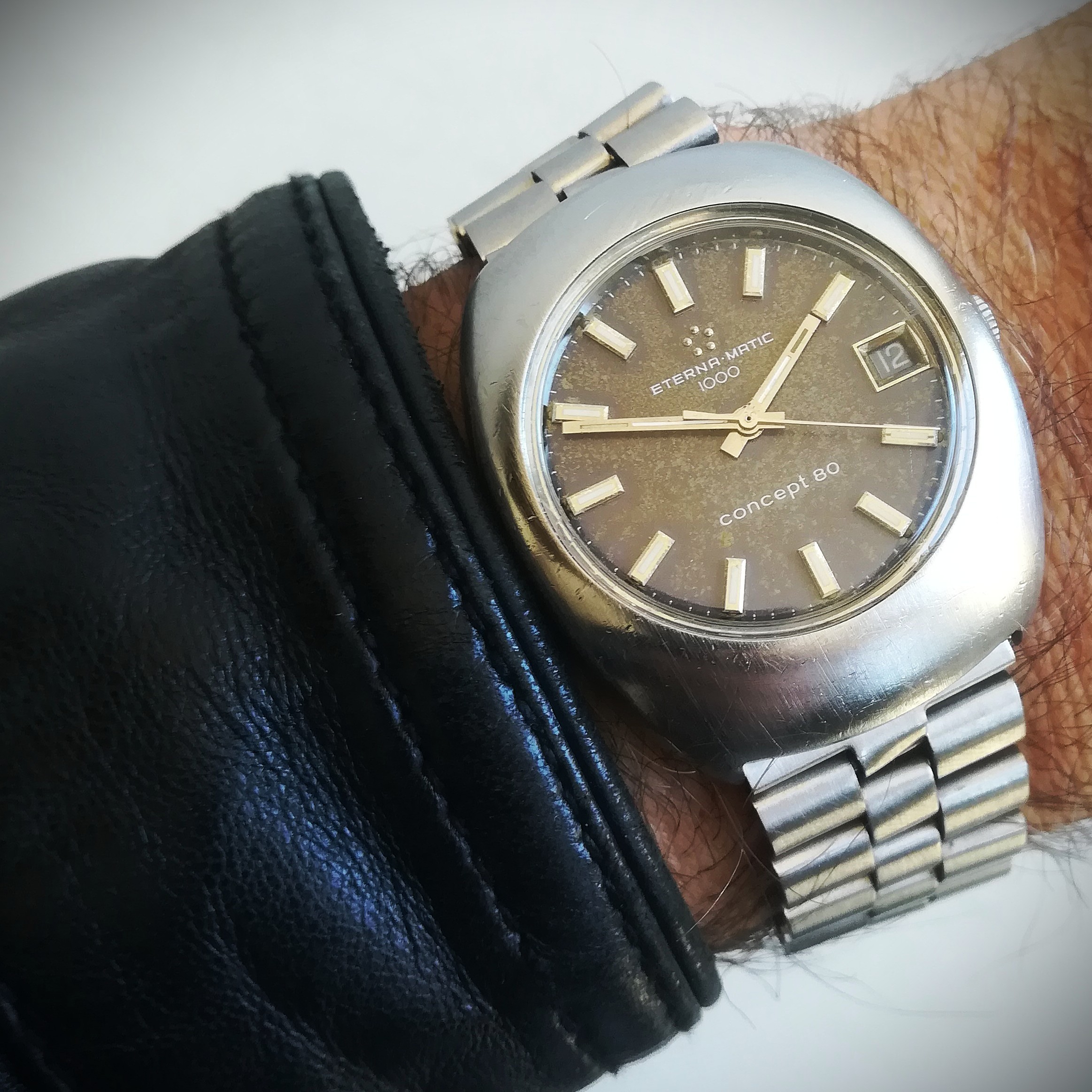 Eterna-Matic 1000 Concept 80 automatic vintage watch, Swiss Made in 1970 (according to its serial number) with in-house 1488K movement with date indication, case of 36 mm excluding the crown, automatic (self-winding with the user’s movements) and hand-wound (mechanical, no battery!), working fine and serviced.