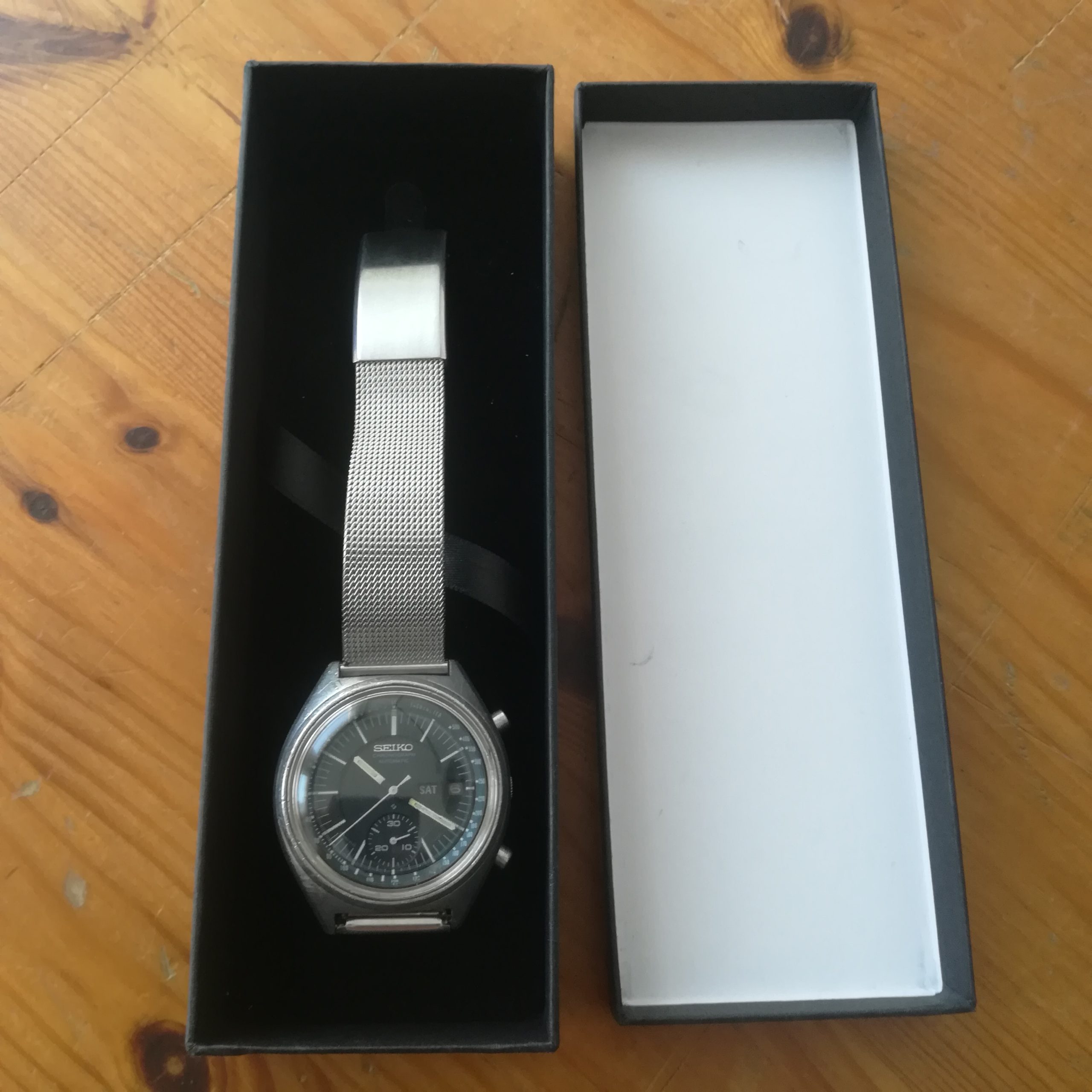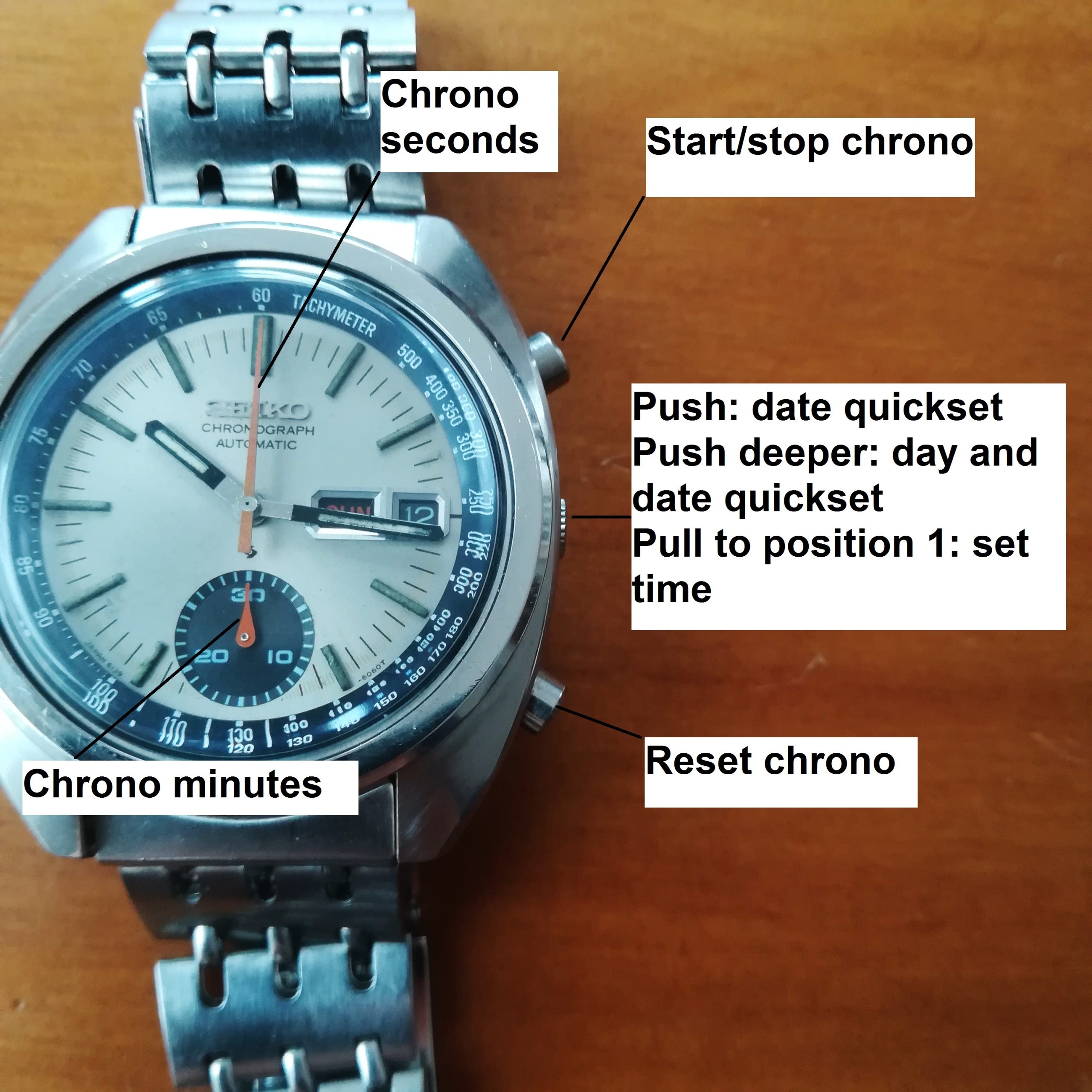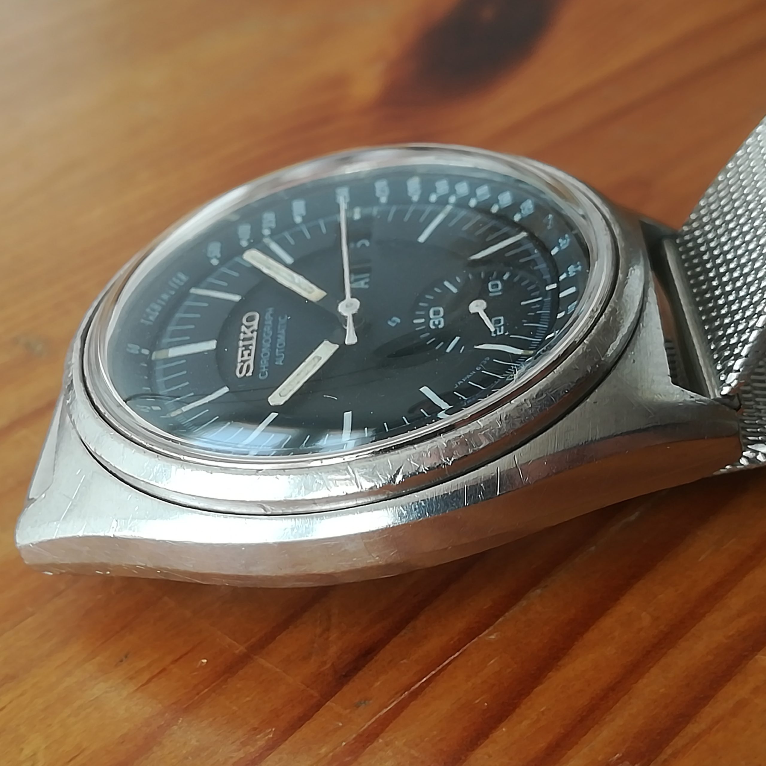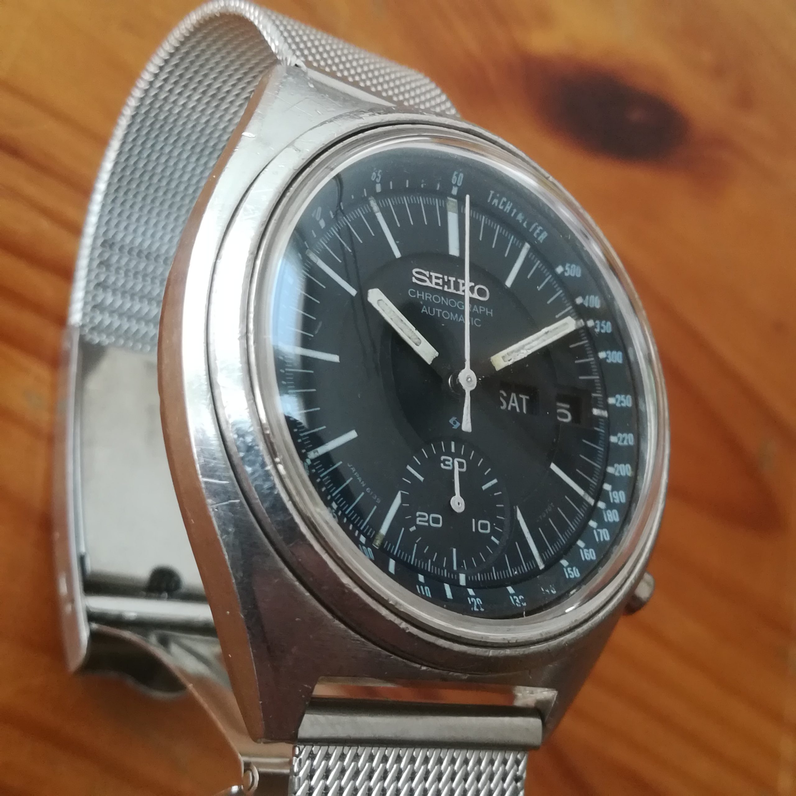 SEIKO automatic vintage watch, ref. 6139-7070 (known as “Baby Jumbo”) with in-house 6139B movement with EN/ES day and date feature and quickset, Japan made in 1974 (according to its serial number), case of 39.5 mm excluding the crown, automatic (self-winding with the user’s movement, mechanical, no battery!), working fine and serviced. All chrono functions work properly.