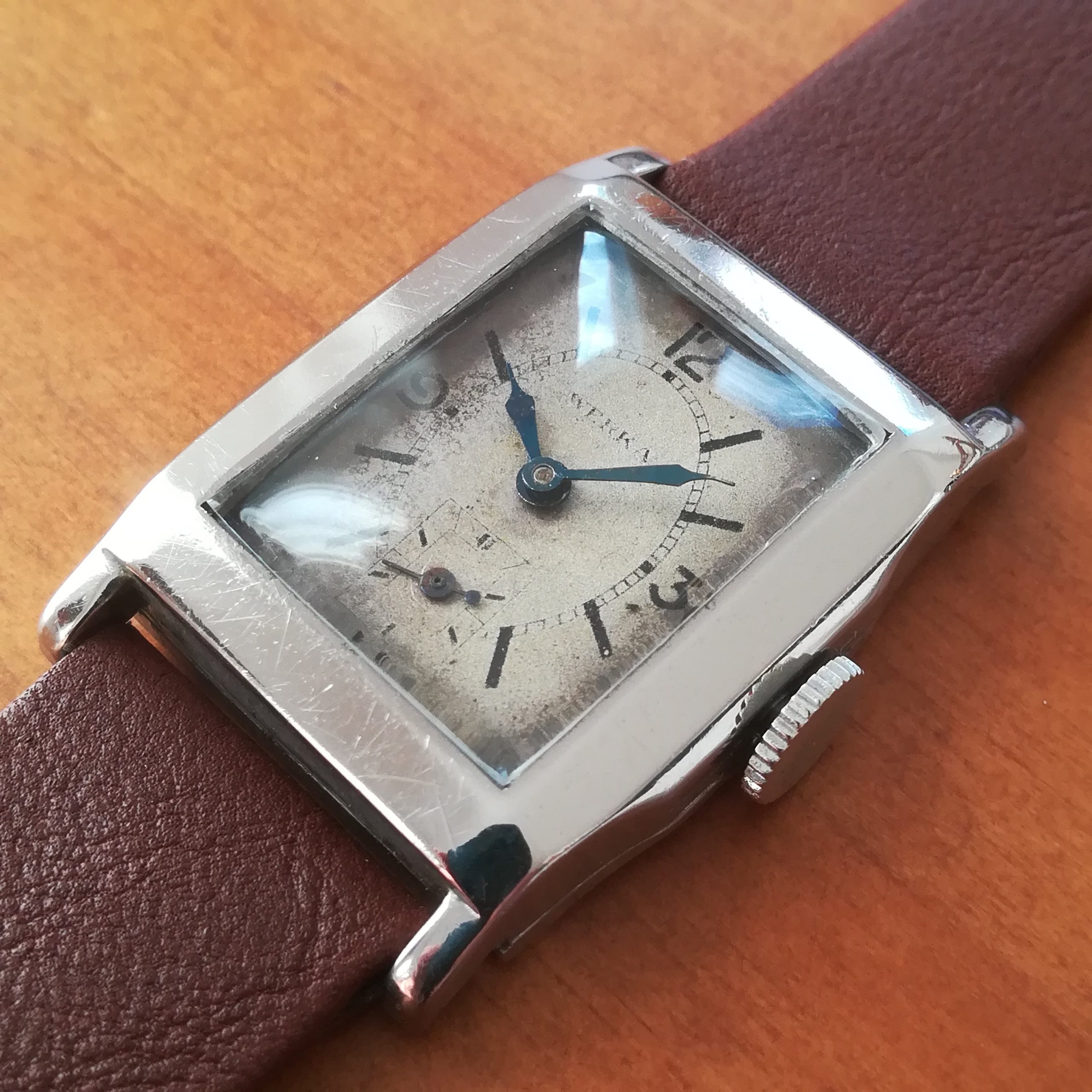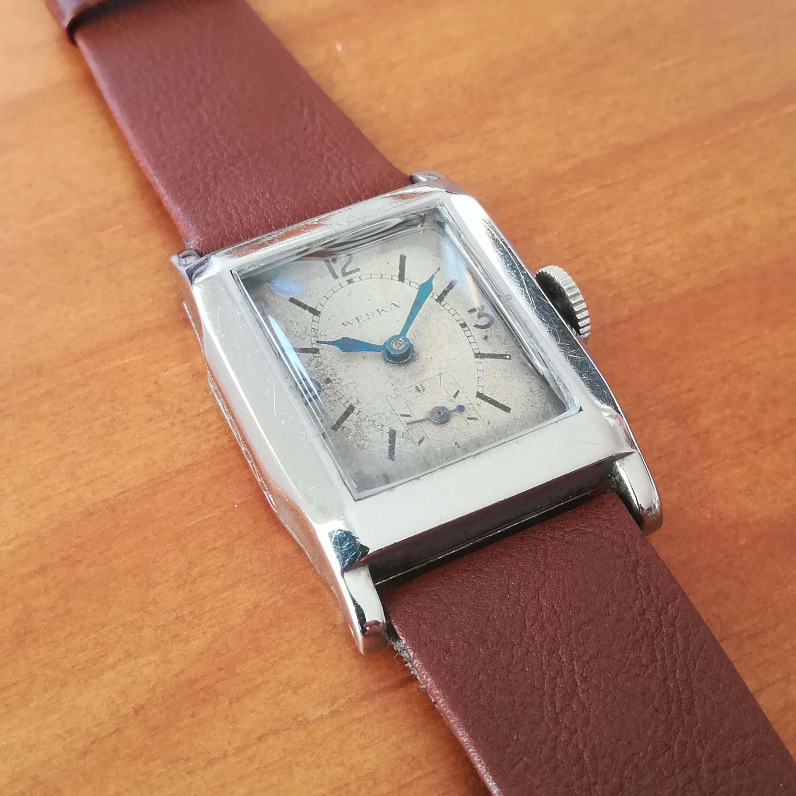 Art Deco WERKA vintage watch, with manual 10.5”’ movement, Swiss made in the 30s, case of 25.5 x 29 mm excluding the crown and lugs, hand-wound (mechanical, no battery!), working fine and serviced.
