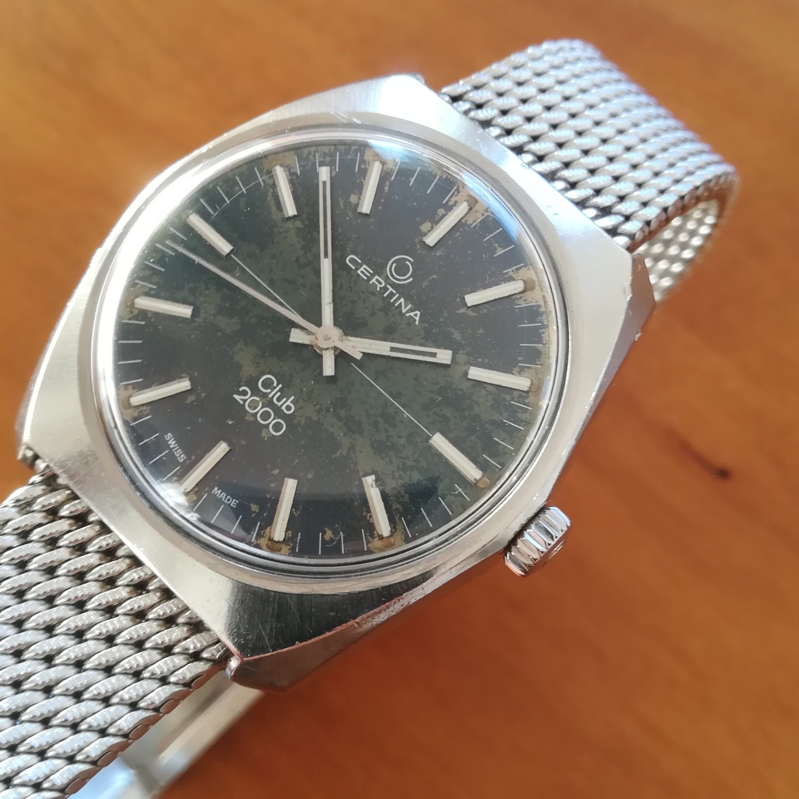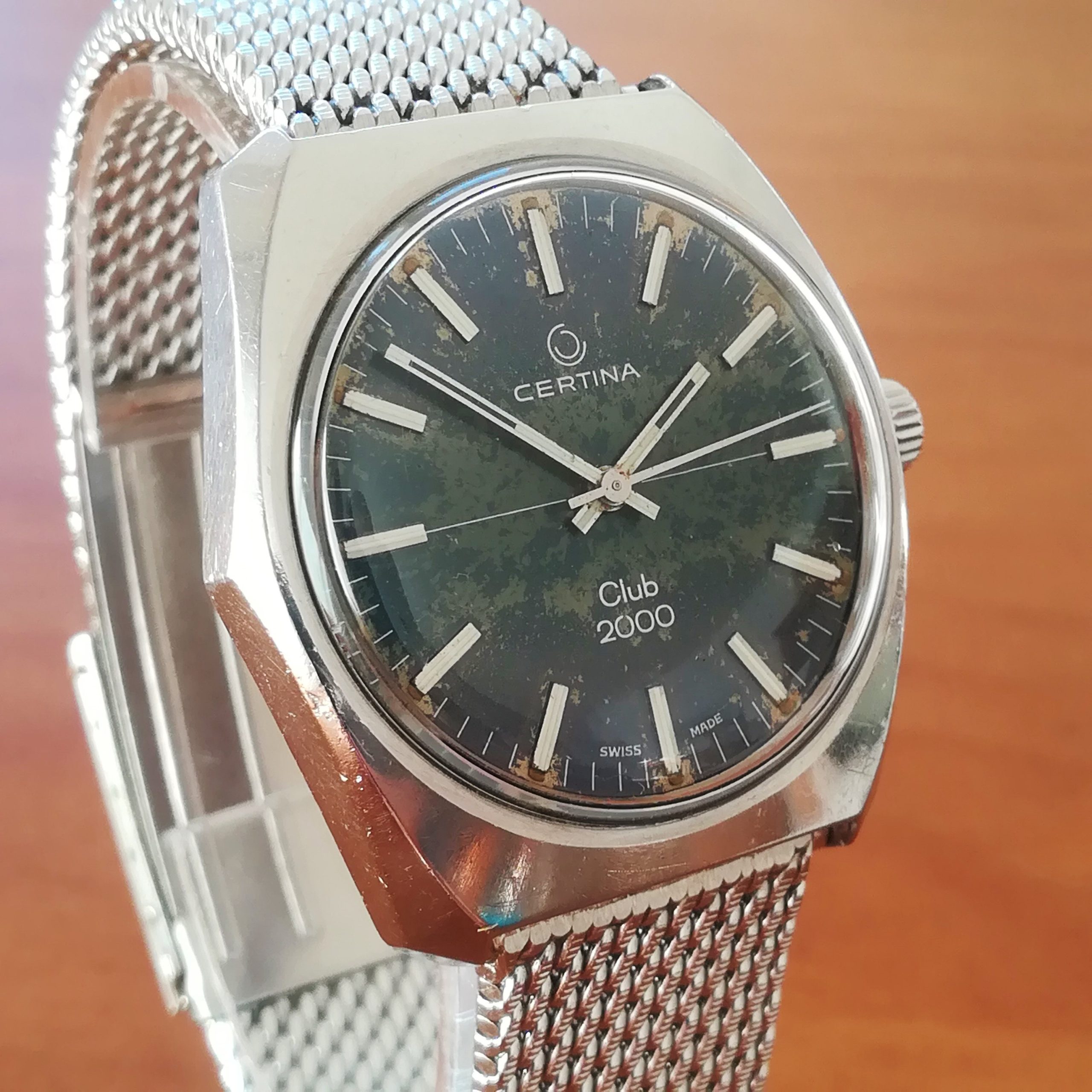 CERTINA Club 2000 vintage watch, Swiss Made ca. 1974 with in-house 25-66 movement, 35 mm across excluding the crown, hand-wound (mechanical, no battery!), working fine and serviced.