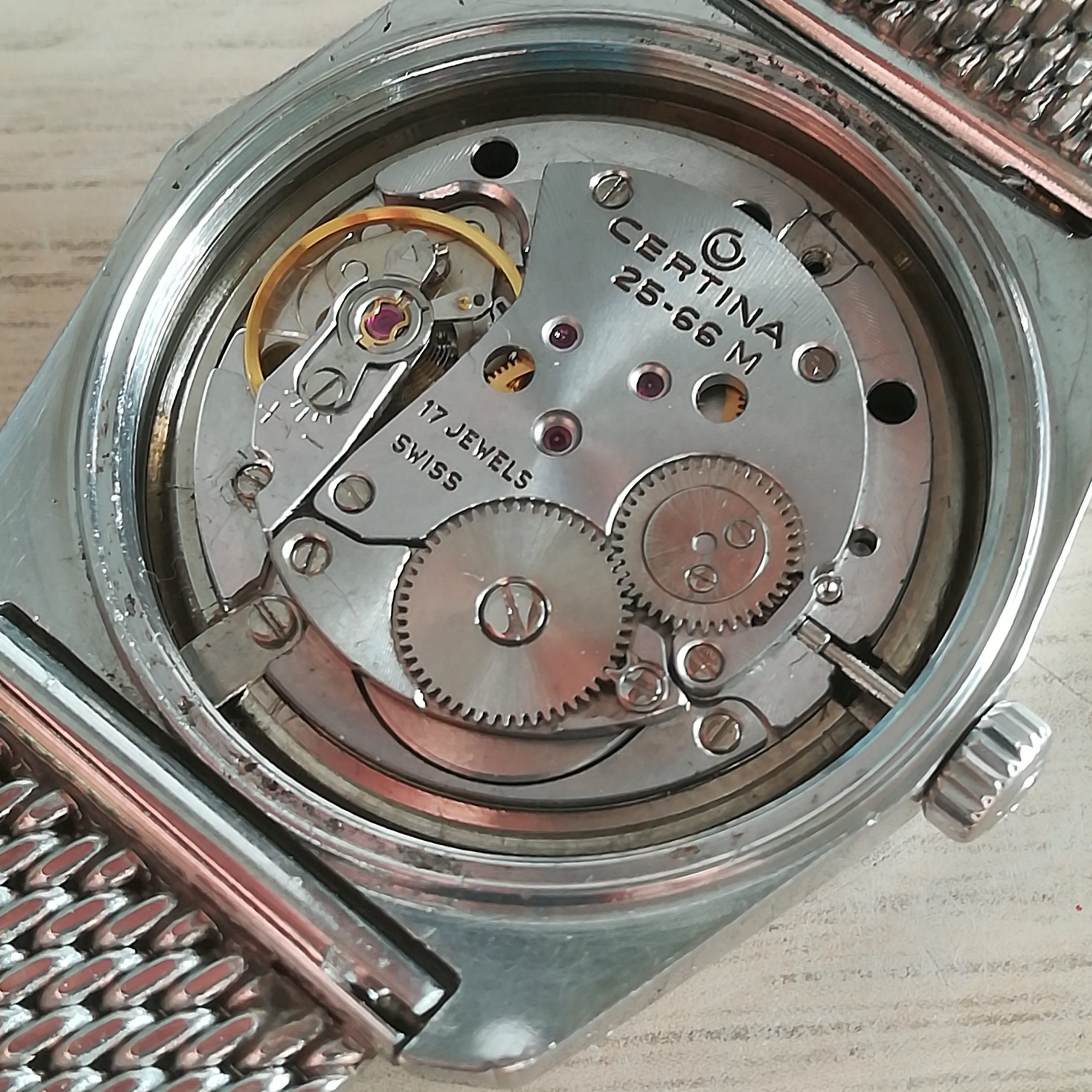 25-66 is one of the best manual wind movements ever manufactured by Certina. With 17 jewels, reliable and accurate, you can expect a power reserve of around 40 hours. As with any other vintage mechanical watch, exact accuracy cannot be guaranteed, as it depends on many factors, including your kind of use. It has been regulated in different positions to minimize the average time gain/loss. The watch has been serviced in June 2025.