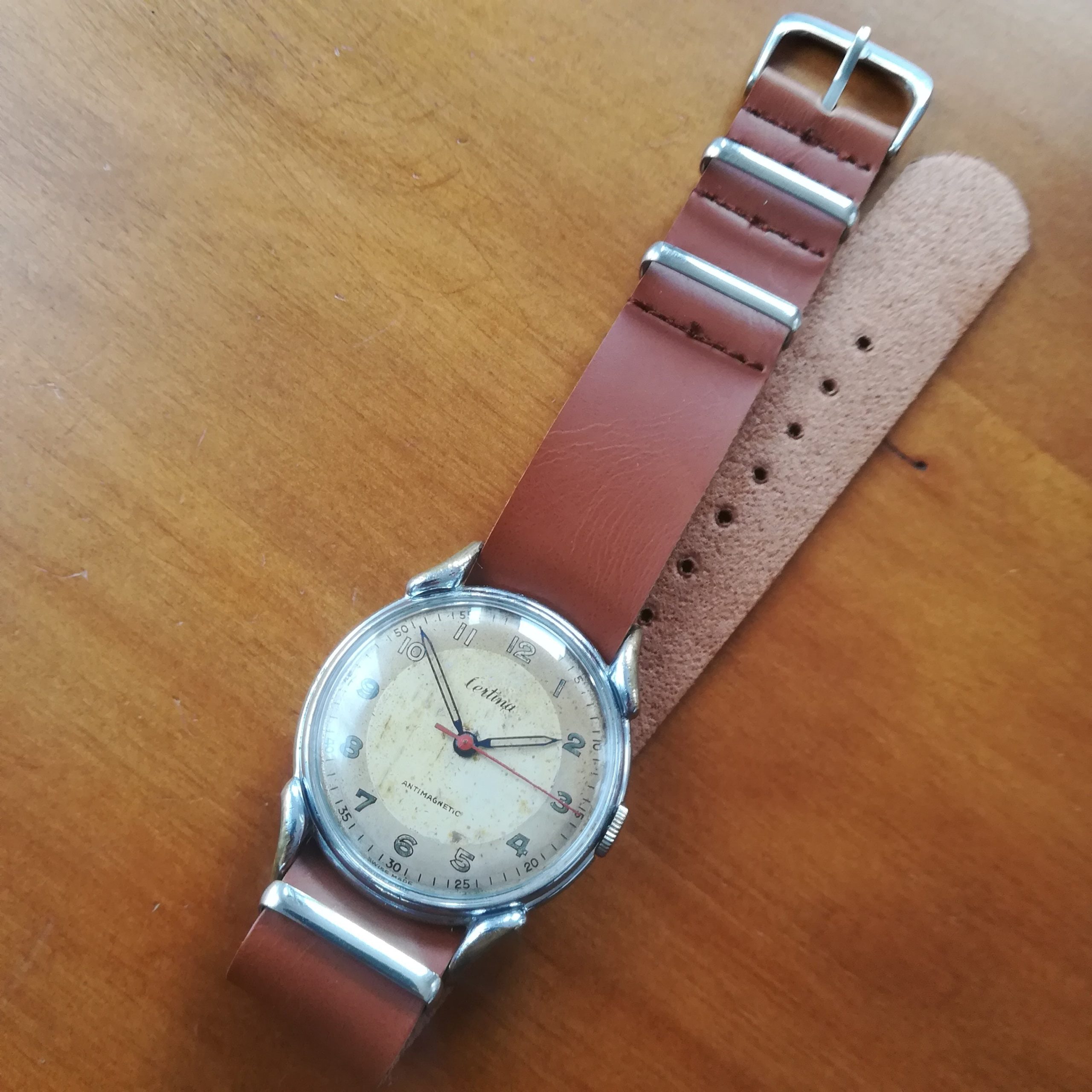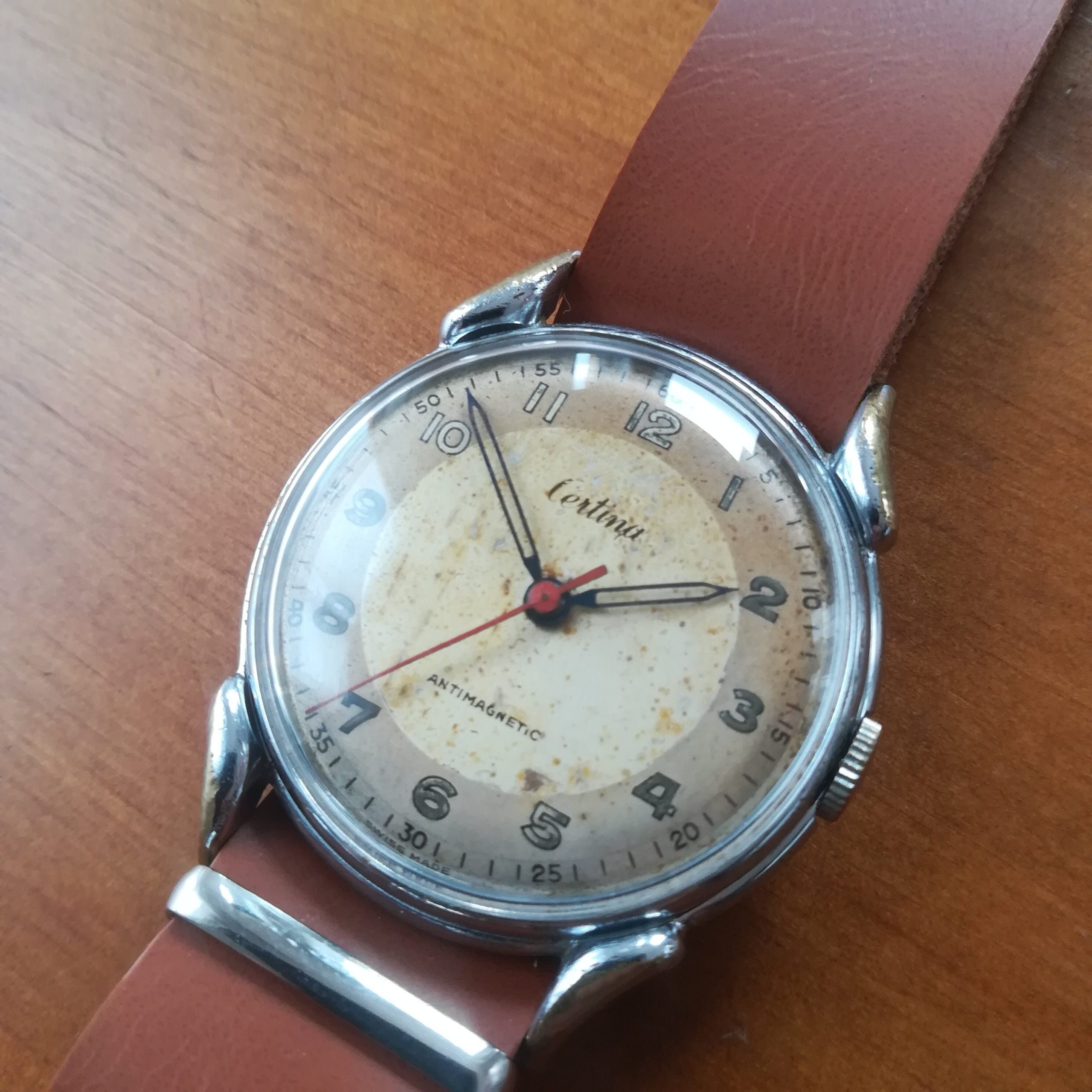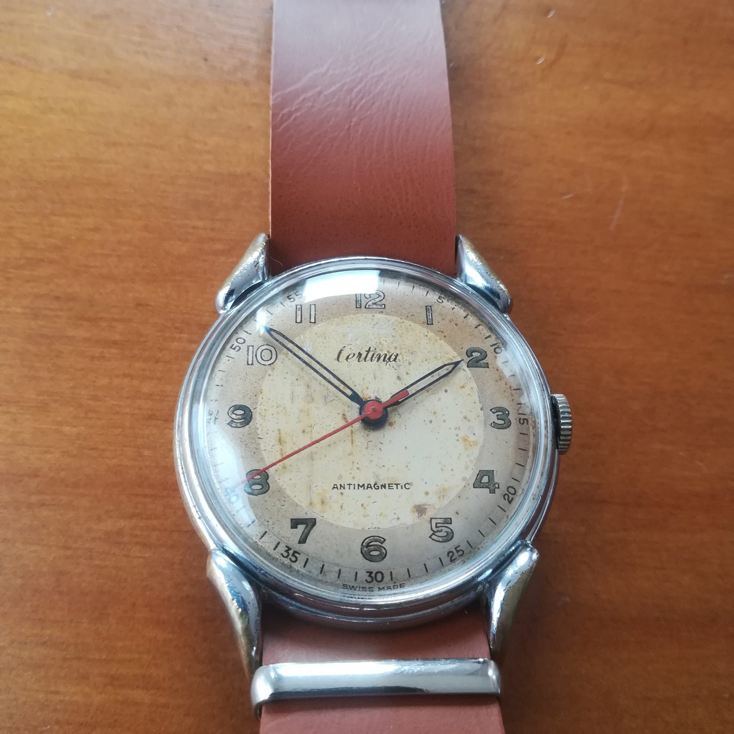 CERTINA military vintage watch, Swiss made in 1946 (according to its serial number), with in-house KF324 movement, 34.5 mm across excluding the crown, bitone dial, hand-wound (mechanical, no battery!), working fine and serviced. Ref. 8662 2.