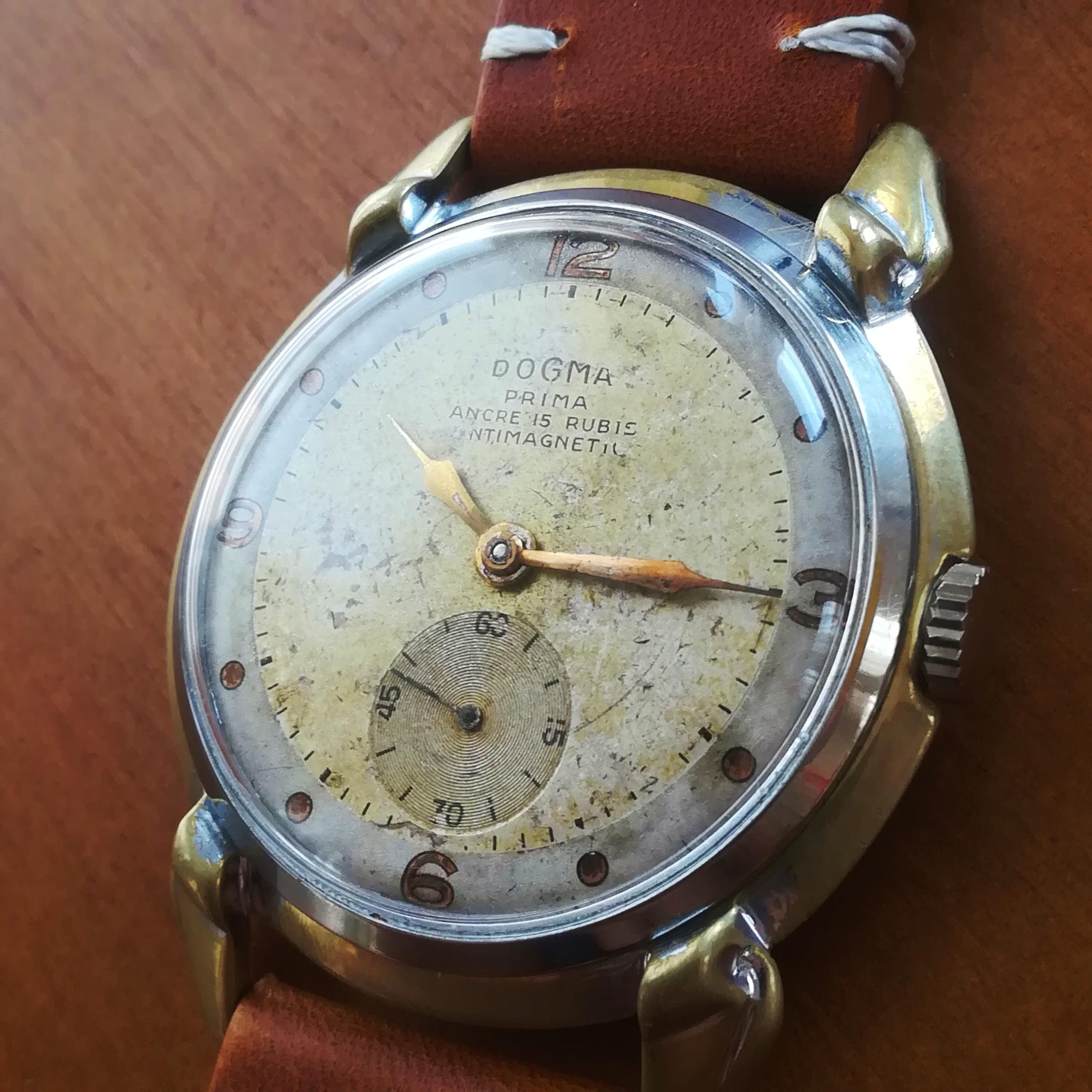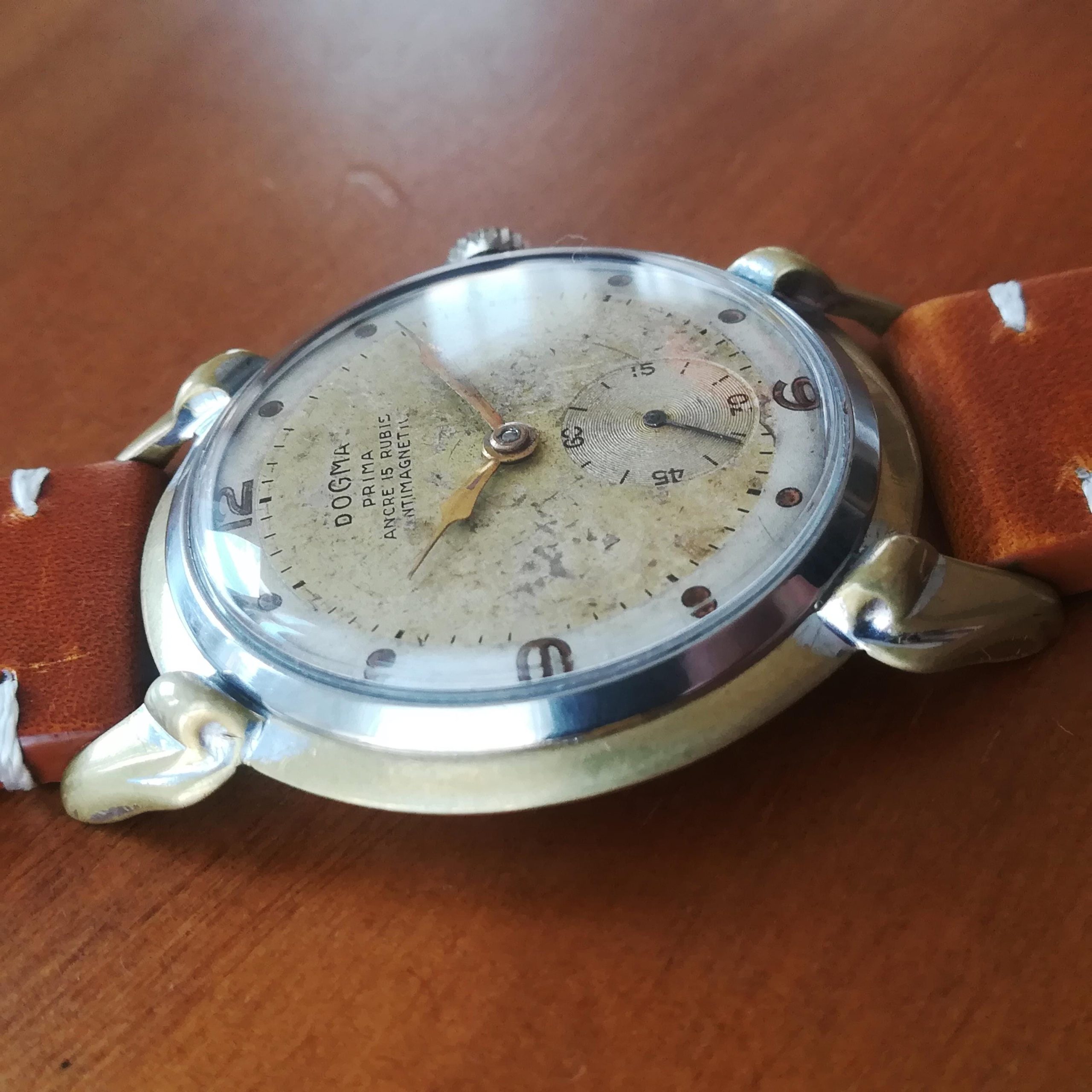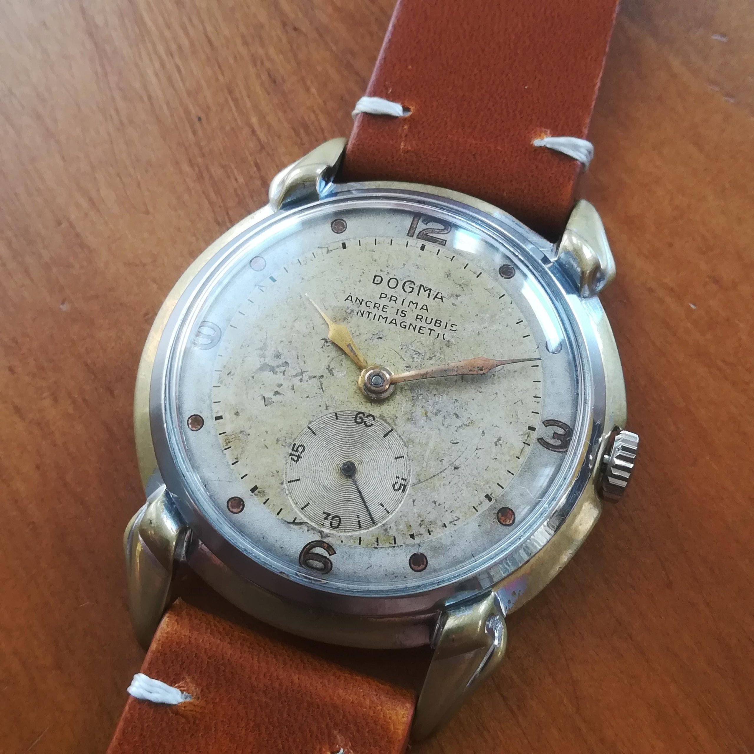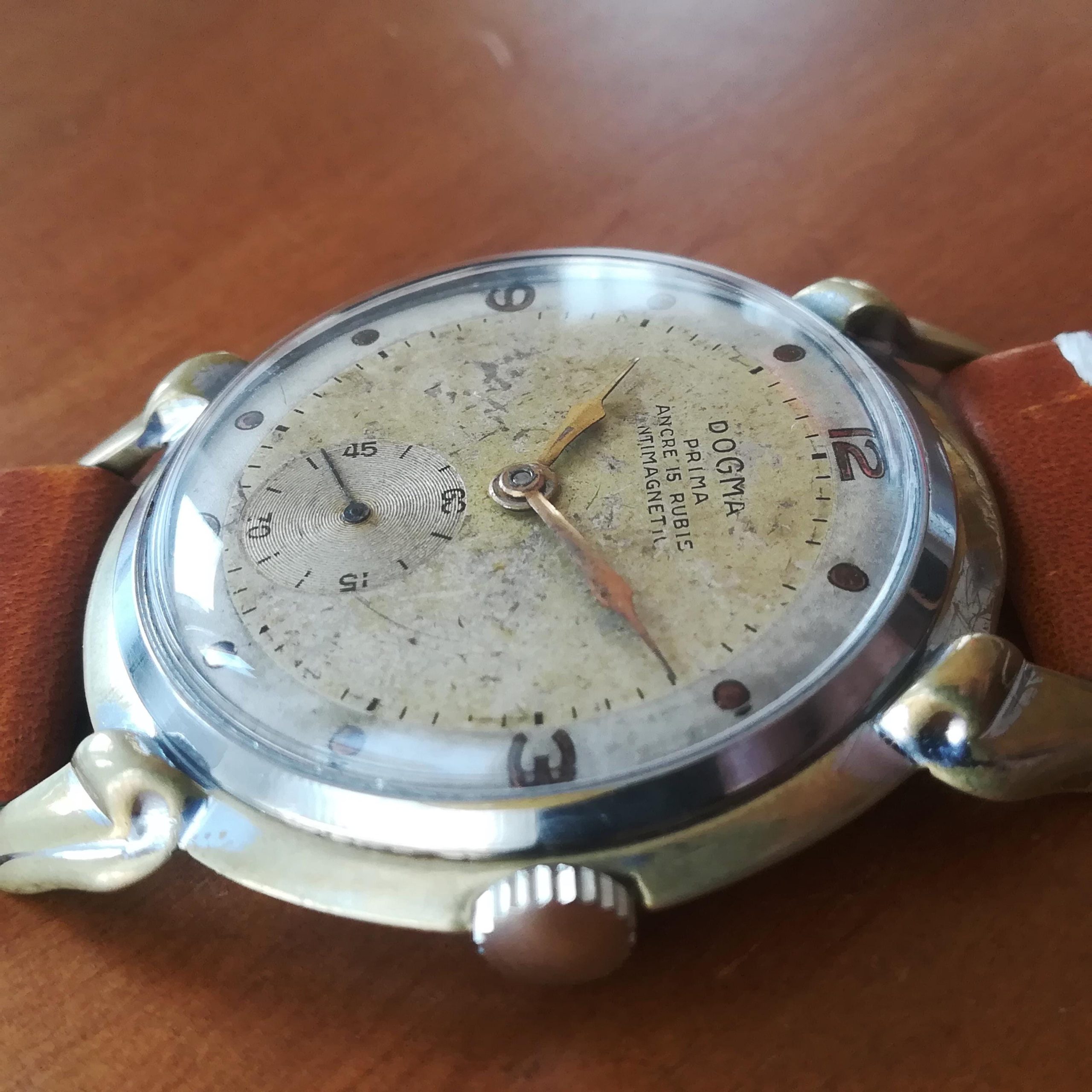 DOGMA vintage watch, with FHF 26 movement, Swiss made in the 50s, 39 mm across excluding the crown, hand-wound (mechanical, no battery!), working fine and serviced.