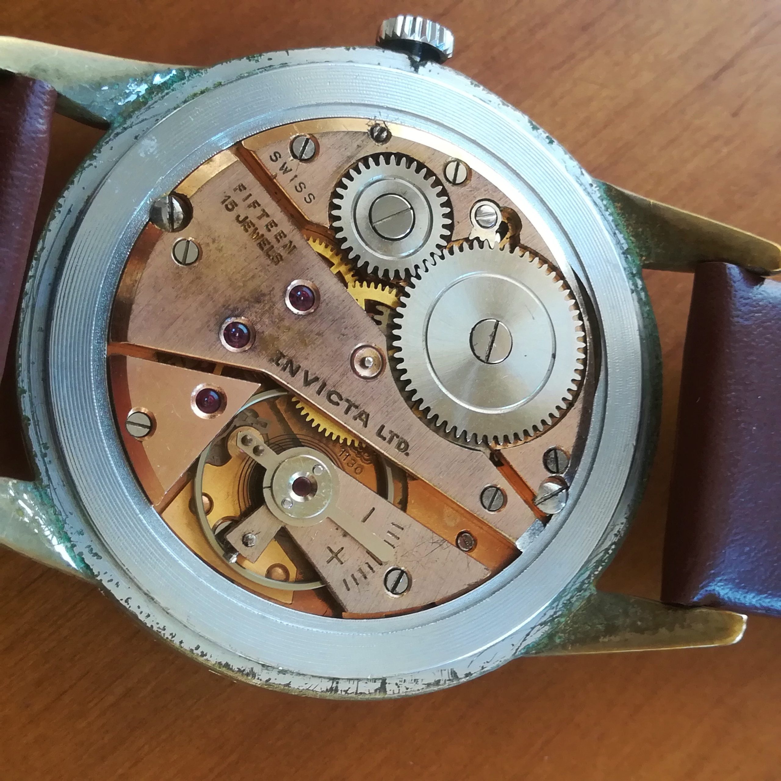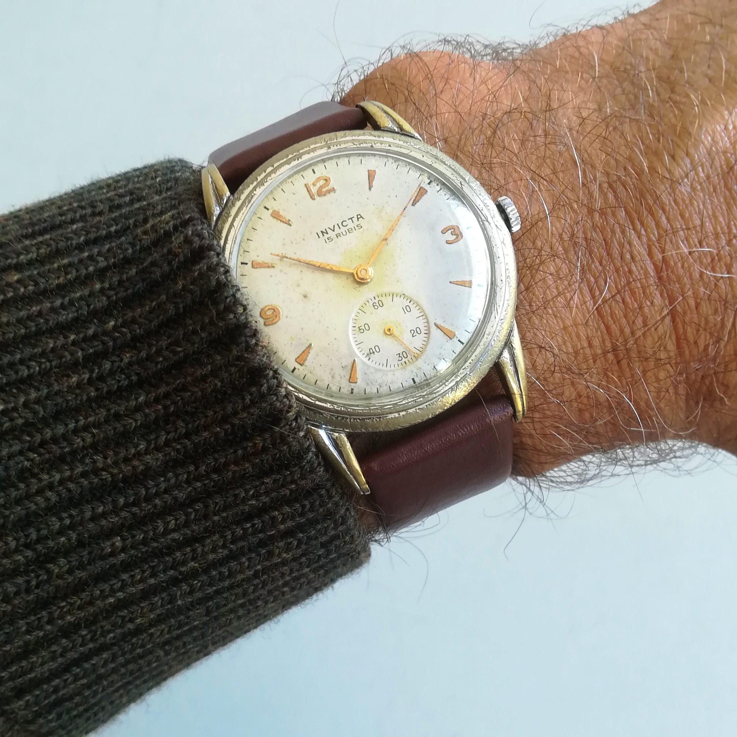INVICTA vintage watch, with AS 1130, Swiss made in the 50s, 38 mm across excluding the crown, hand-wound (mechanical, no battery!), working fine and serviced.