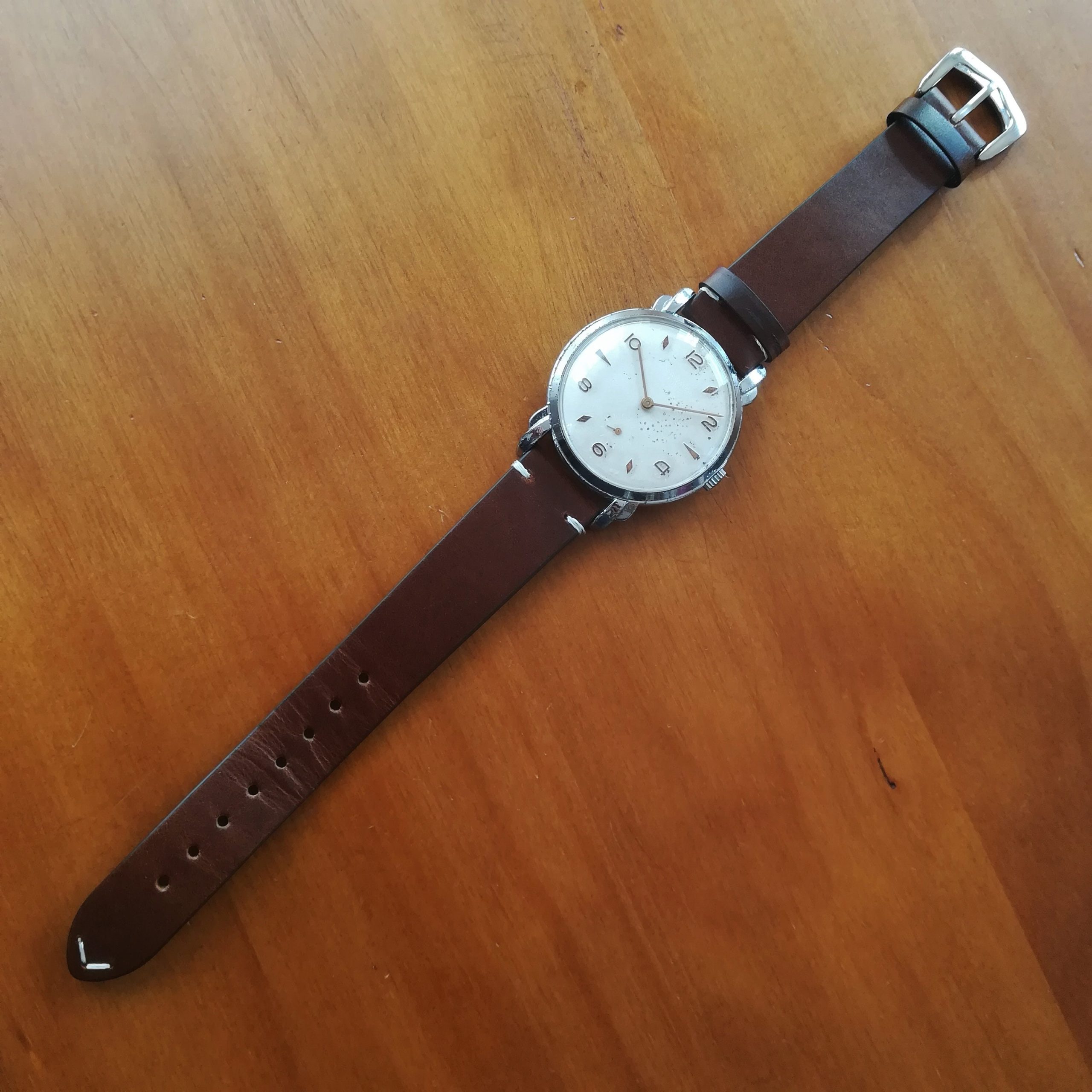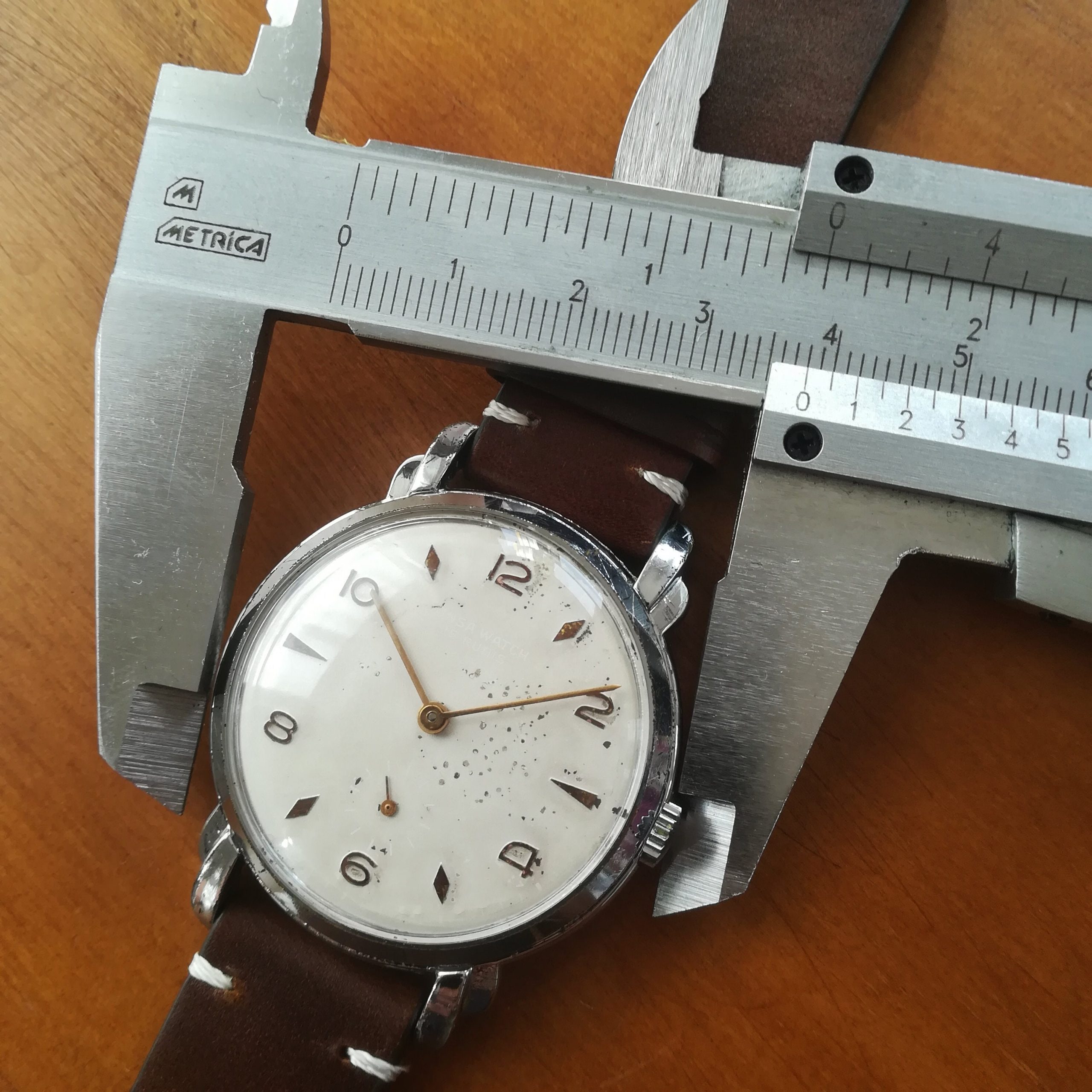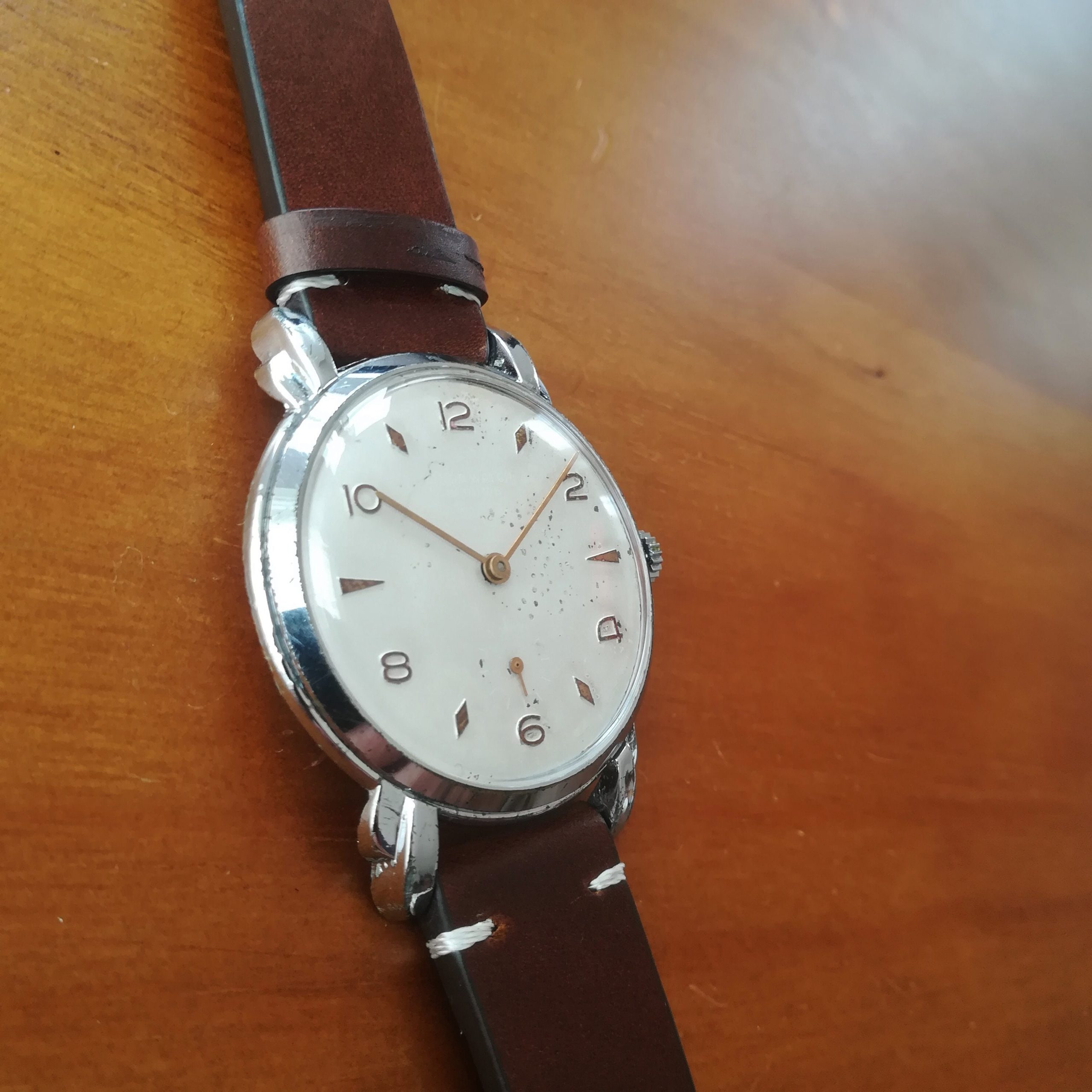 JNSA vintage watch, with AS 1130 movement, Swiss made in the 50s, 38 mm across excluding the crown, hand-wound (mechanical, no battery!), working fine and serviced.