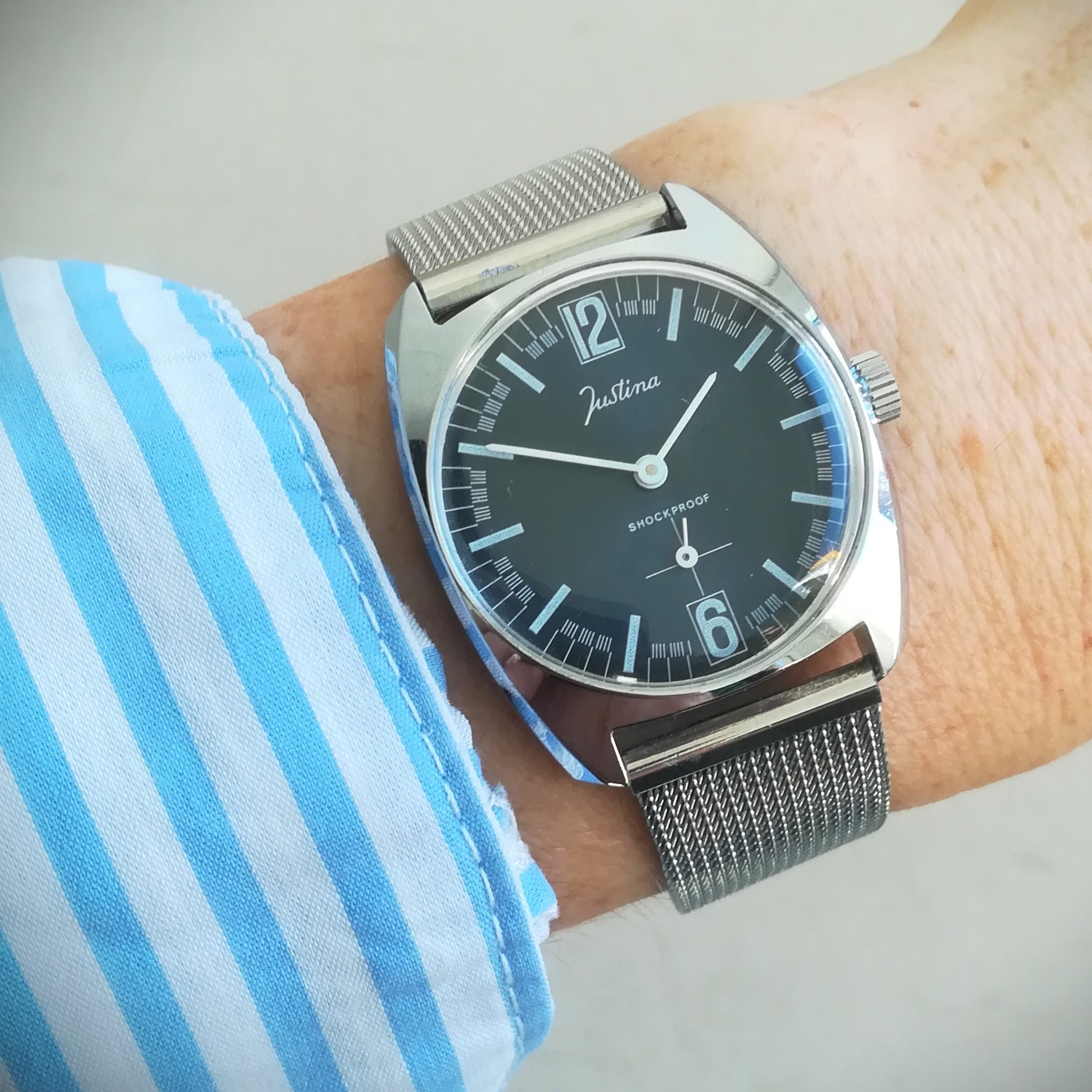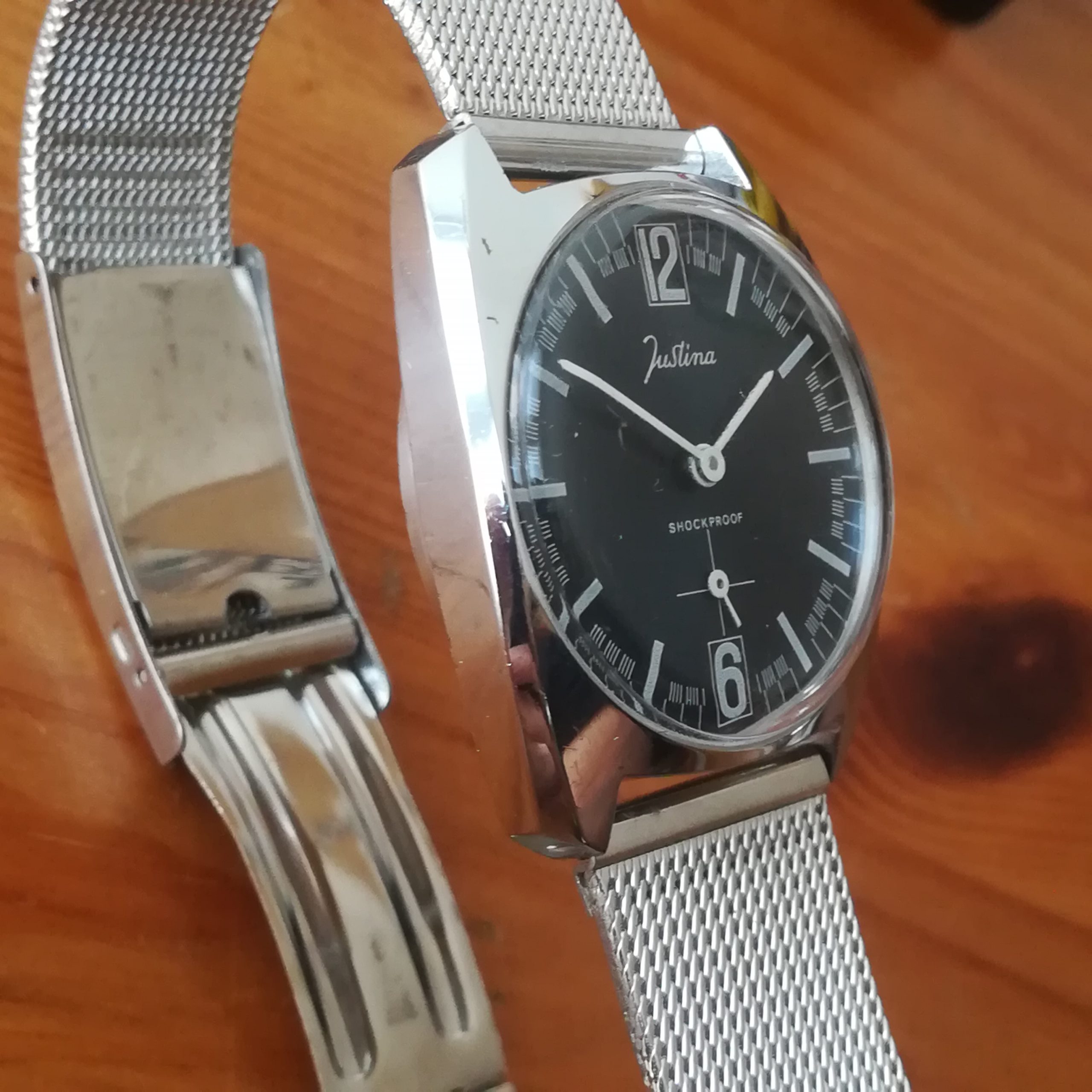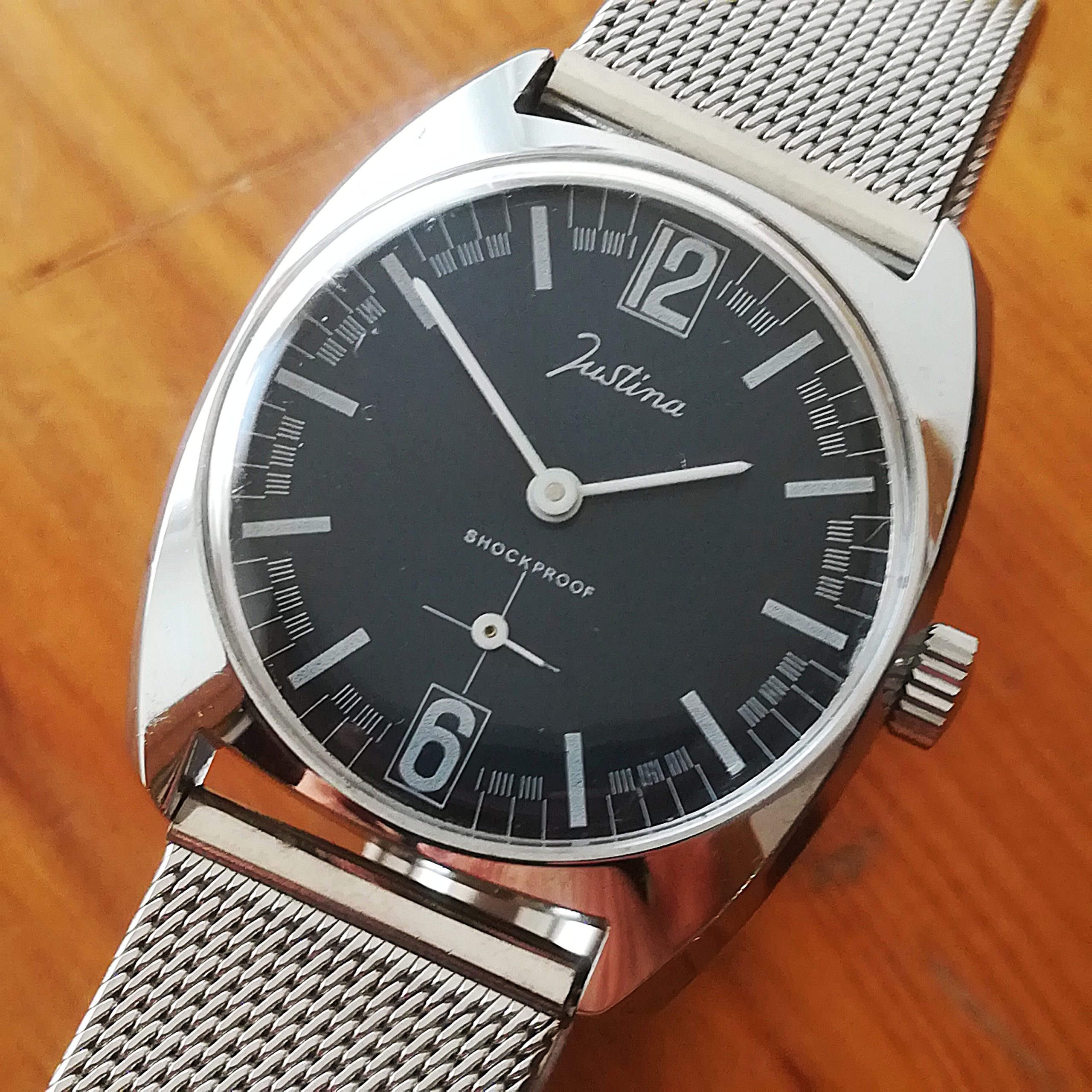 JUSTINA ladies vintage watch, with FE 233-60 manual movement, Swiss made in the 1970s, case of 31.5 mm excluding the crown, hand-wound (mechanical, no battery!), working fine and serviced.