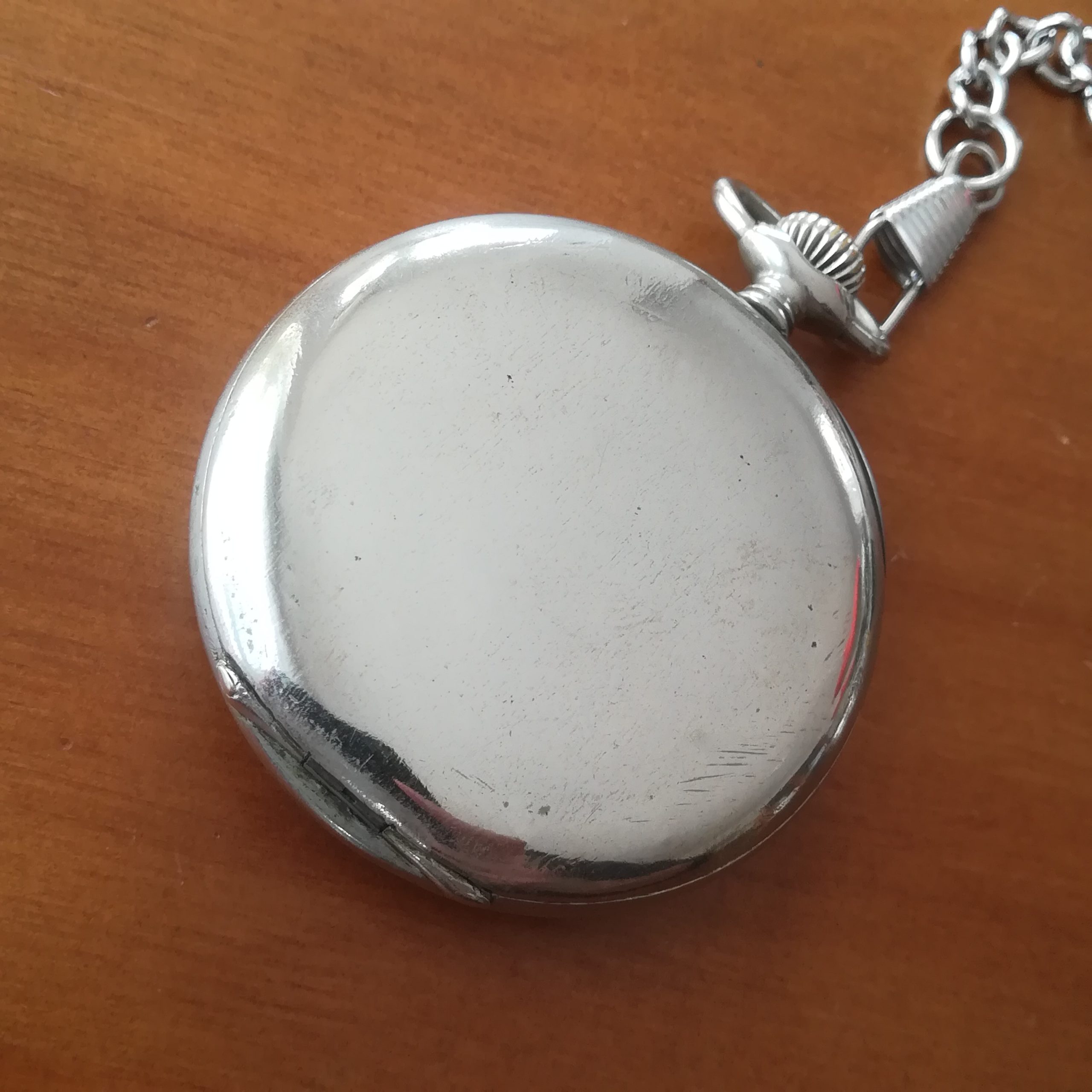 In this piece the case is metallic, with some scratches as can be seen in the photos. The enamel dial has a repairs at 10 – please refer to the pictures. The watch also features a new metallic chain. Water resistance has not been tested, therefore it must be treated as NON-waterproof.