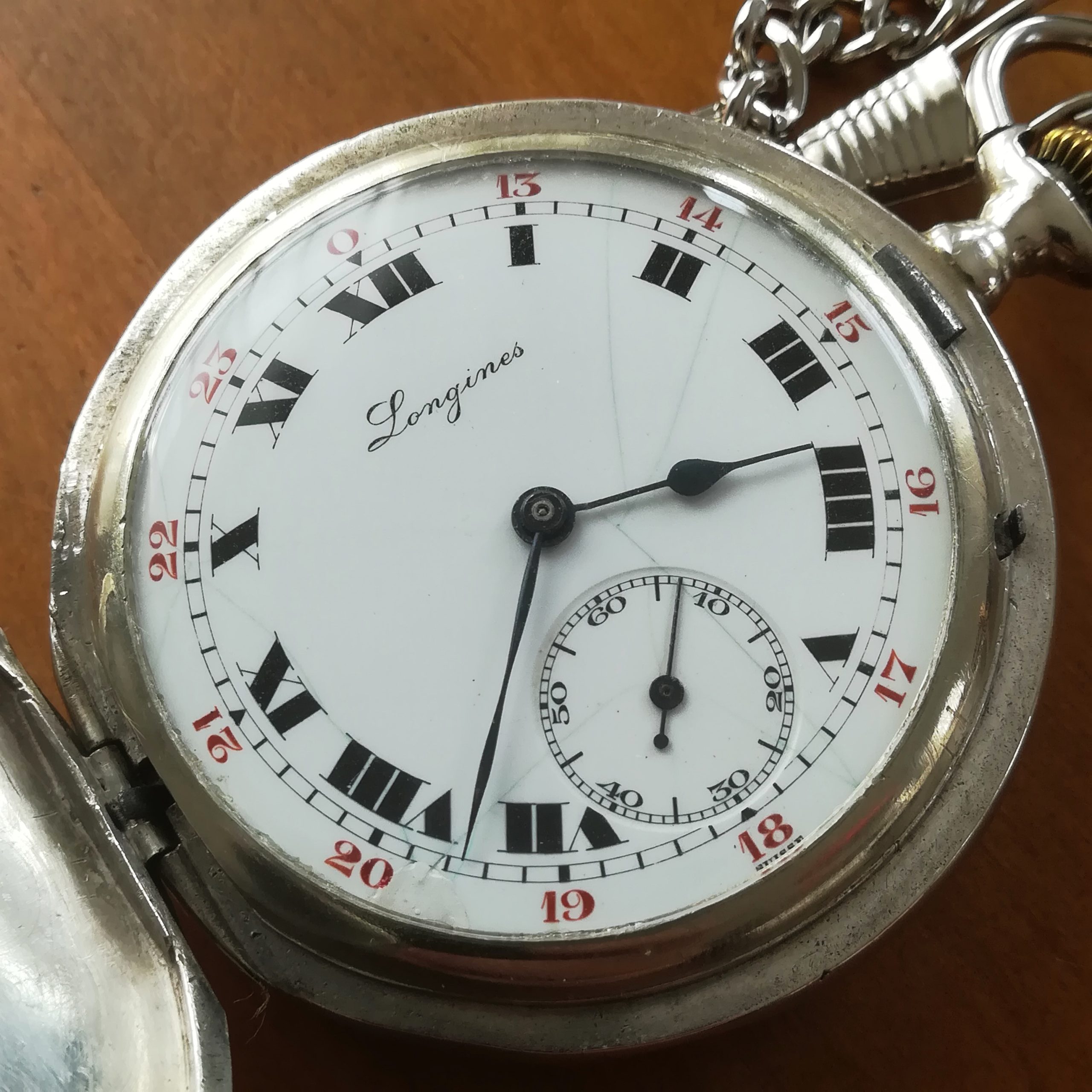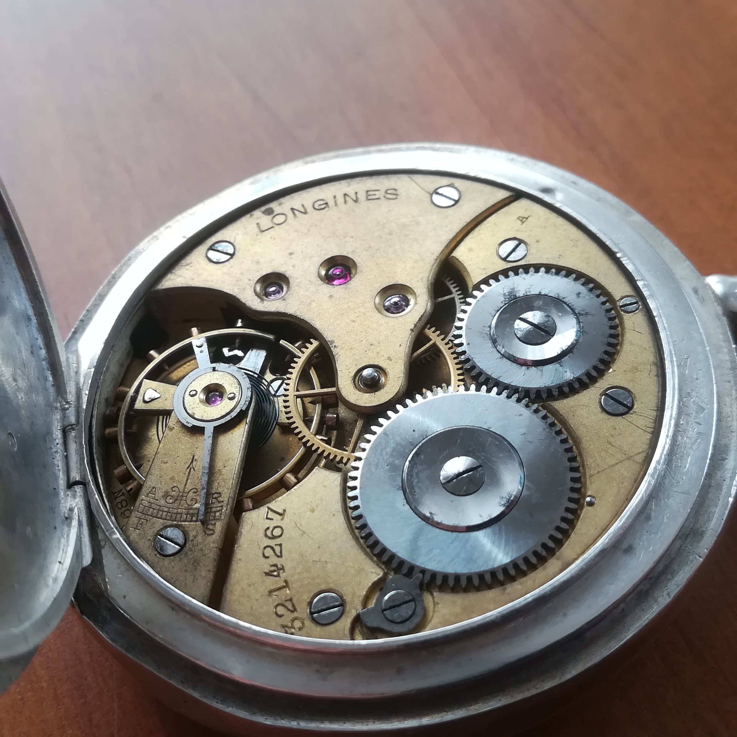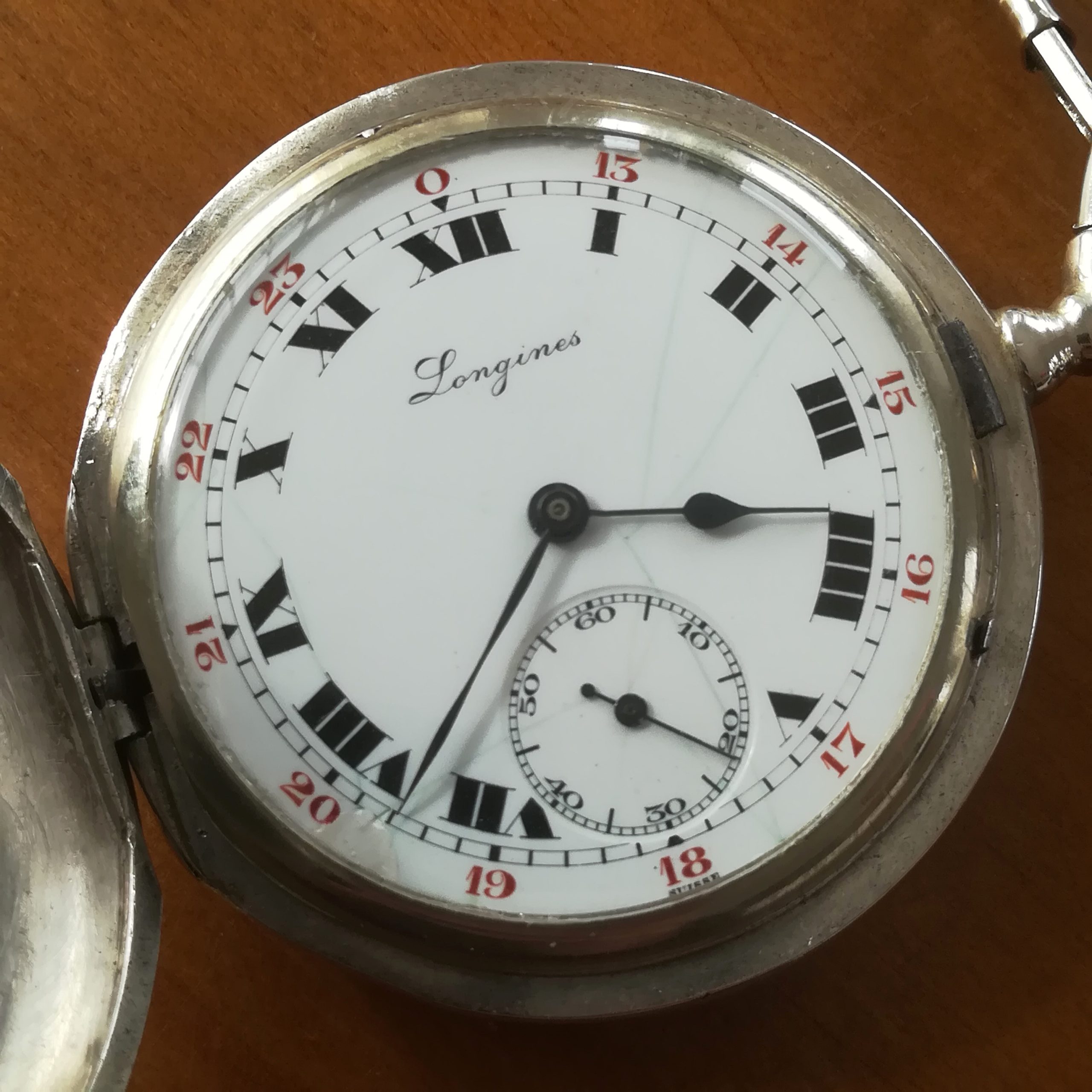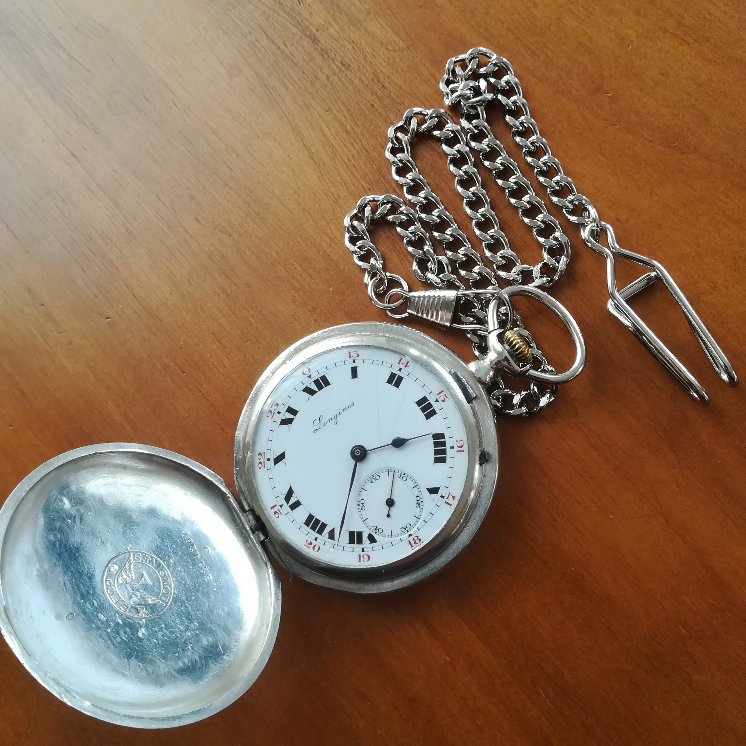 LONGINES vintage silver hunter pocket watch, with Longines 18.68N movement, Swiss made in 1915 (according to its serial number), case of 49 mm, hand-wound (mechanical, no battery!), working fine and serviced.