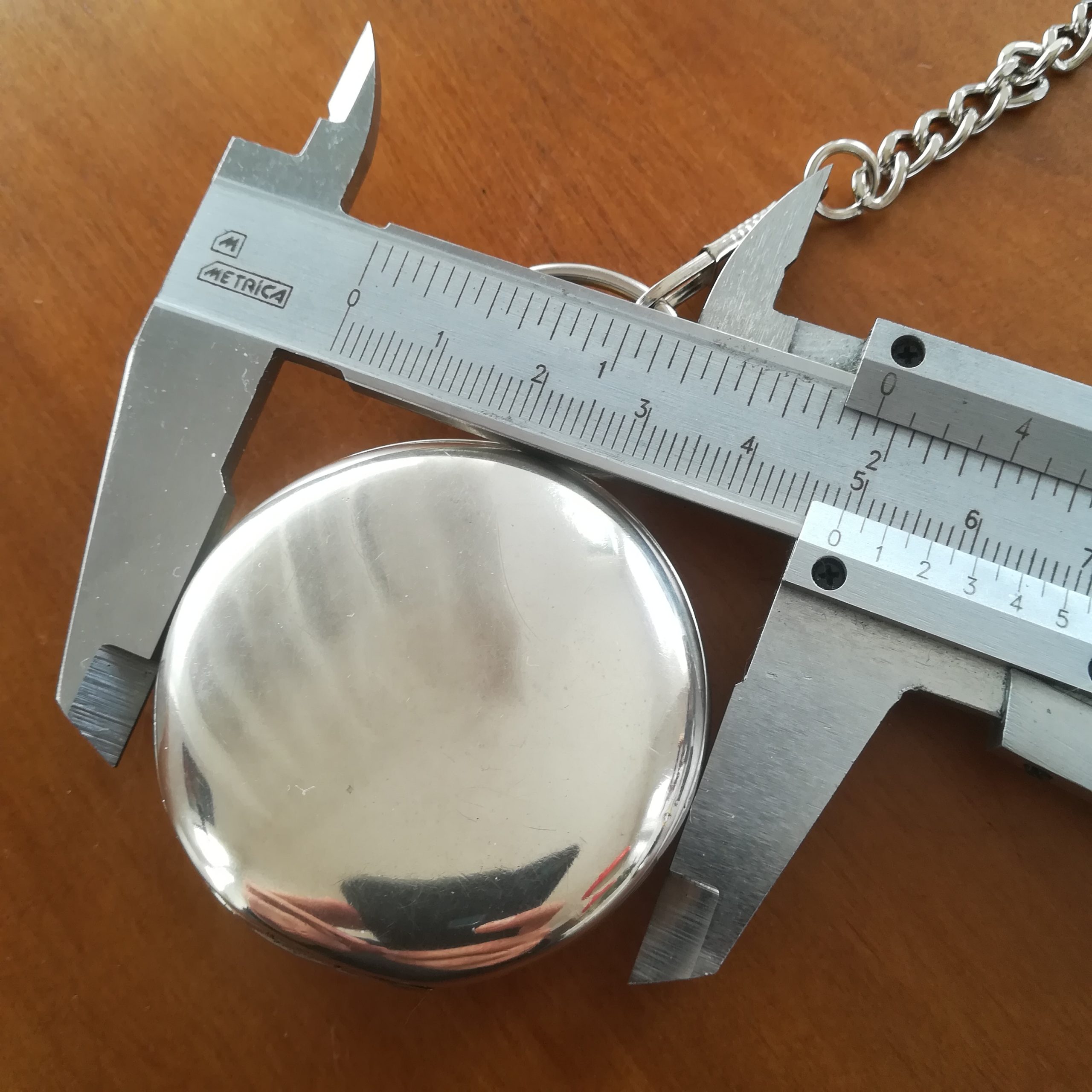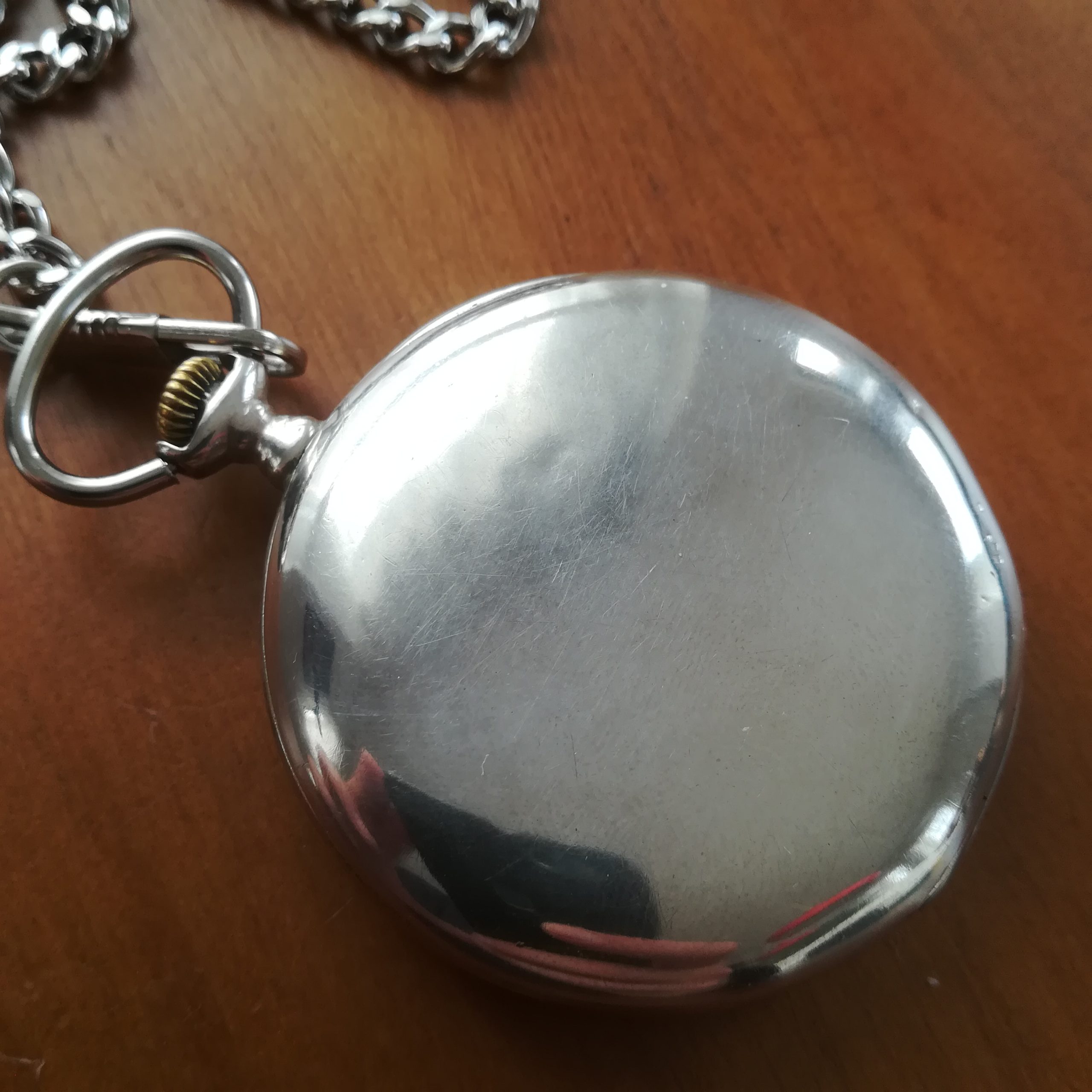 The silver case has some scratches as can be seen in the photos. The enamel dial has a few hairlines and a repair at 8 – please refer to the pictures. The watch also features a new metallic chain. Water resistance has not been tested, therefore it must be treated as NON-waterproof.