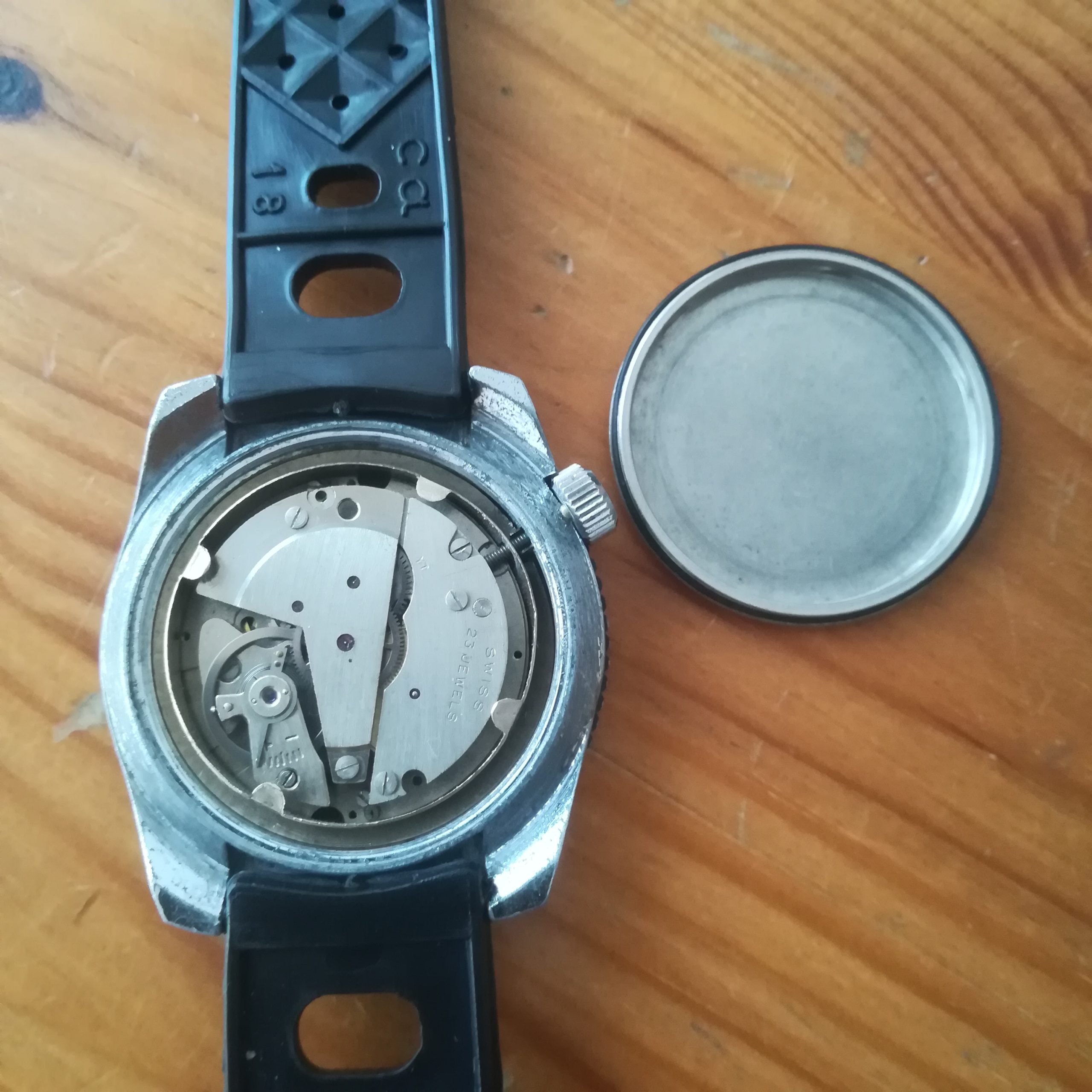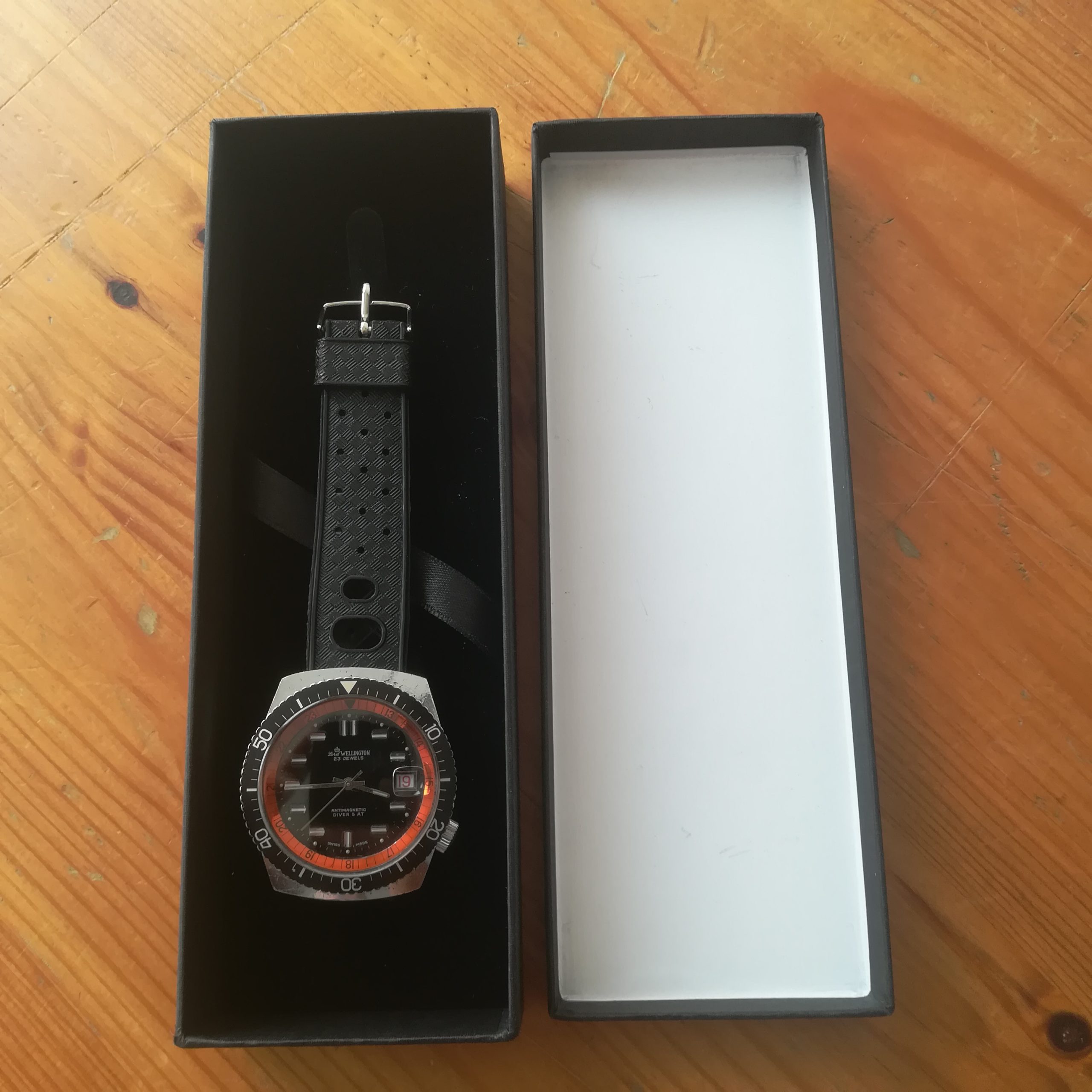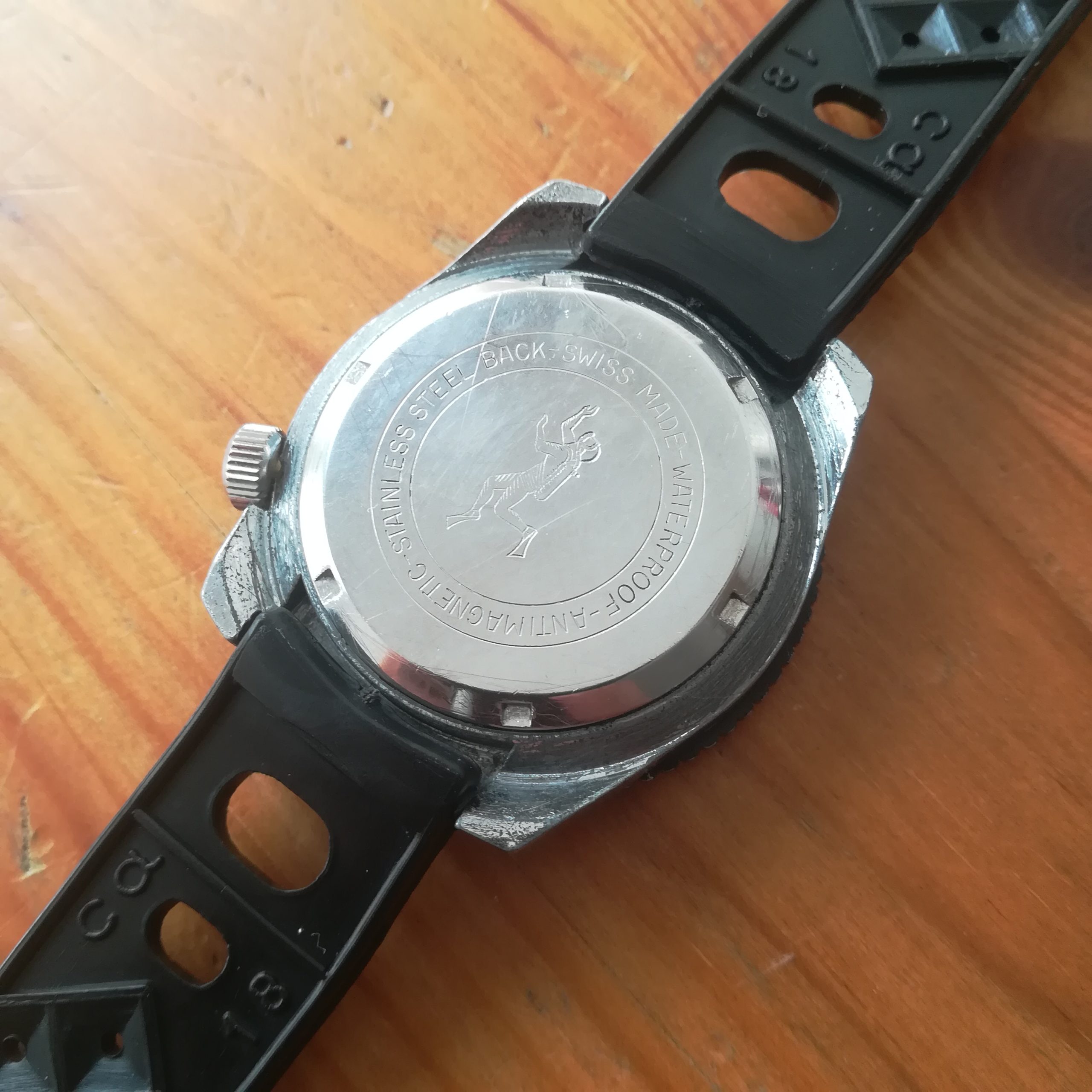 The watch also features a NOS black rubber diver strap. It will fit wrists of up to 20.5 cm. Lug width is 18 mm.