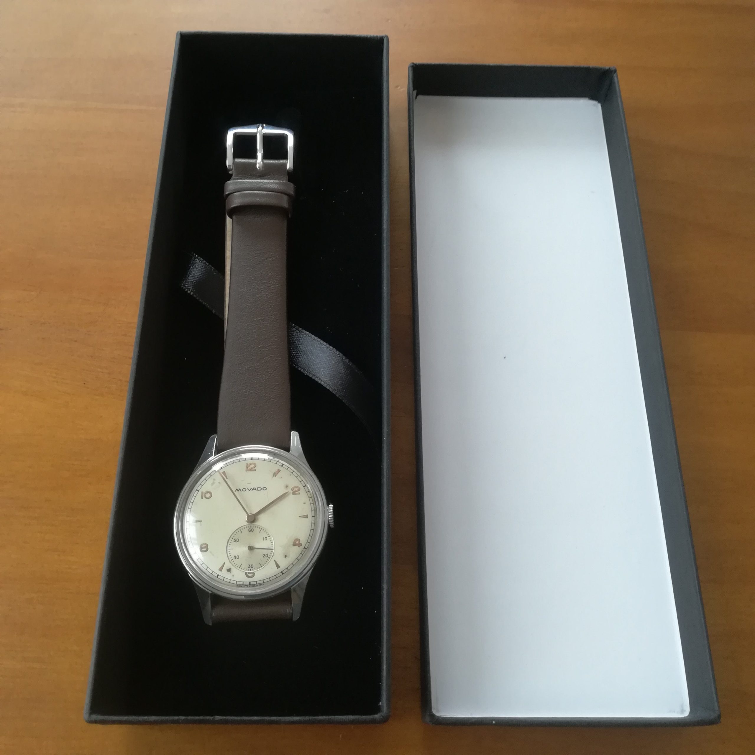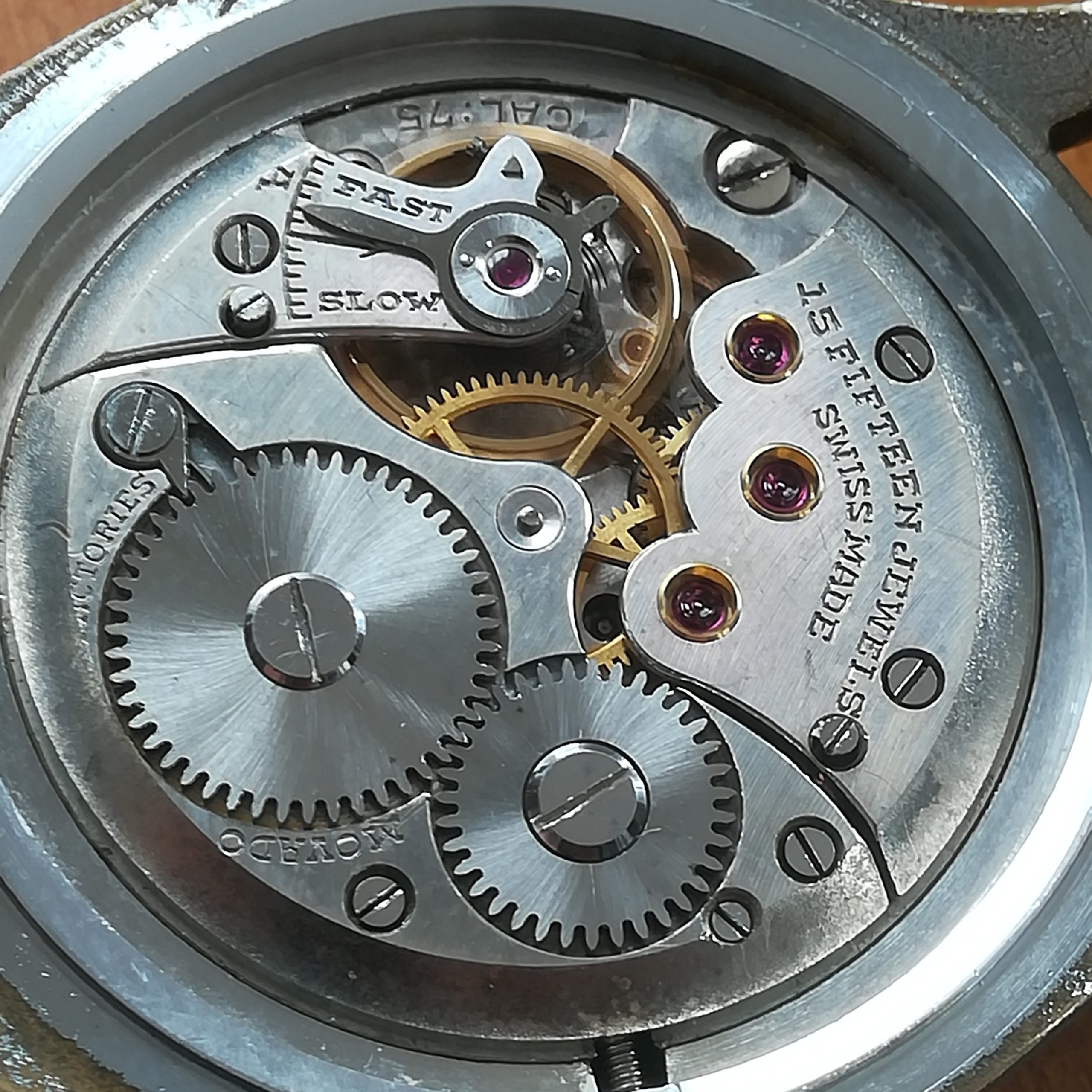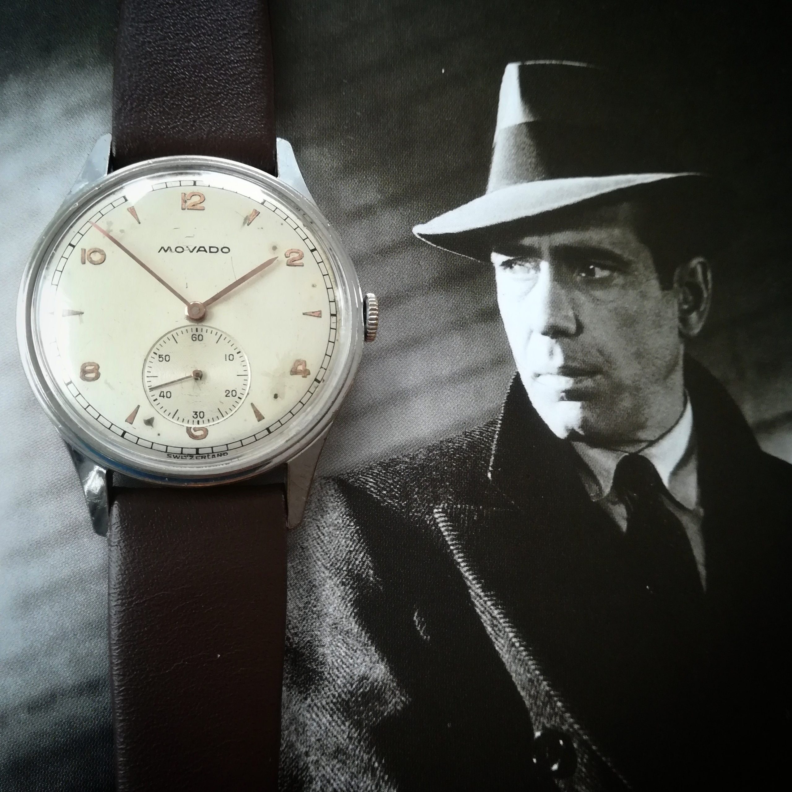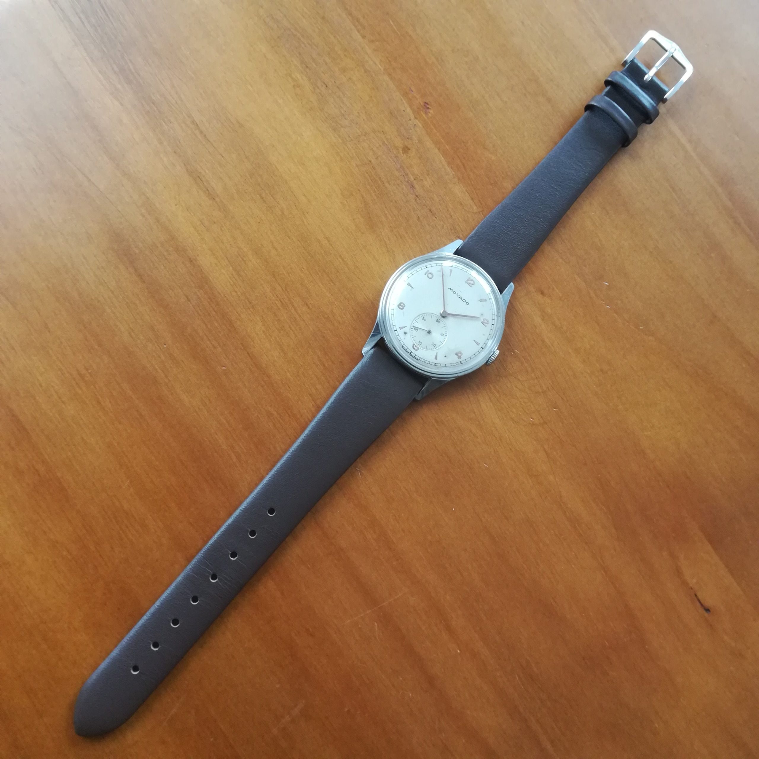 Very rare MOVADO vintage watch, with in-house 75 movement, Swiss made in the 45s, 34.2 mm across excluding the crown, hand-wound (mechanical, no battery!), working fine and fully serviced.