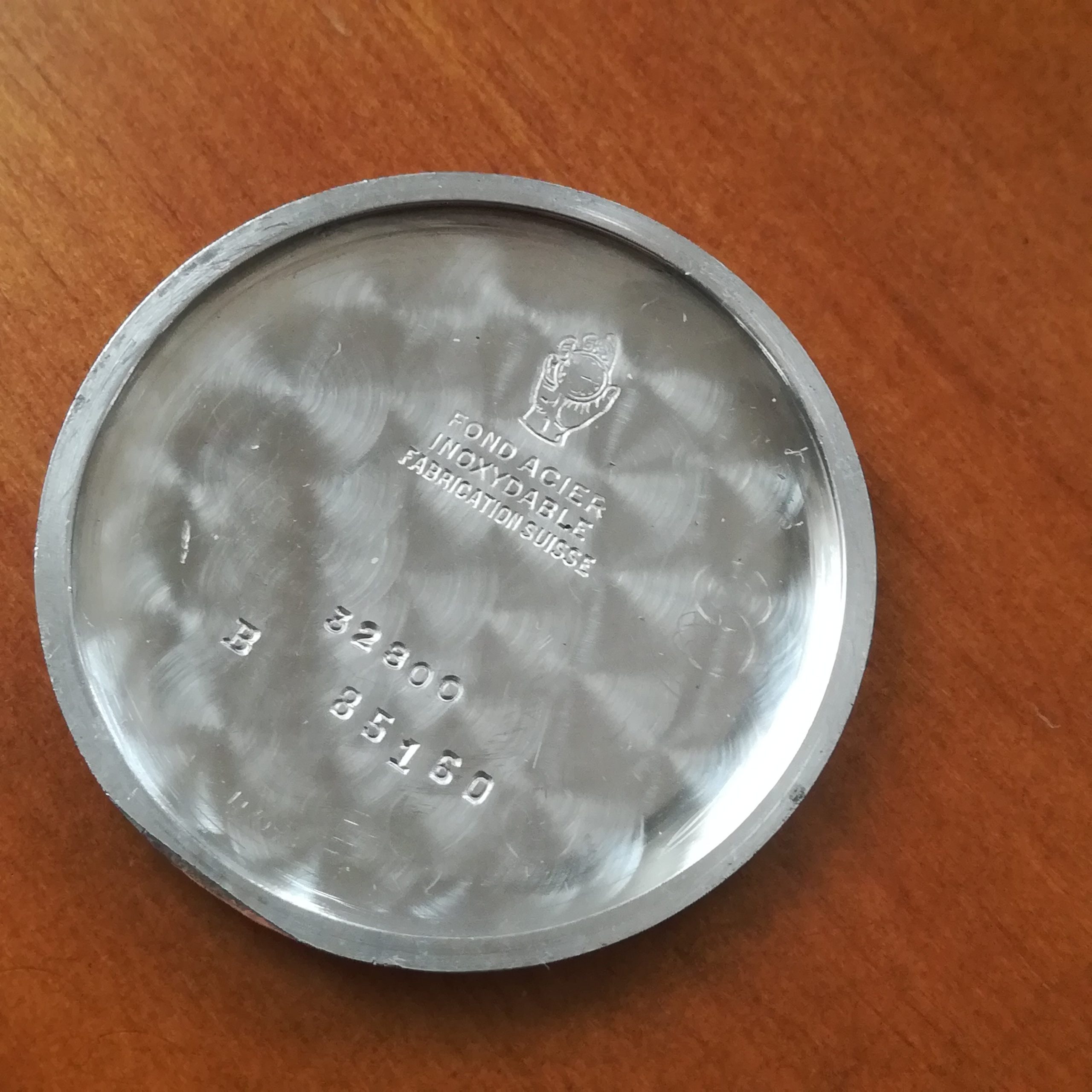 The chromed case is a bit worn in the lugs and sides and has marks and scratches – please check the photos. The dial shows a nice, uniform patina, and some marks and stains. Again, pleasew check the detailed photos.