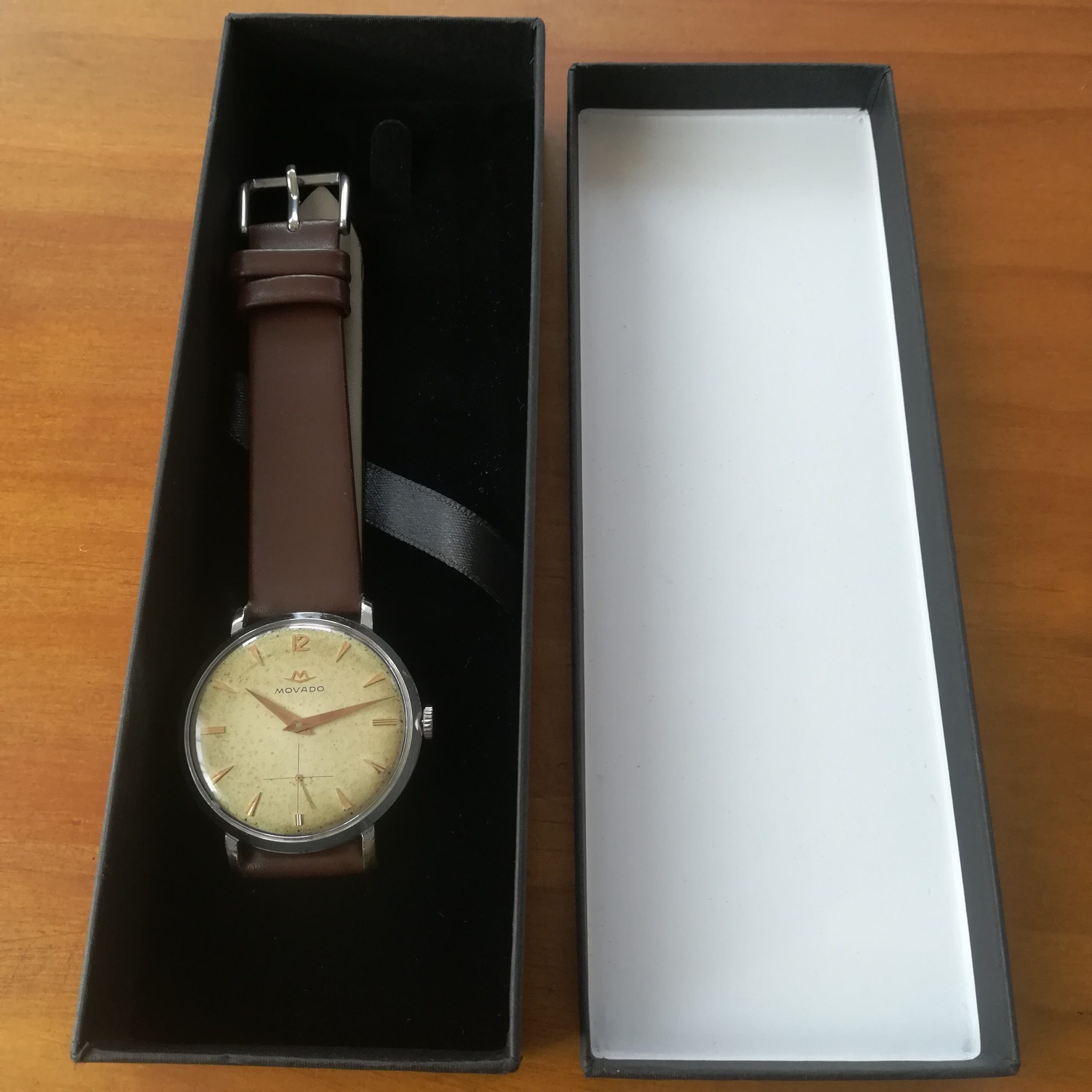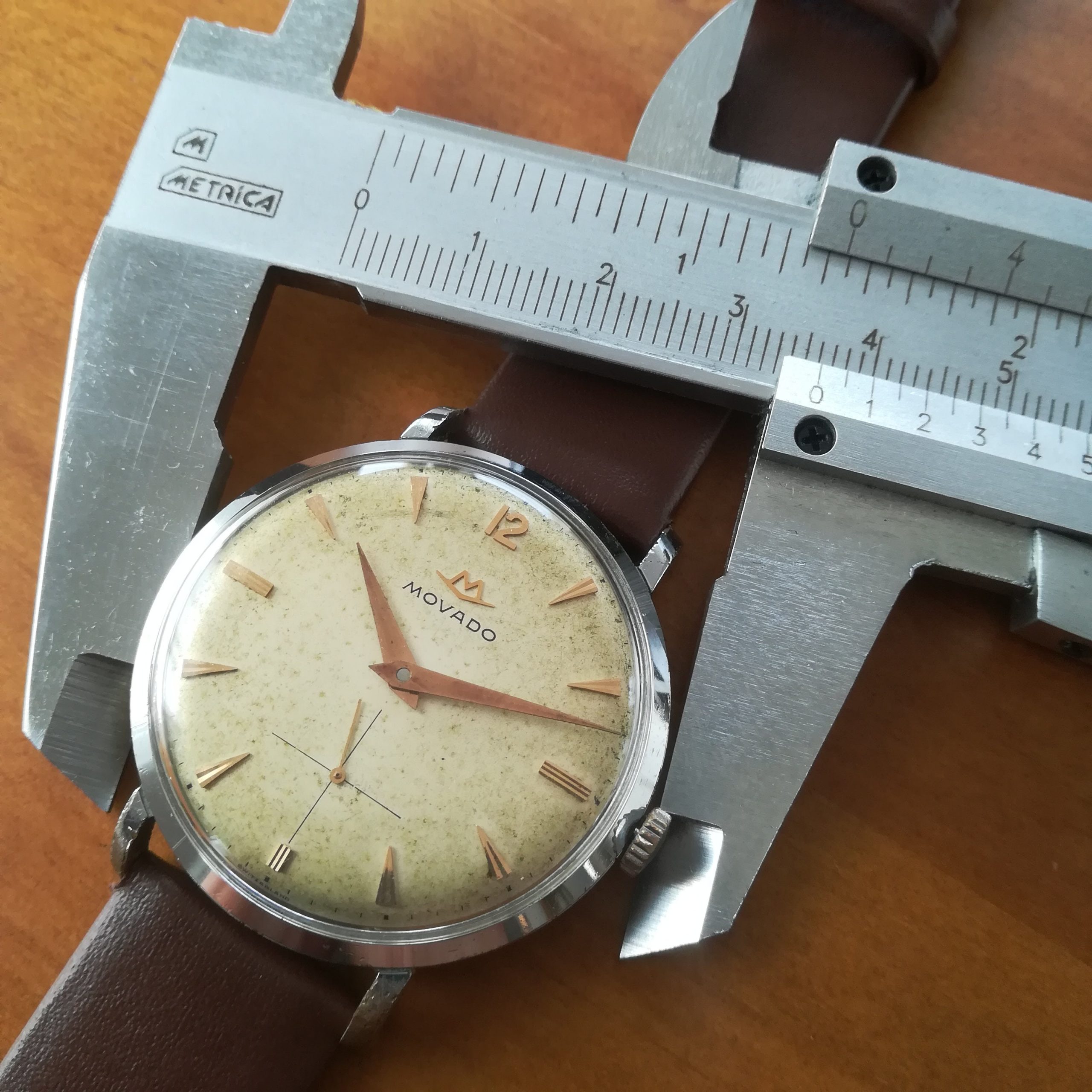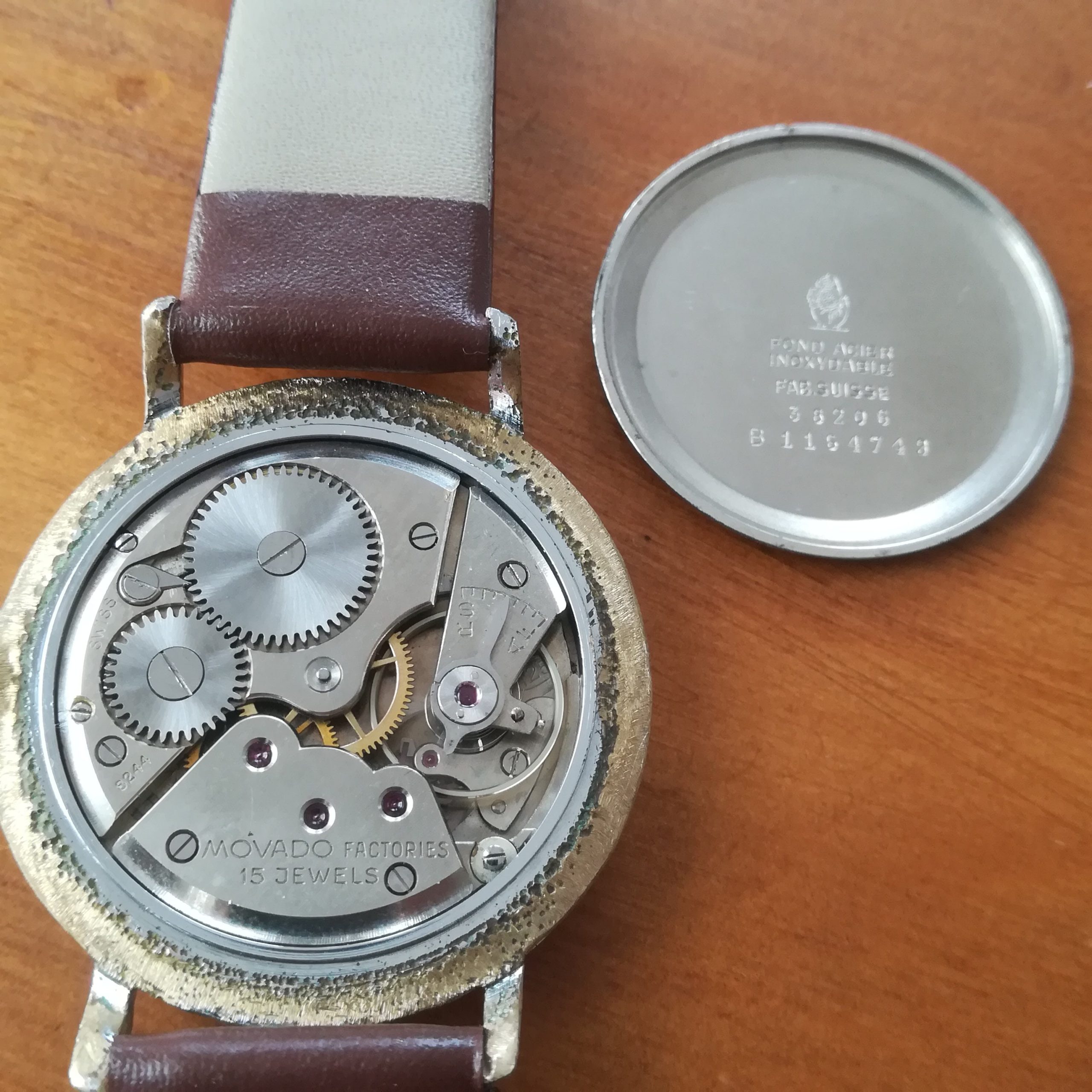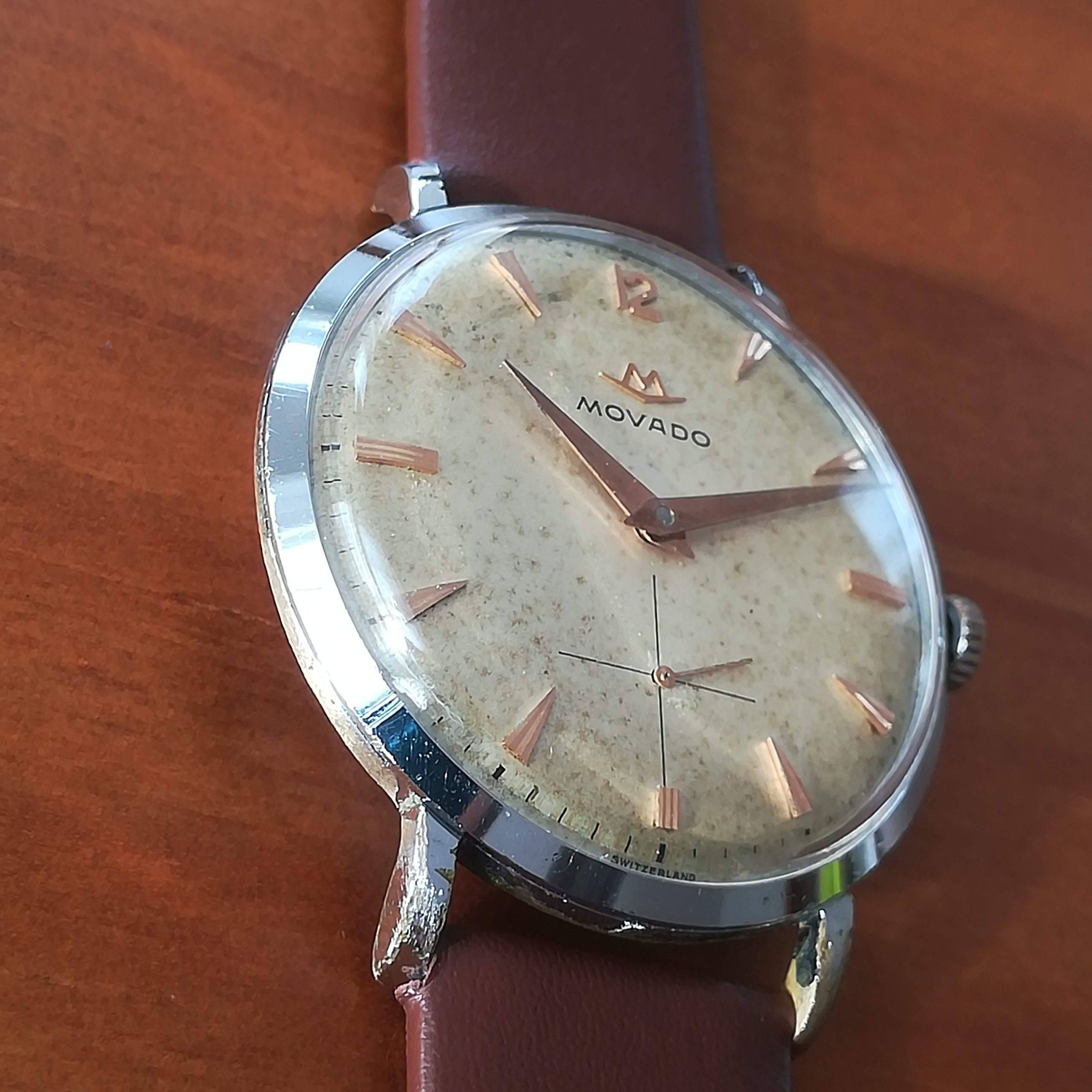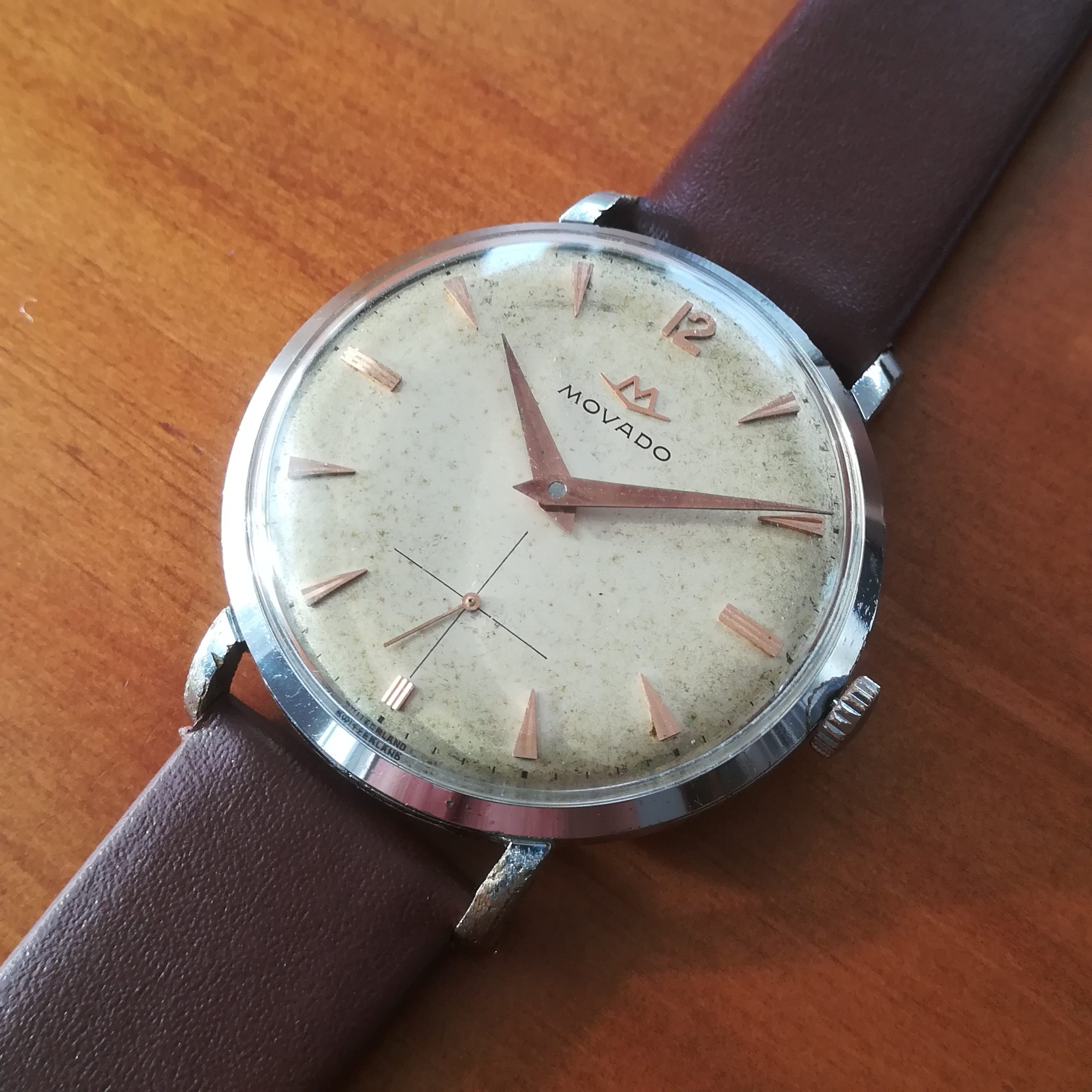 MOVADO vintage watch, Swiss Made in the 1950s with in-house 125 movement, 36 mm across excluding the crown, hand-wound (mechanical, no battery!), working fine and serviced.