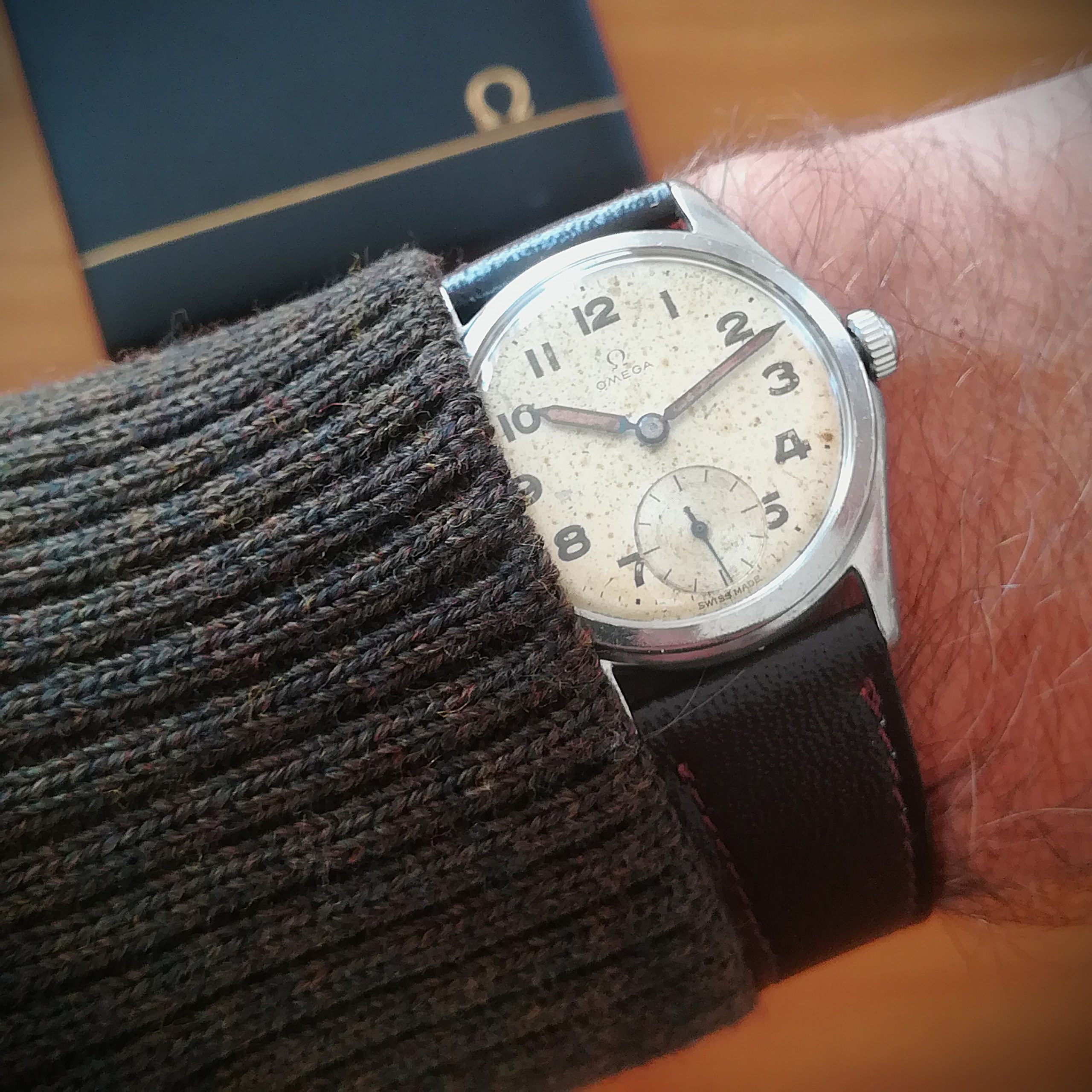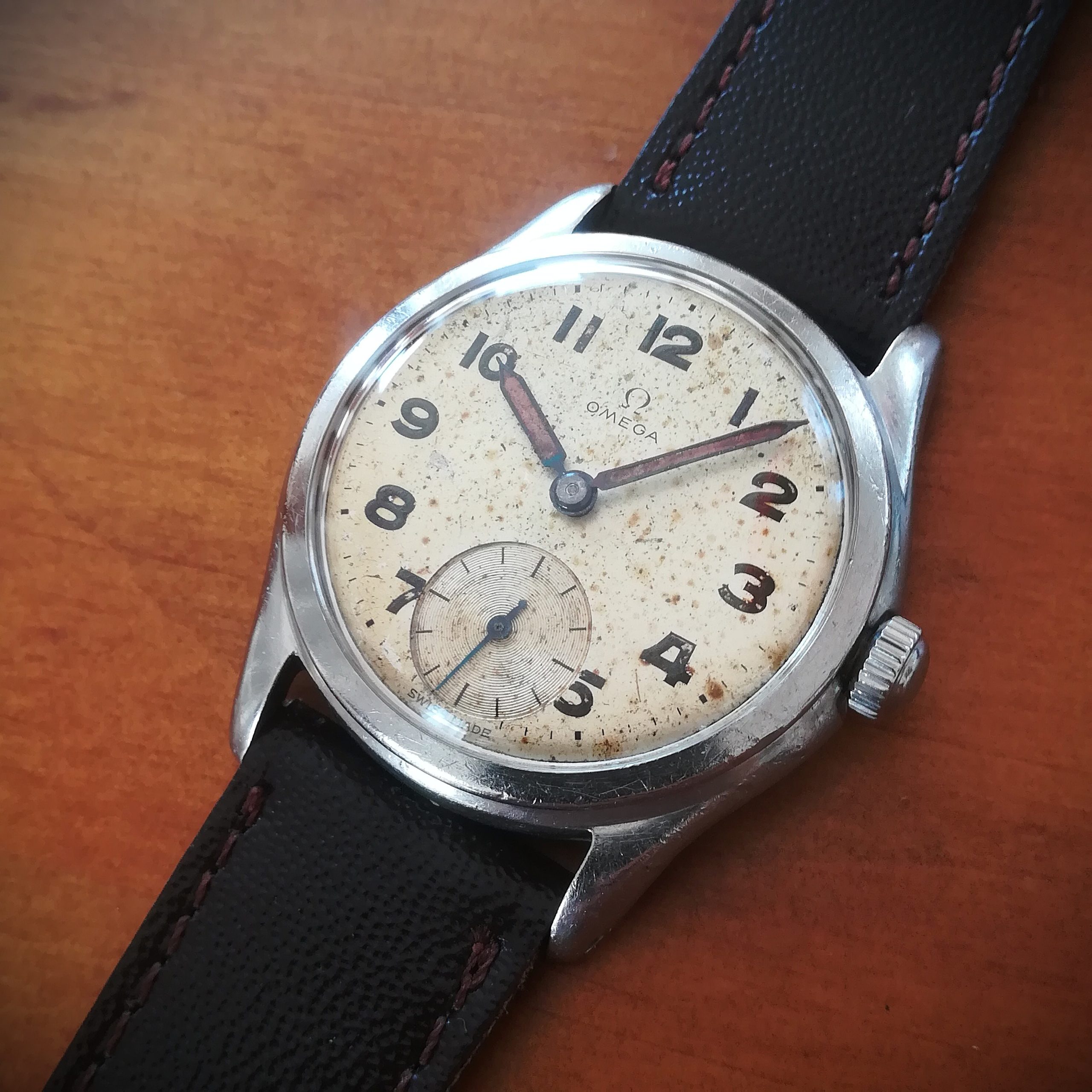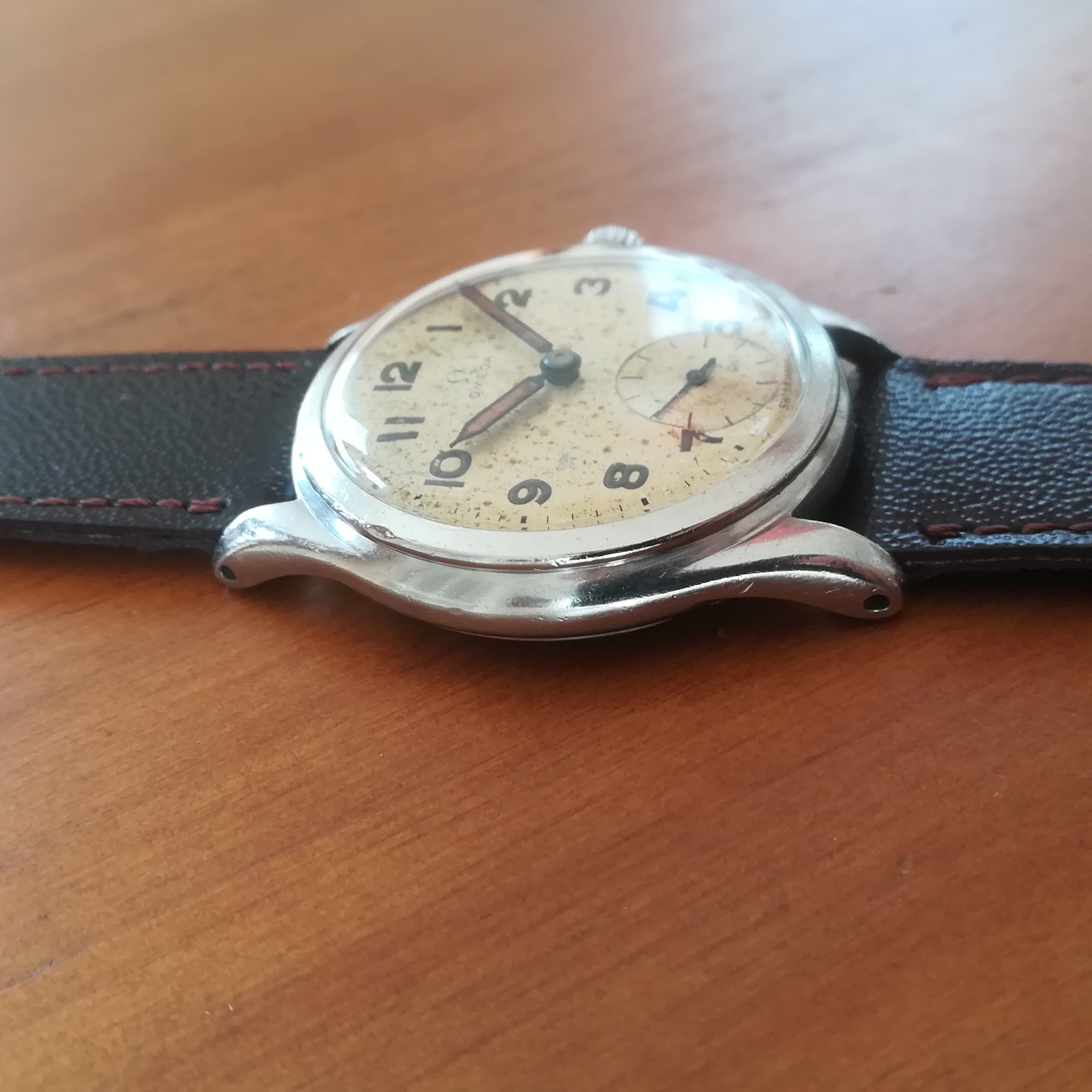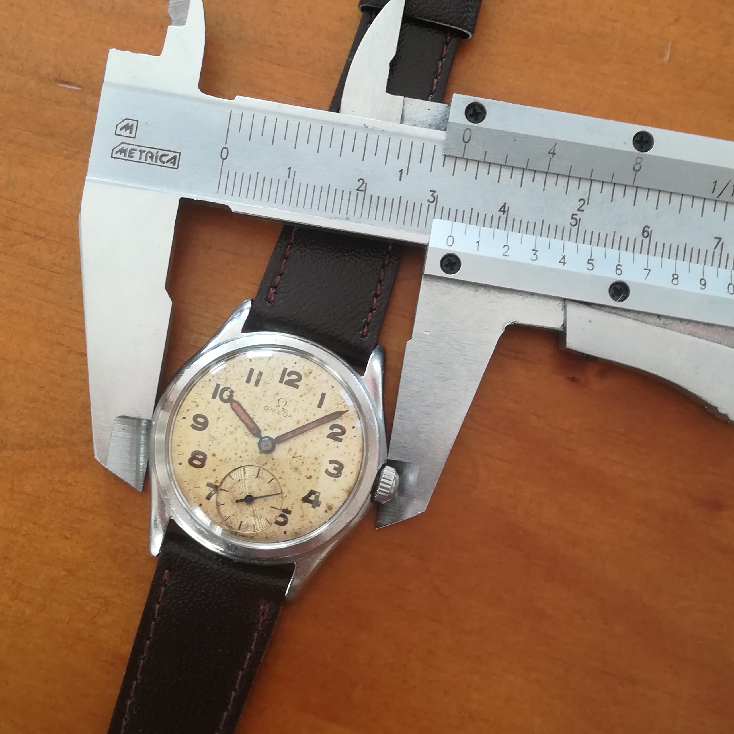 OMEGA vintage watch, Swiss Made with in-house 26.5 T3 PC T1 movement, 32.5 mm across excluding the crown, hand-wound (mechanical, no battery!), working fine and serviced. Its serial number dates it to 1950. Ref. 2450 9.