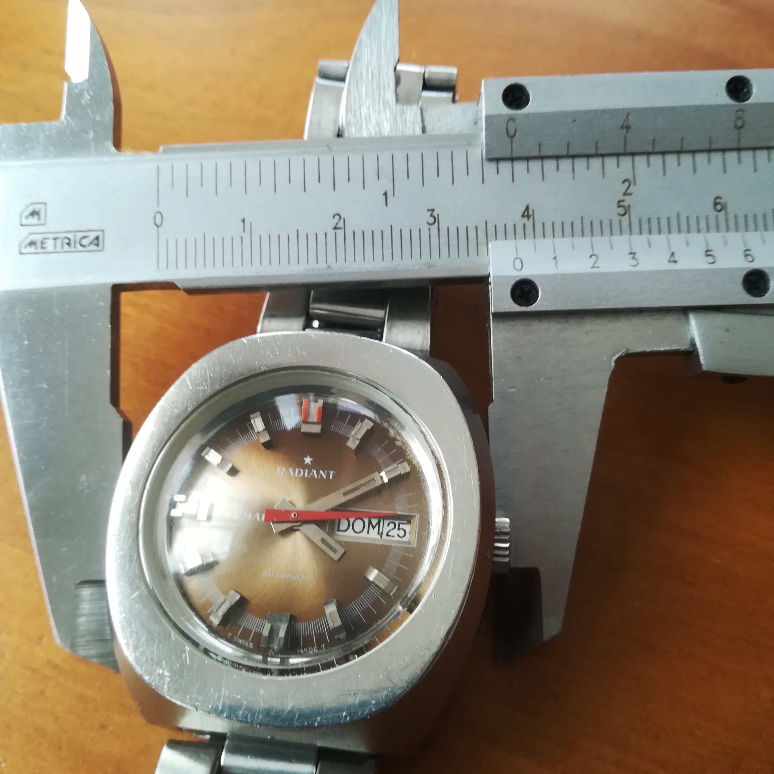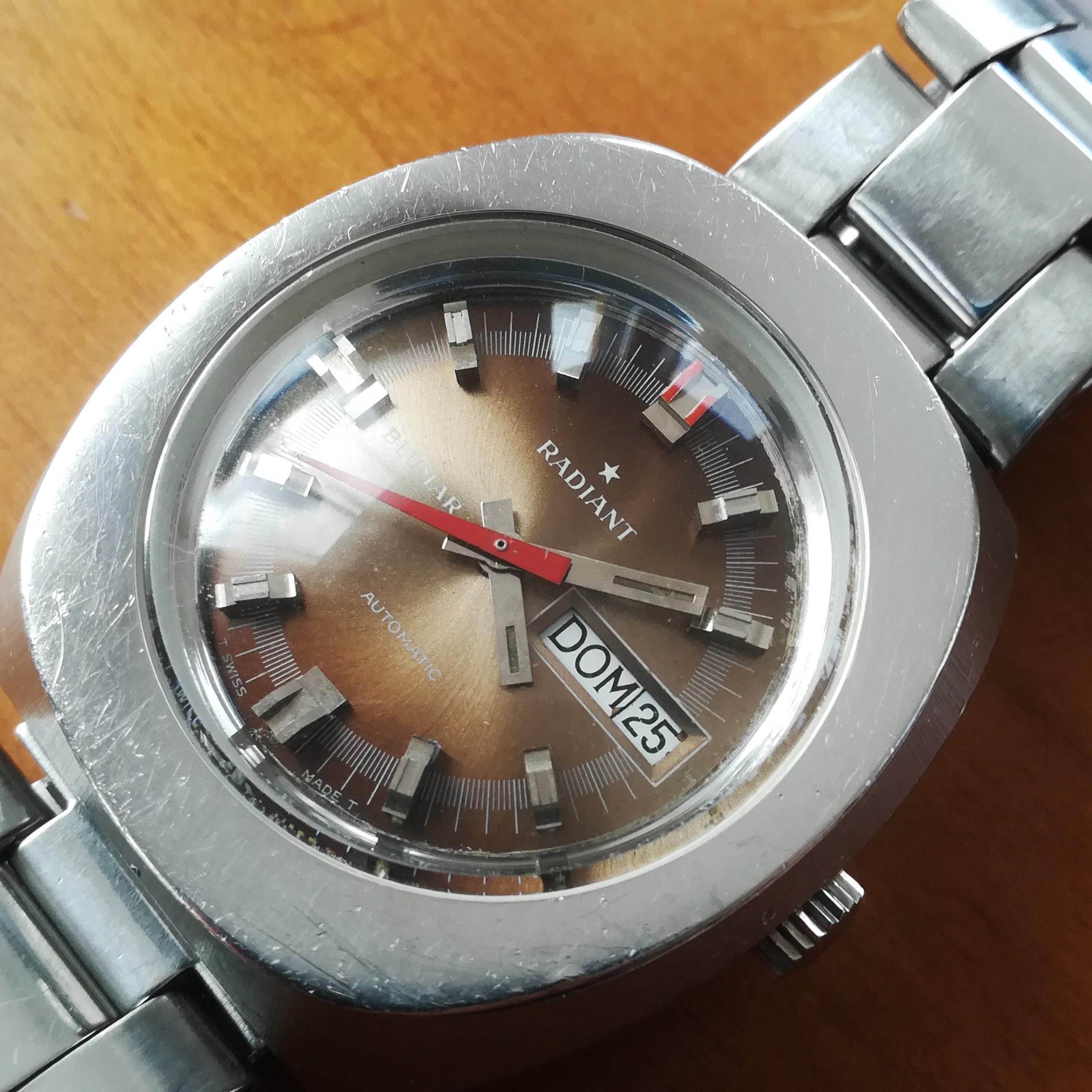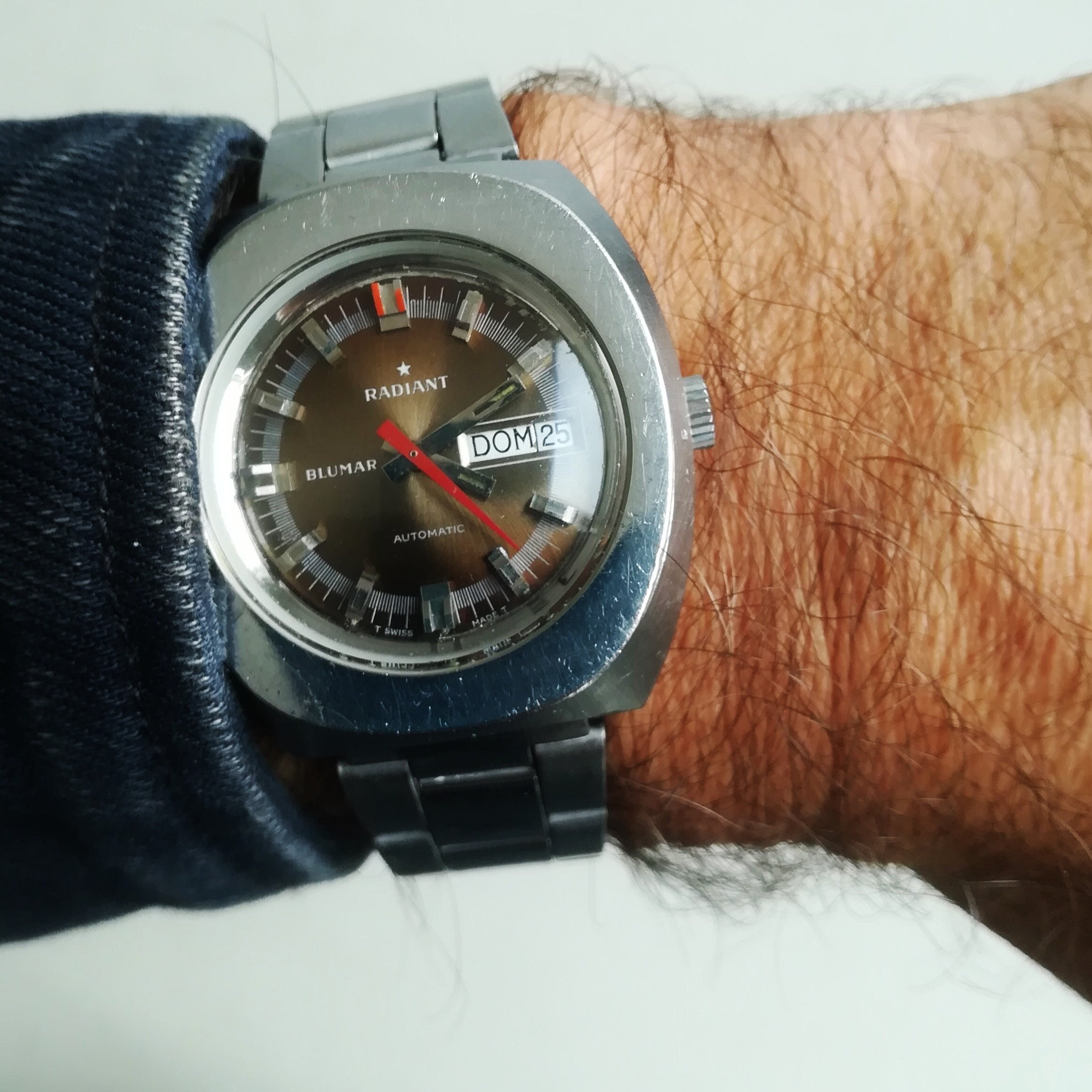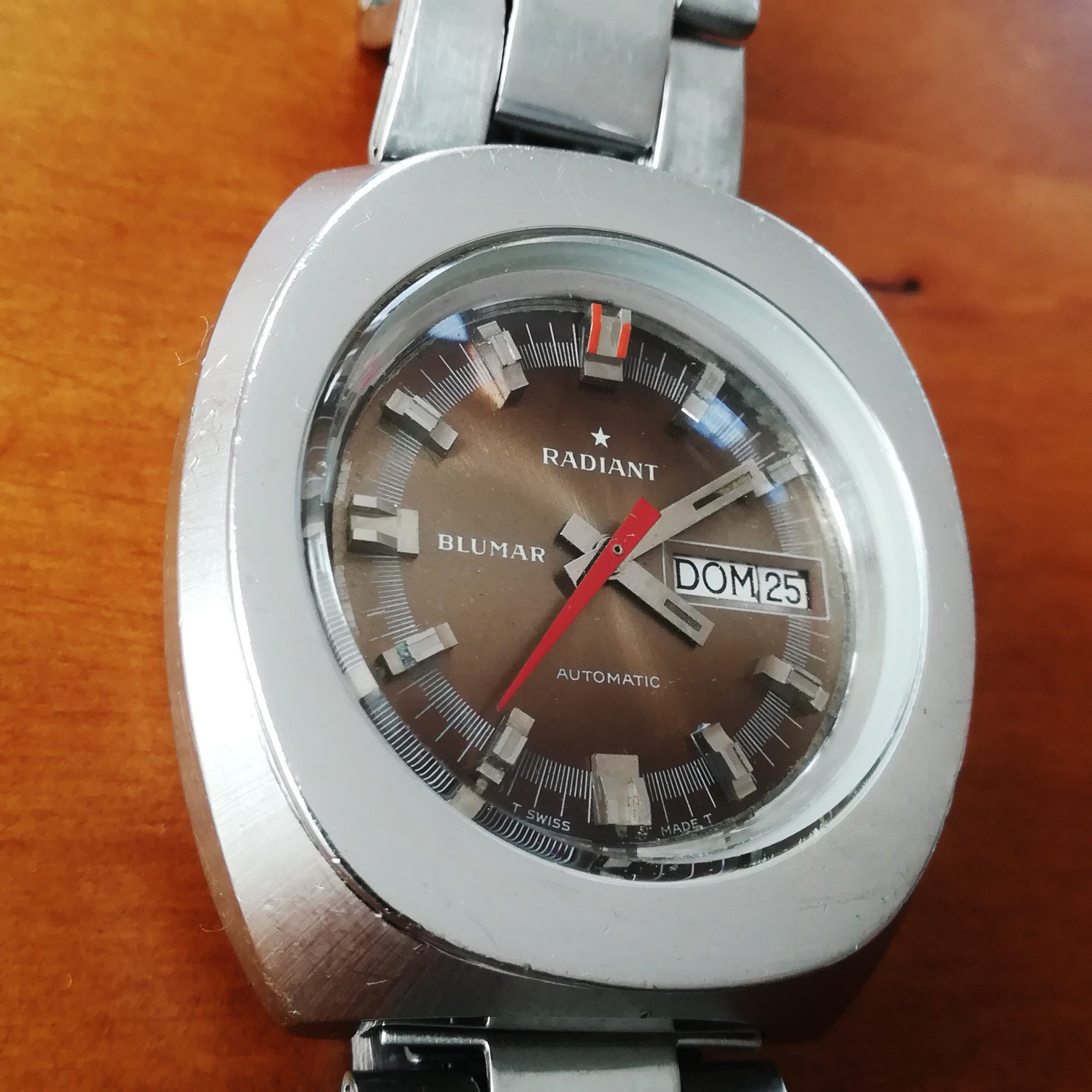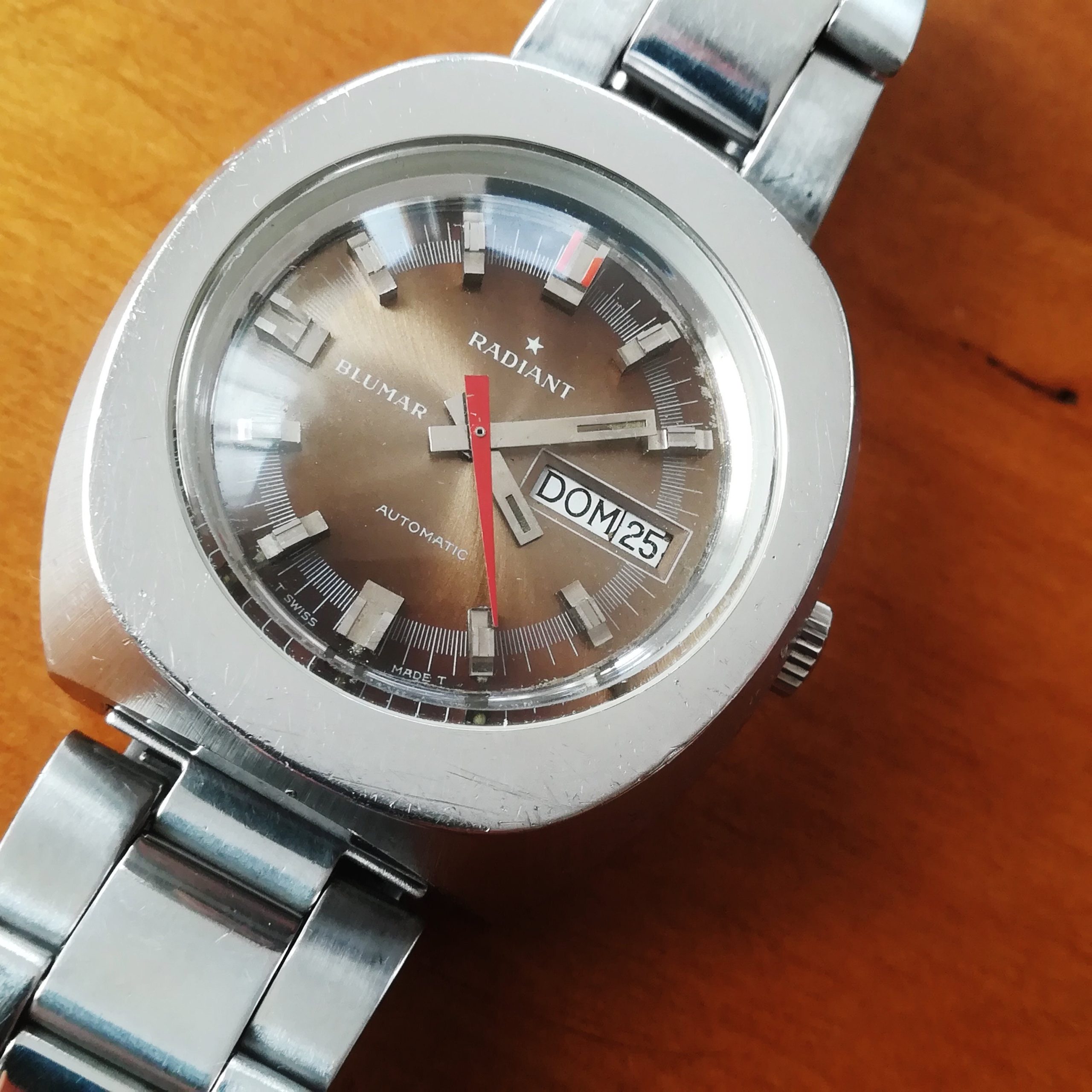 RADIANT Blumar vintage automatic watch, with ETA 2789 movement, Swiss made in the 1970s, case of 38×40 mm excluding the crown, automatic (self-winding with the user’s movements, mechanical, no battery!) with day (Spanish) and date indication, working fine and serviced.