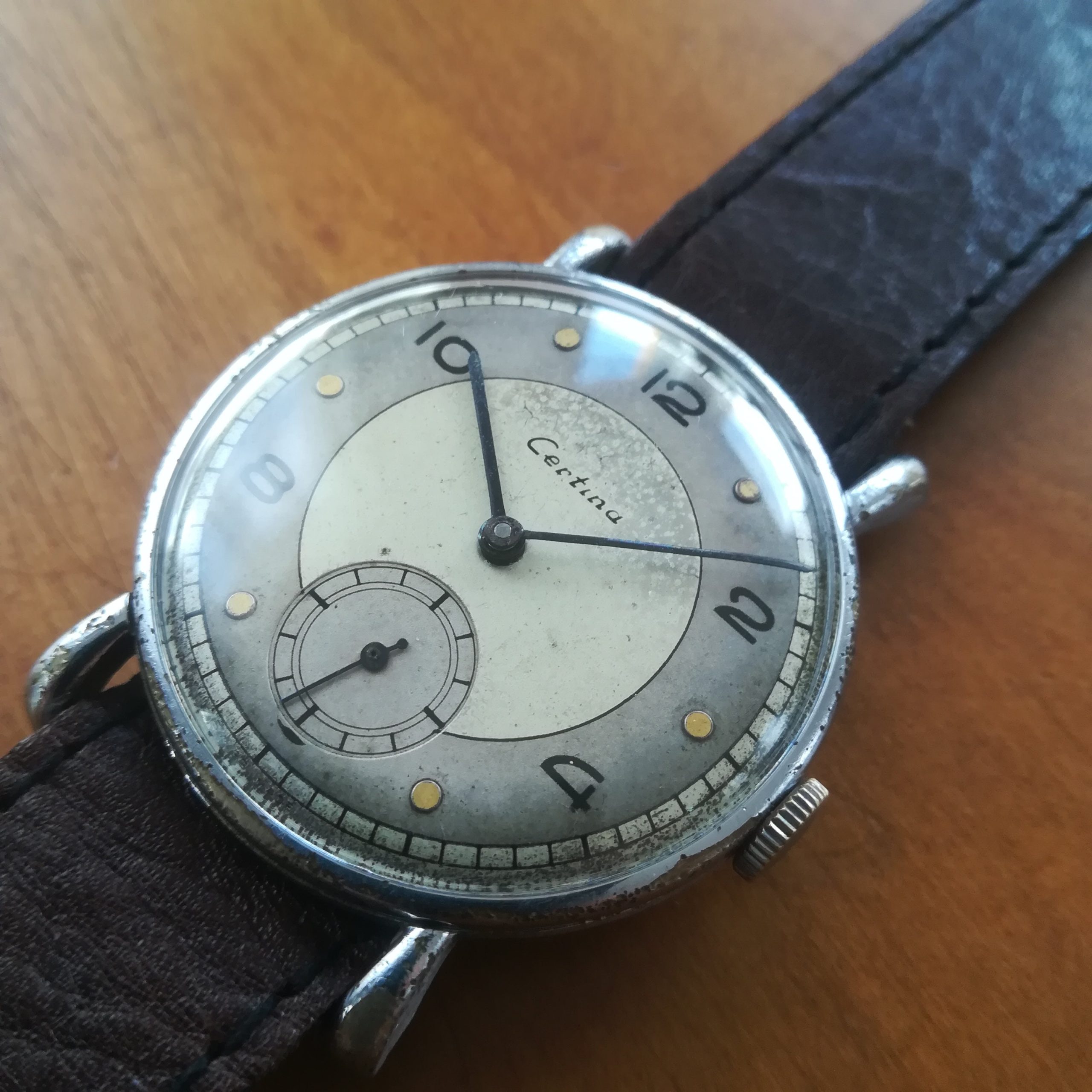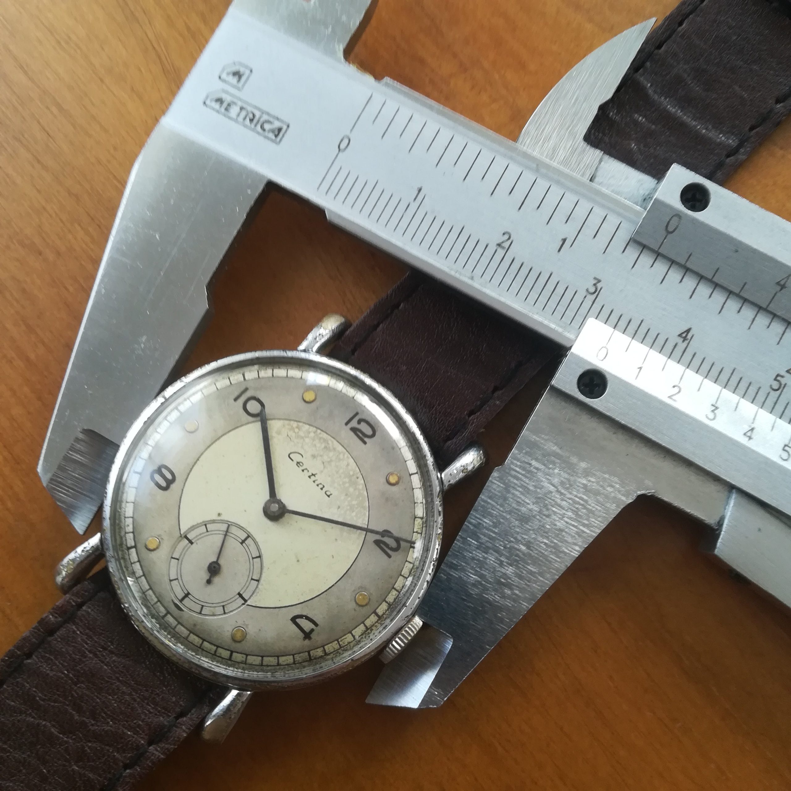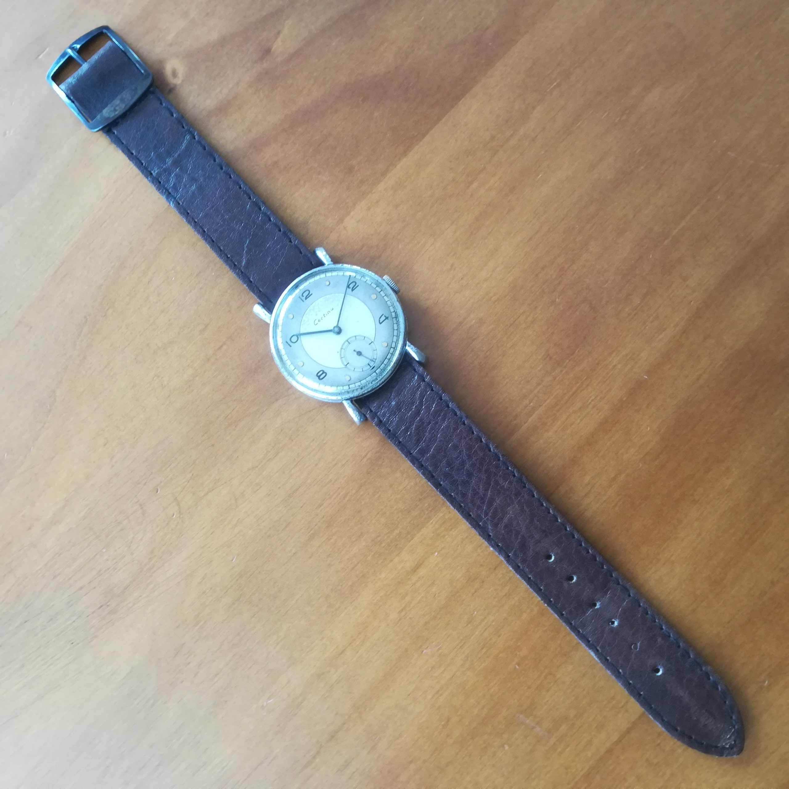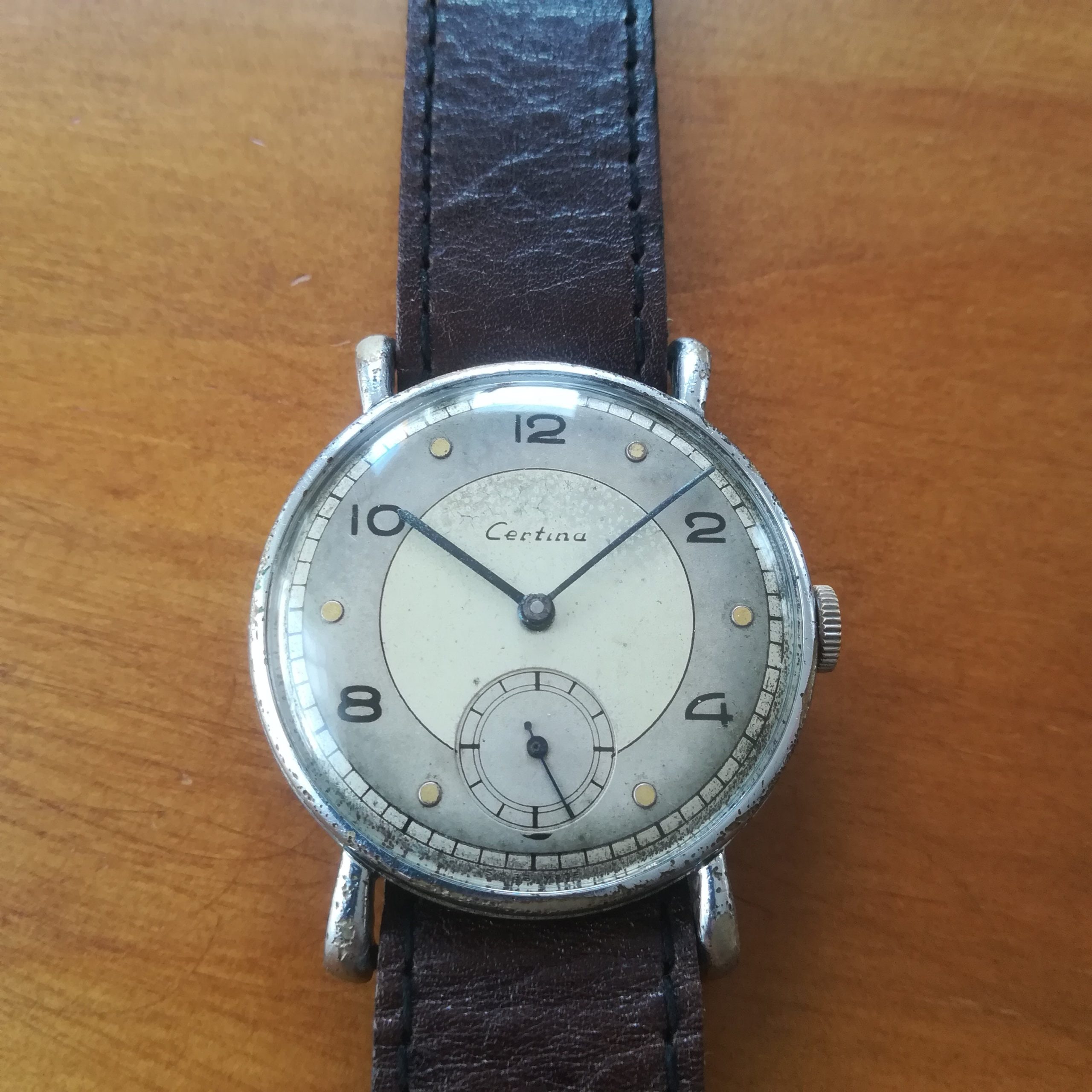 Extremely rare CERTINA vintage watch, Swiss Made with in-house KF320B movement, 33.2 mm across excluding the crown, hand-wound (mechanical, no battery!), working fine and serviced. Its serial number dates it to ca. 1940.