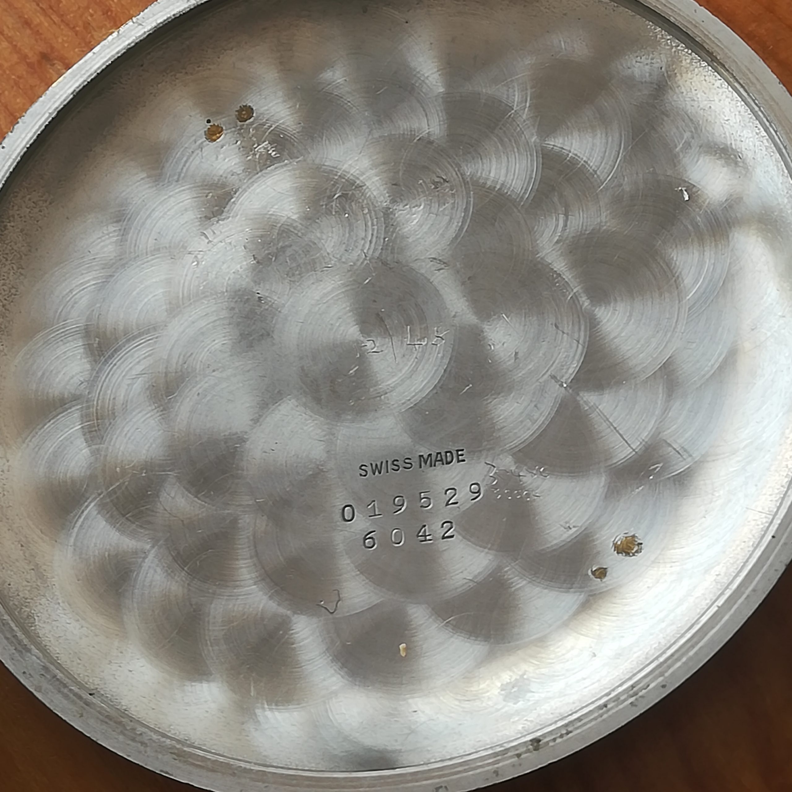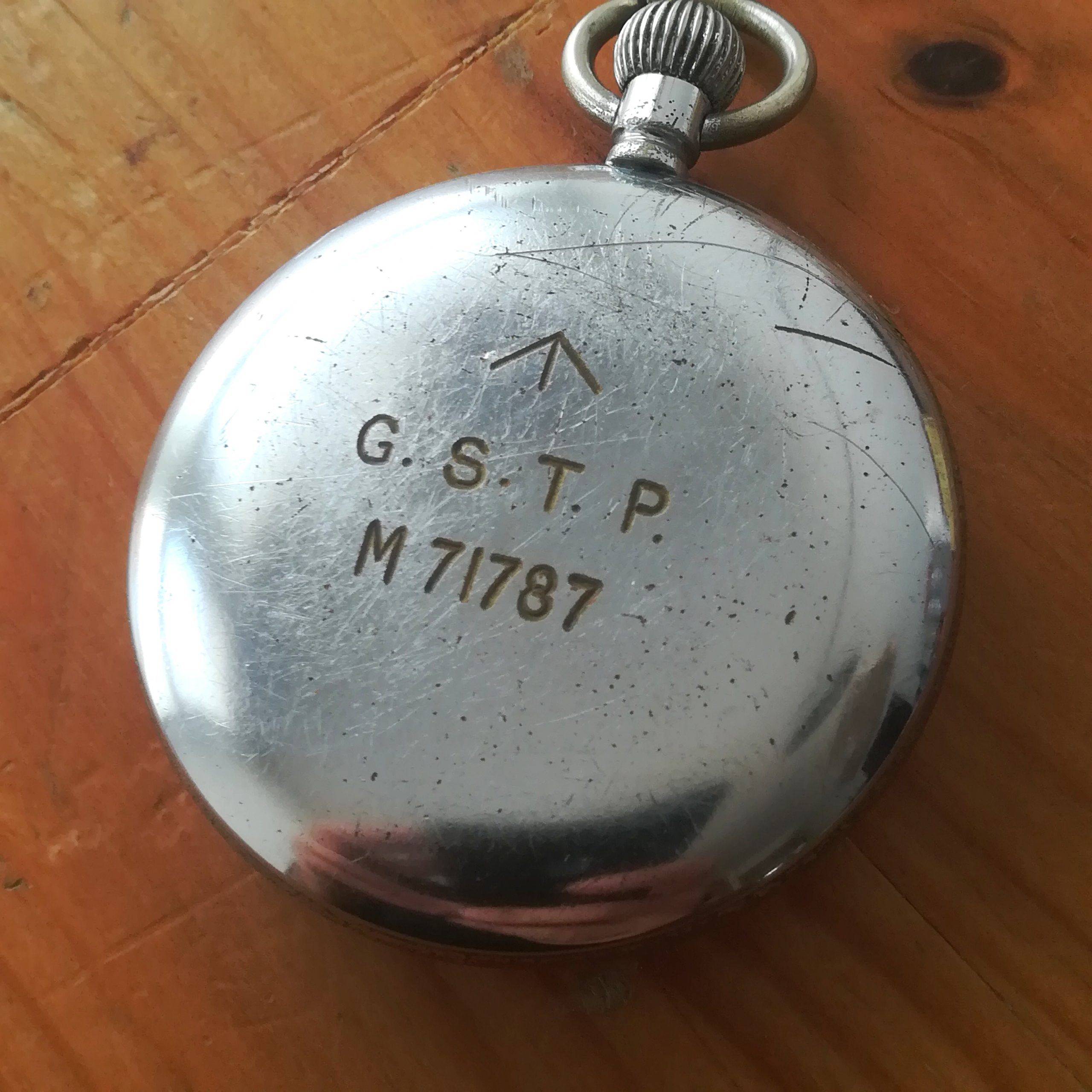 The metal case has scratches and dots – please check the detailed pictures. The caseback is engraved with the arrow (it means “Property of the Crown”), G.S.T.P. (General Service Trade Pattern or General Service Time Piece) and M71787 (issue number).